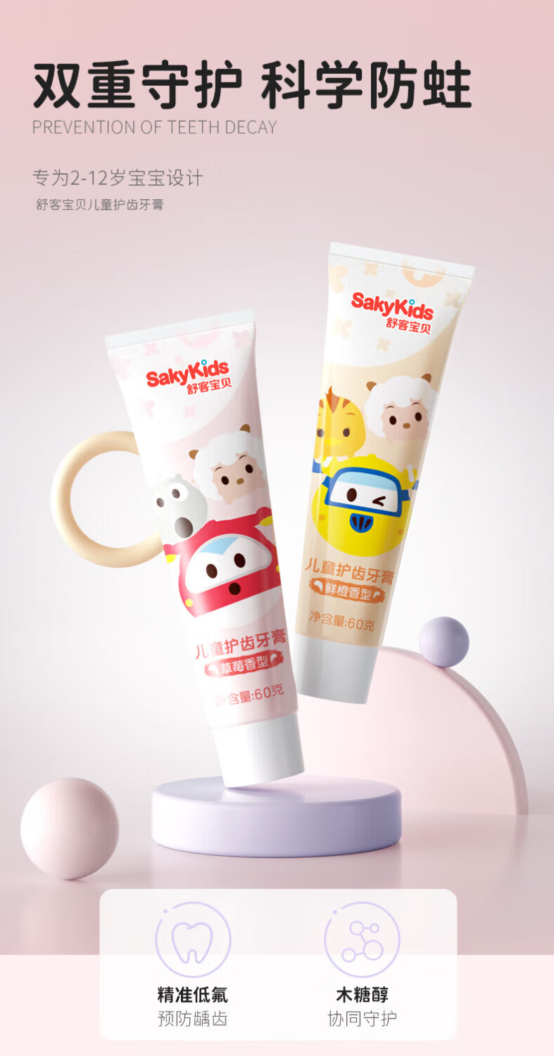 舒客+舒客儿童牙膏0-3-6-12岁含氟防蛀护齿护龈抗糖换牙期牙膏宝贝正品 单支 | 抗糖防蛀60g | 送牙刷*2