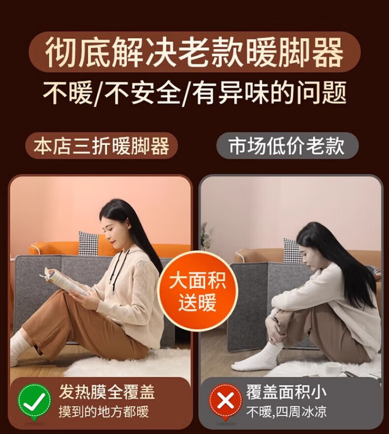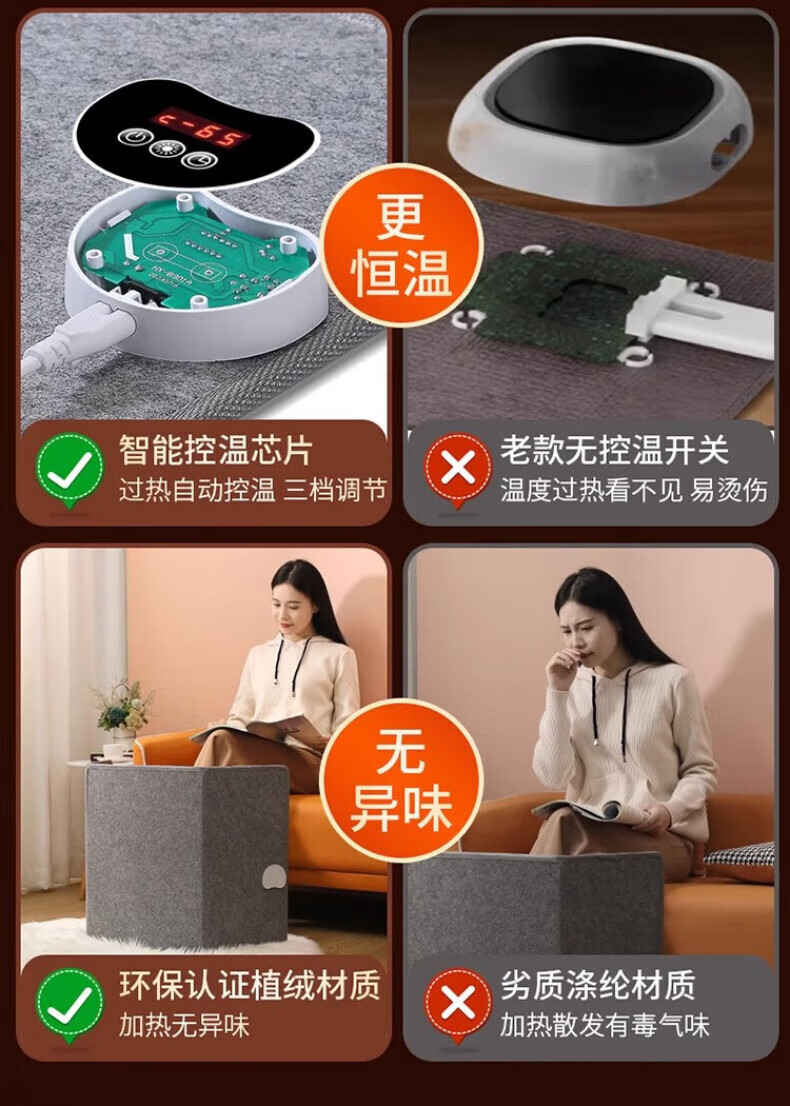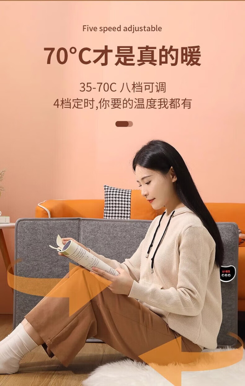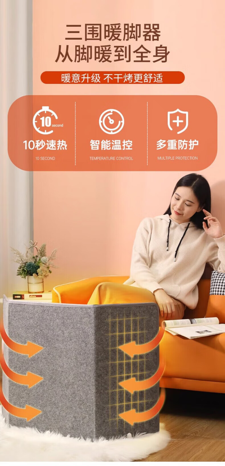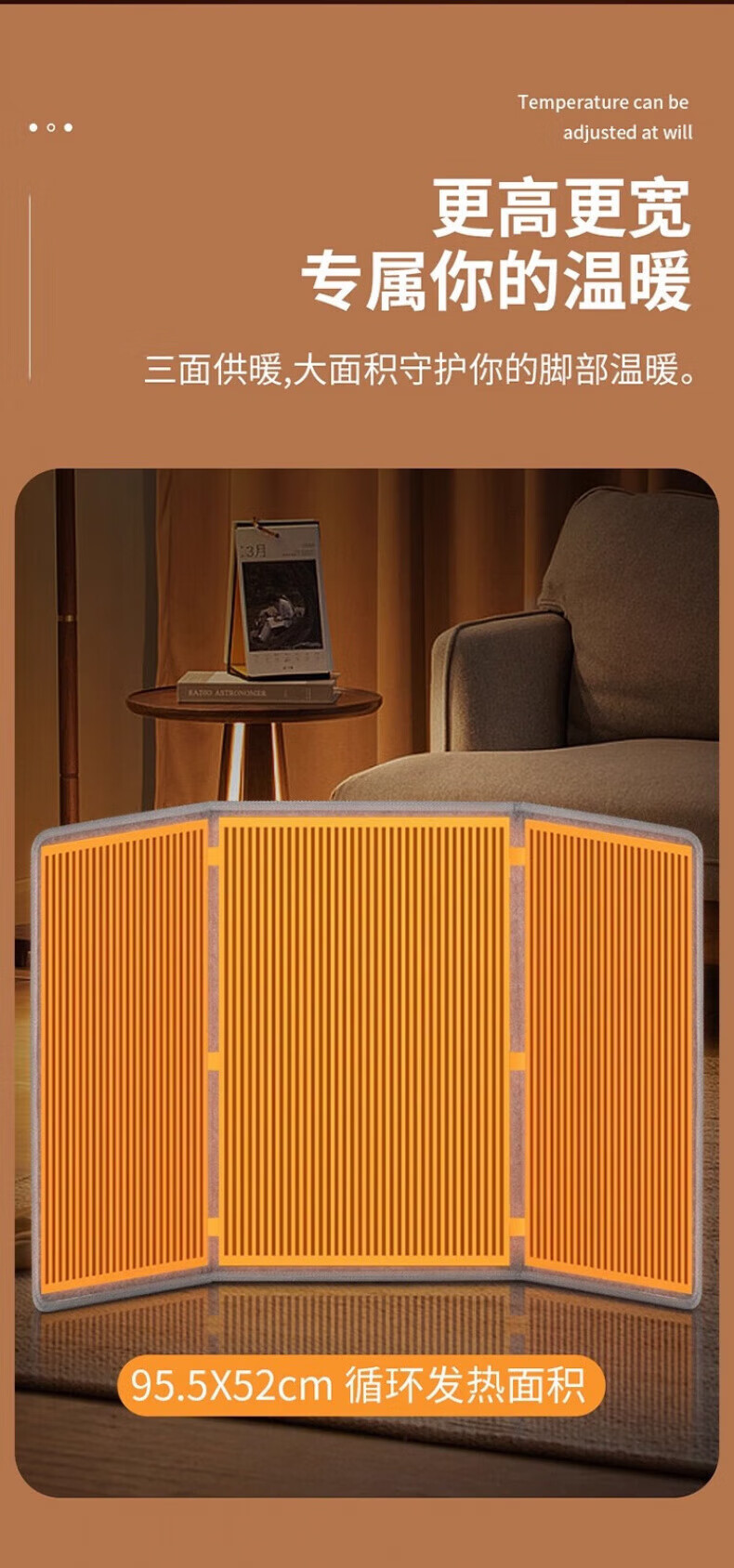 AILUKI日本高端暖脚神器办公室桌下取暖器过冬保暖烤腿暖脚发热毯垫 【升级款】灰色/3秒速热/智能断电/三档调温