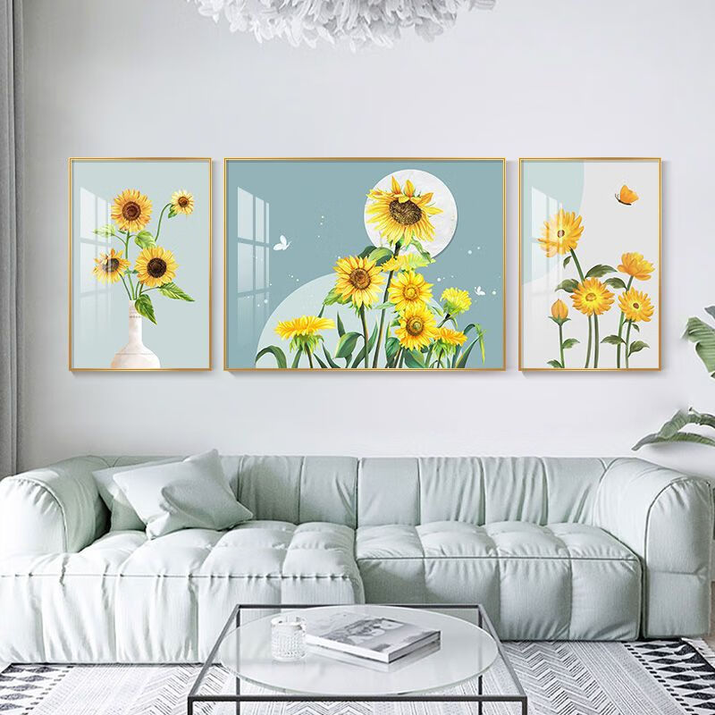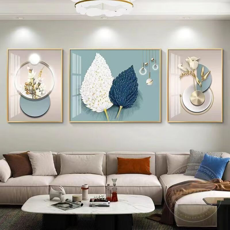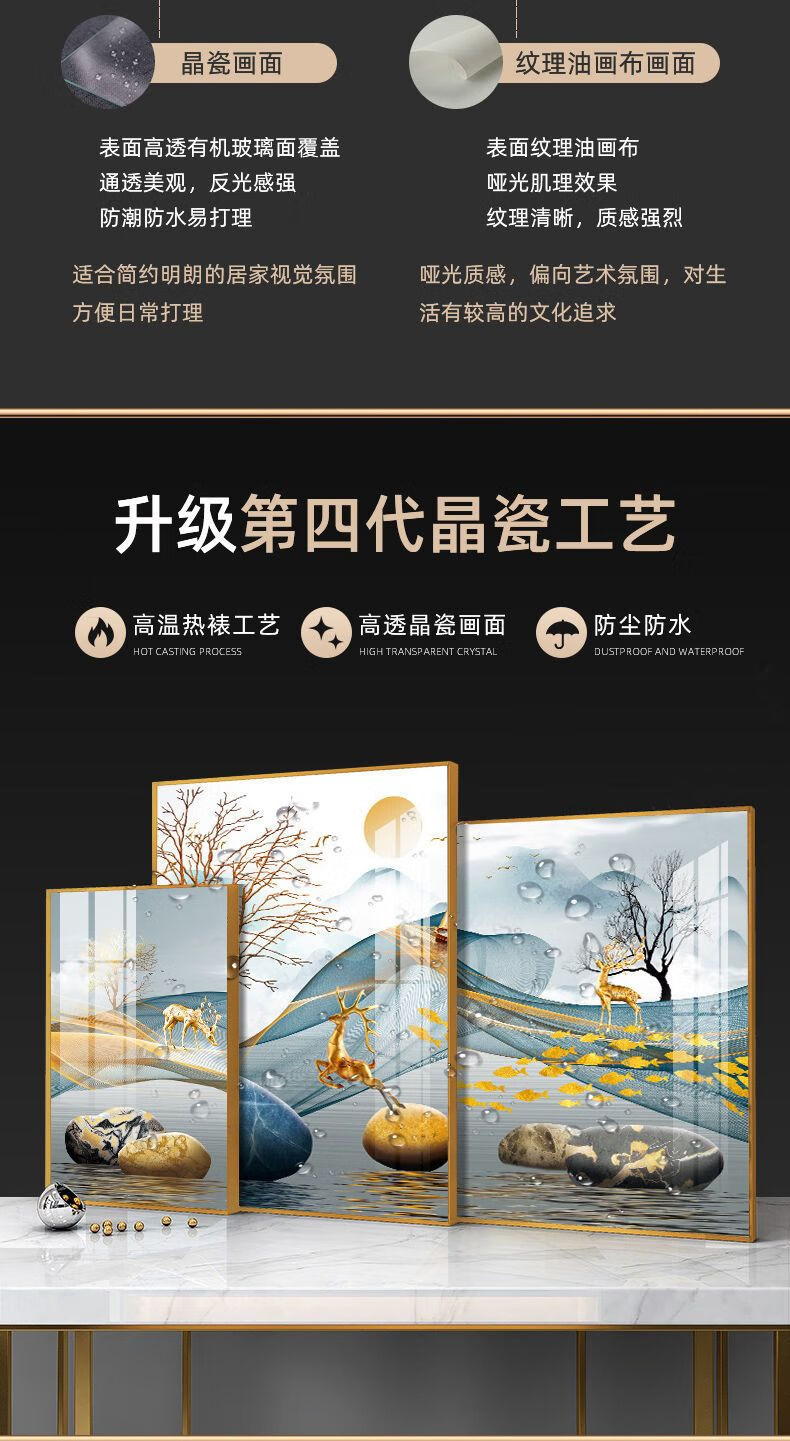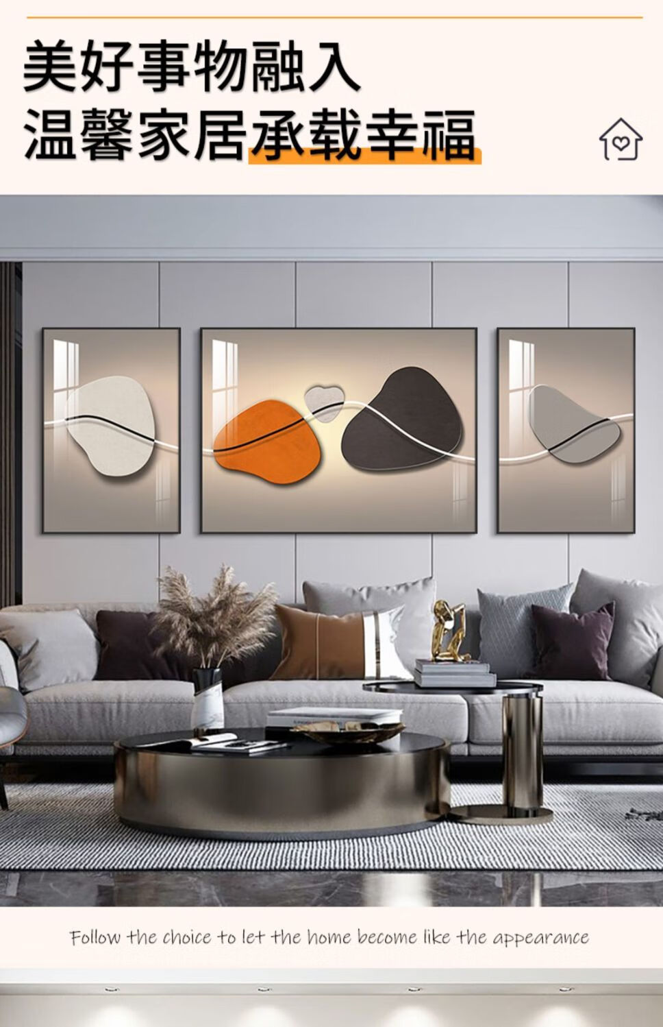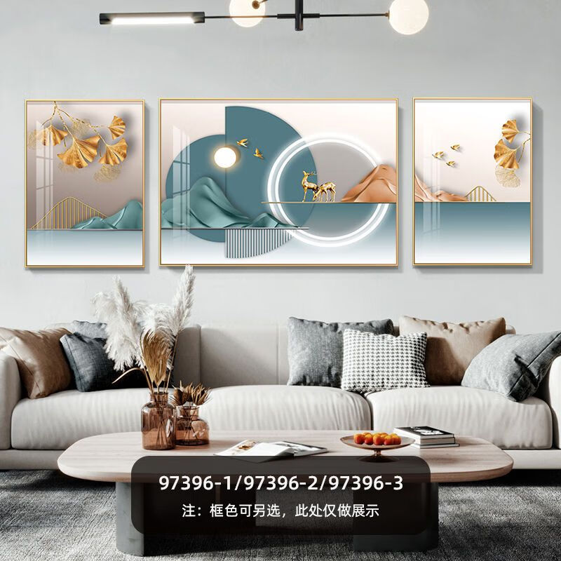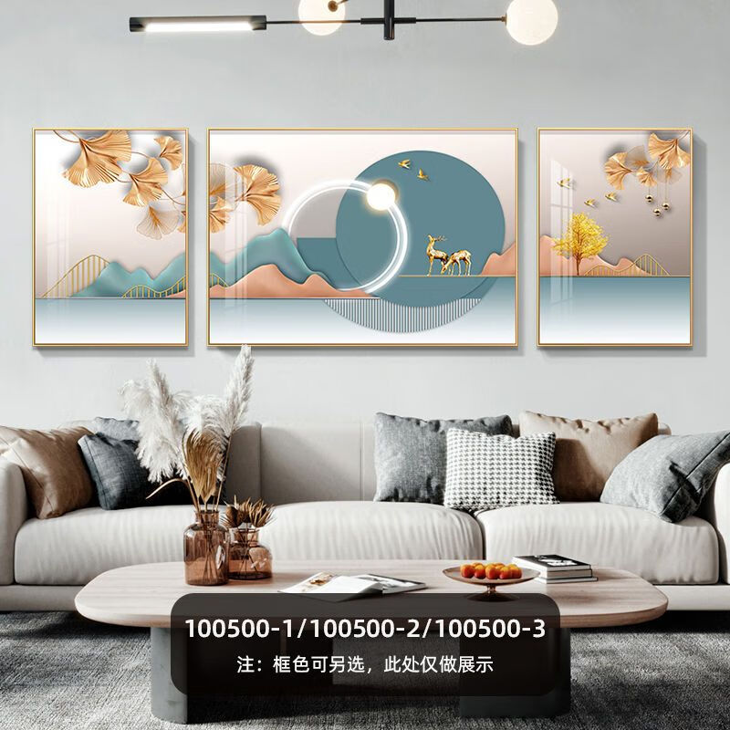OYKTN客厅装饰画现代简约沙发背景墙画北欧式三联壁画晶瓷有框抽象挂画 新款35 左右40*60中80*60晶瓷面