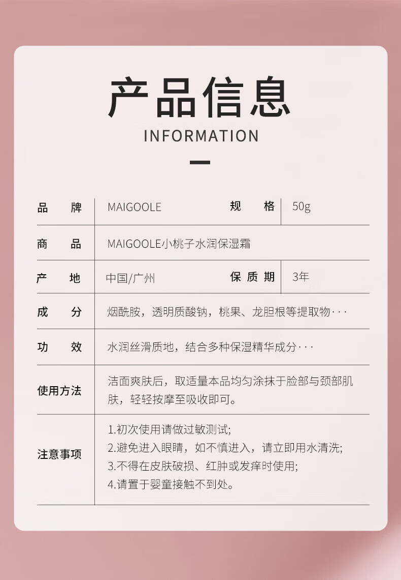 MAIGOOLE 玫黛琳小桃子保湿霜秋冬滋润补水宝宝面霜 小桃子水润保湿霜50g