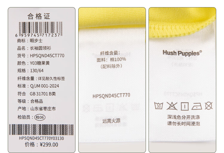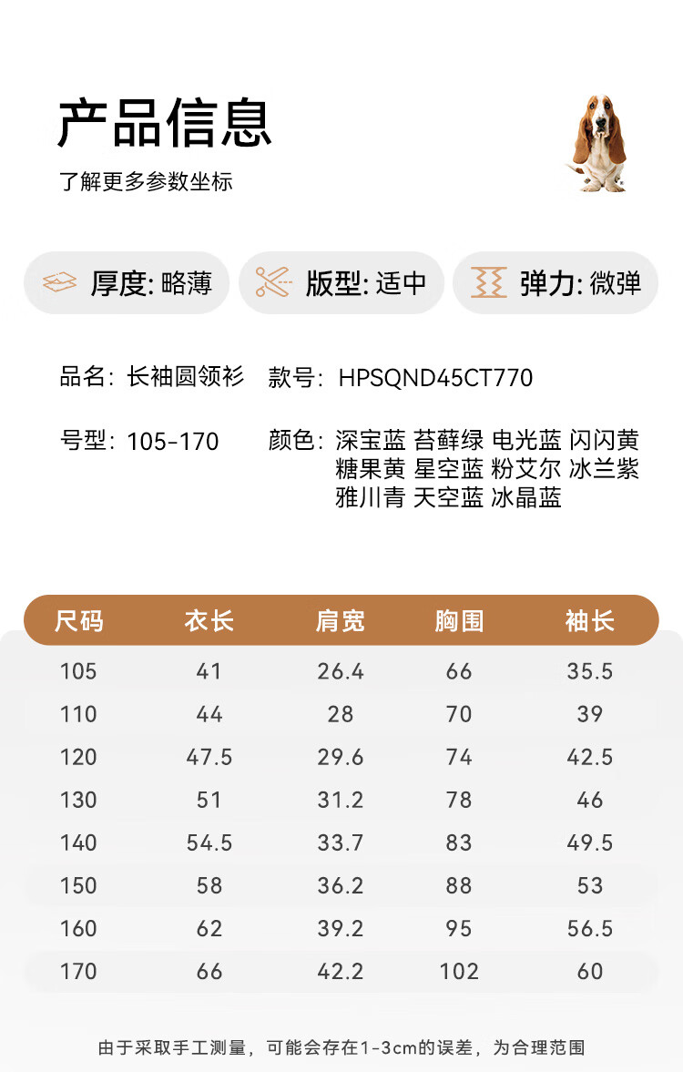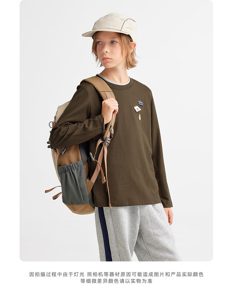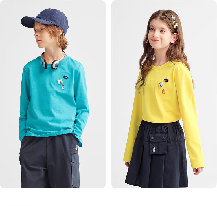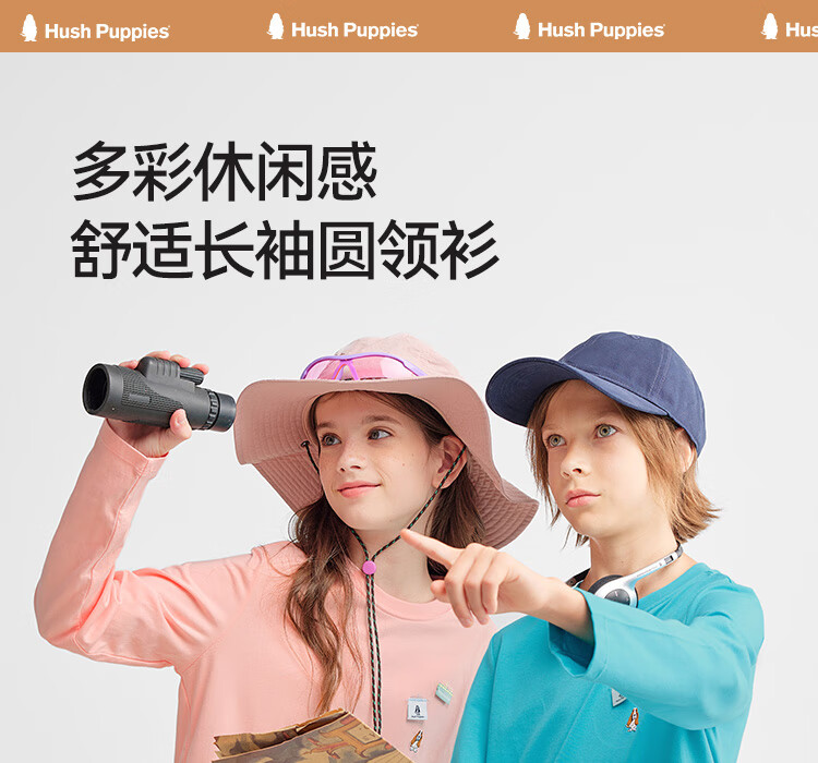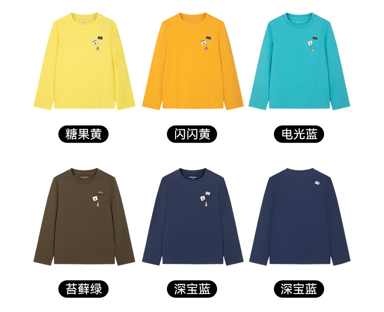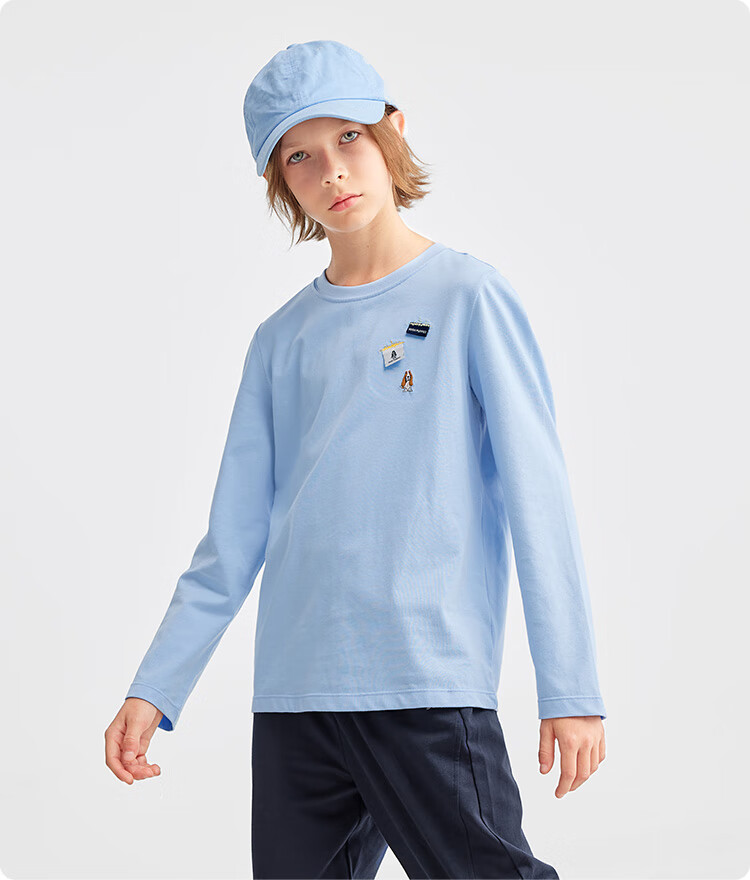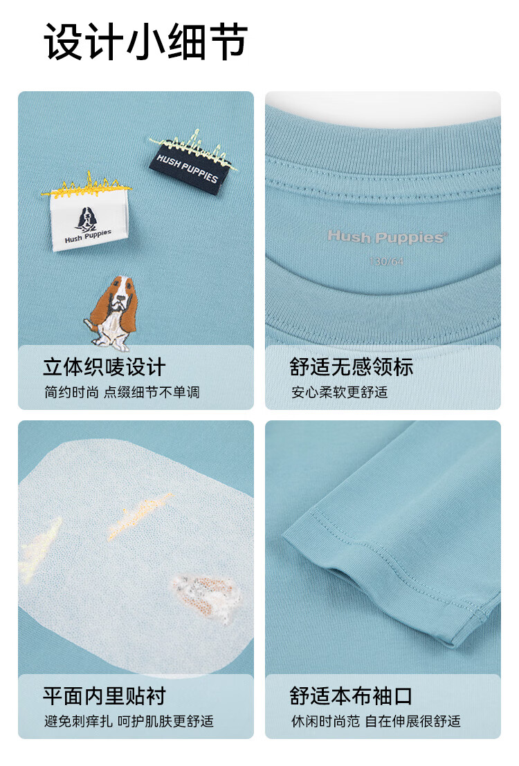 暇步士(Hush Puppies)【云轻棉】童装男女童2025秋季新款柔软舒适时尚活力色彩圆领衫 深宝蓝 170 cm