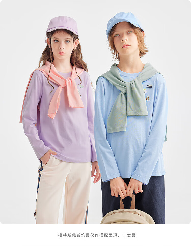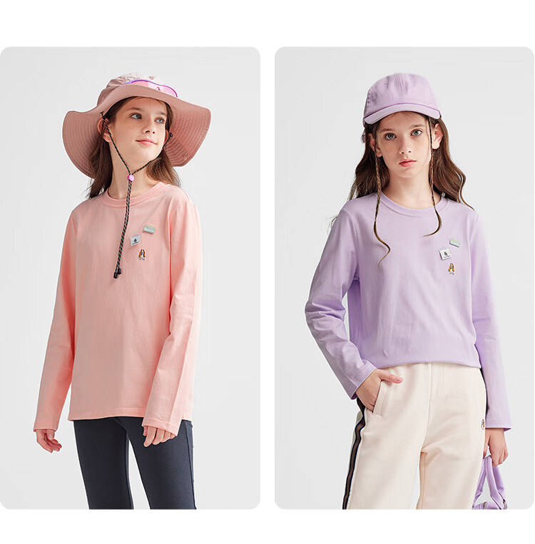 巴拉巴拉童装女童长袖t恤秋装上衣甜美撞色中大童时尚洋气套头衫 紫白色调00371 150