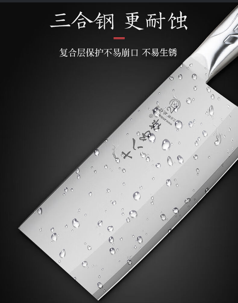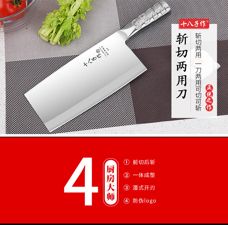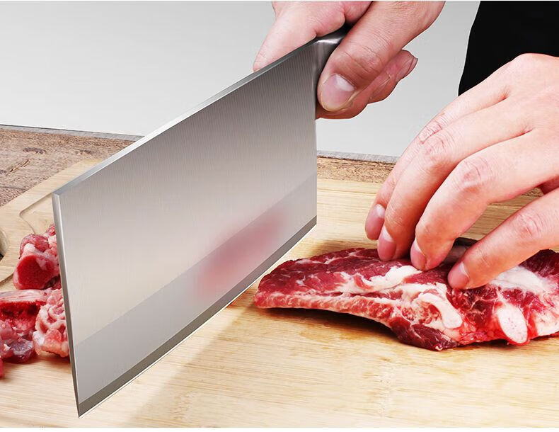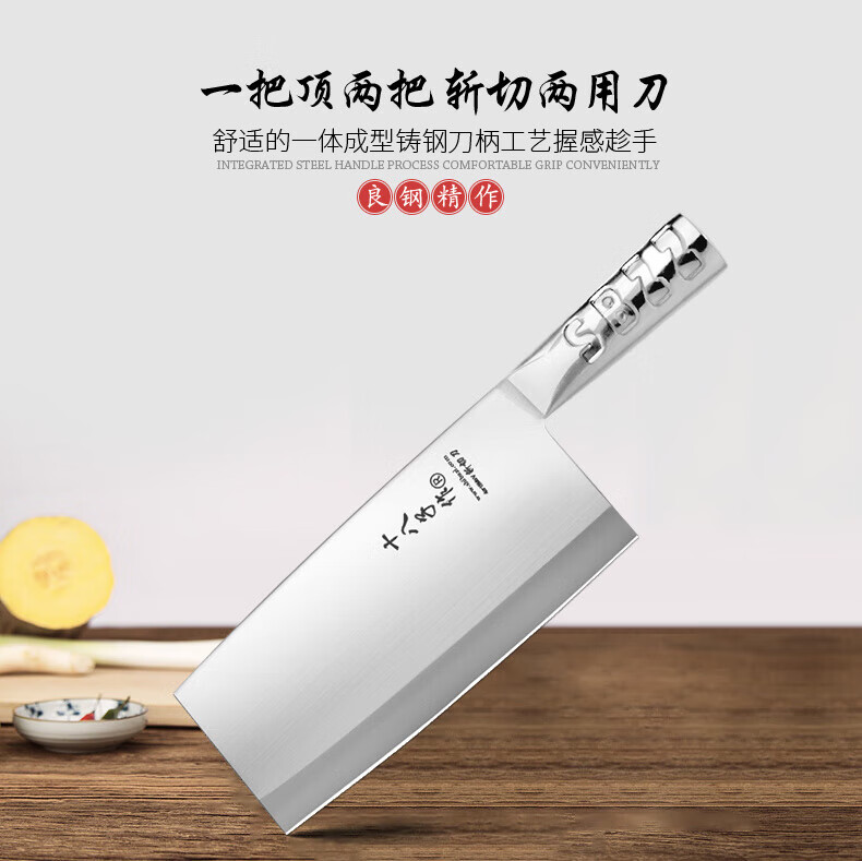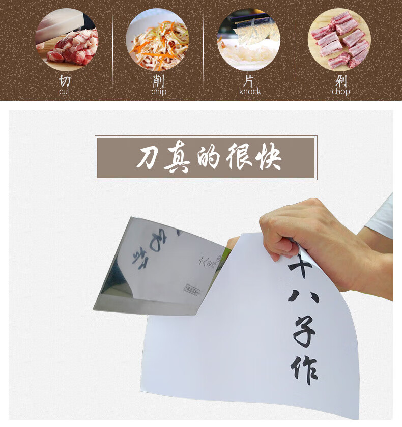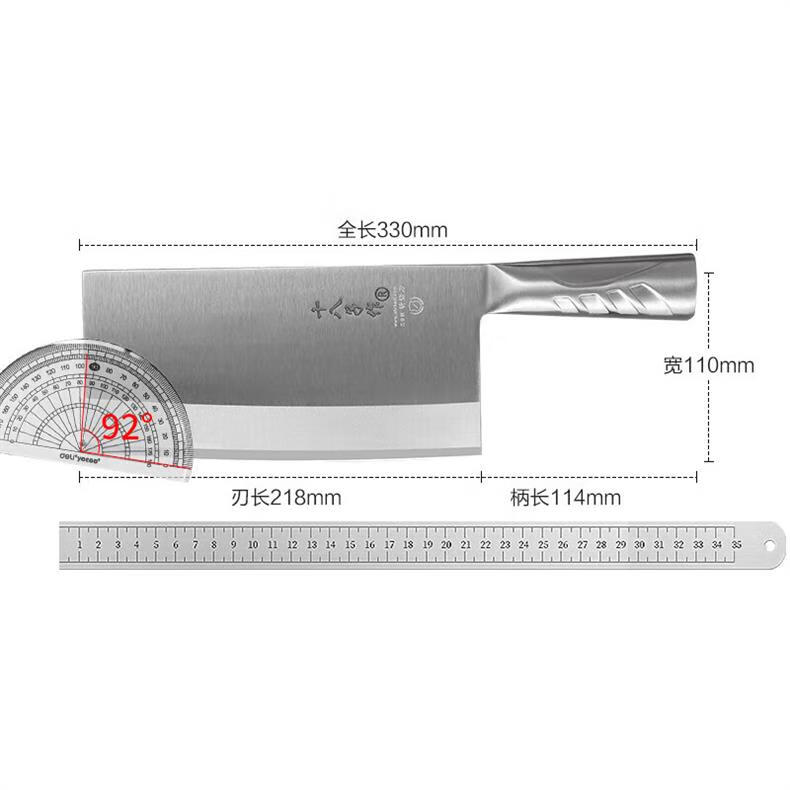 十八子作菜刀酒店厨师刀不锈钢砍骨切菜刀厨房加大加宽桑刀厨片刀阳江刀具 大号三层钢斩切刀TP01-1
