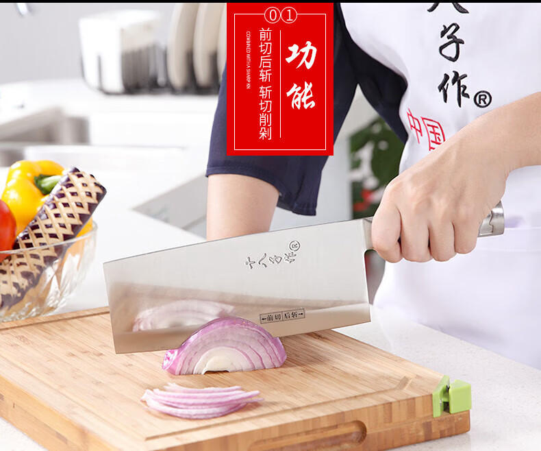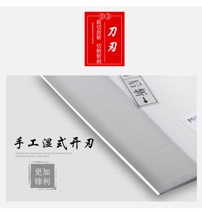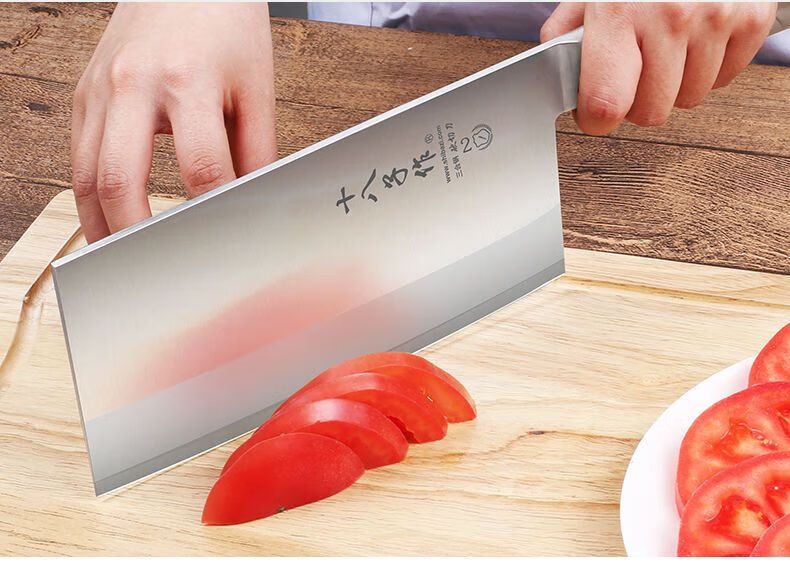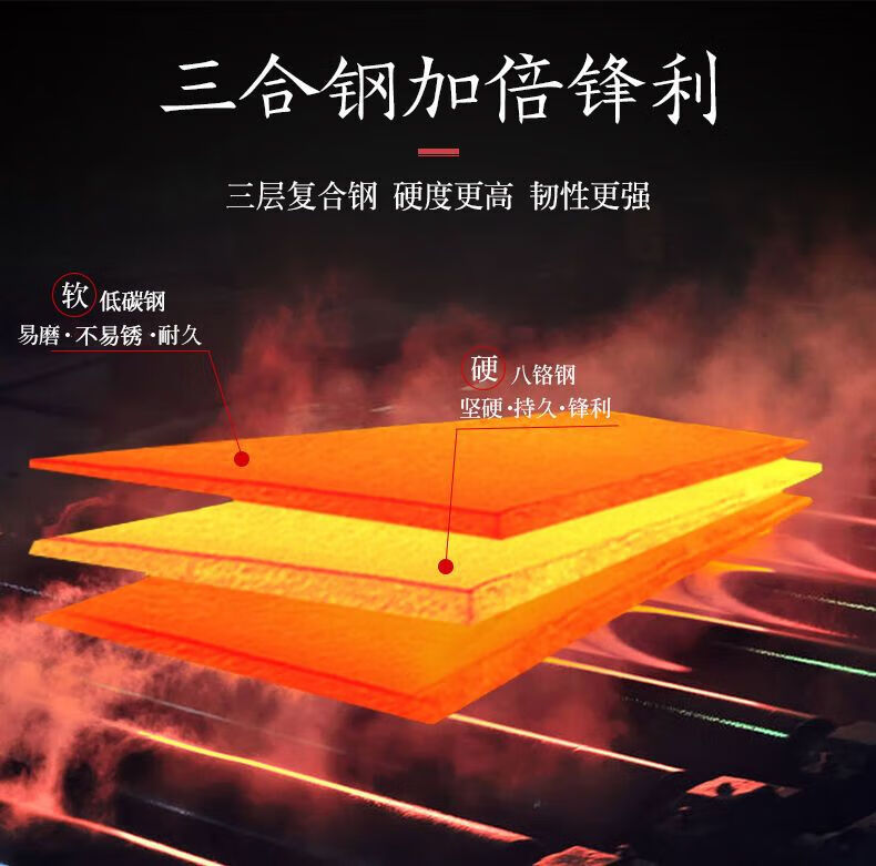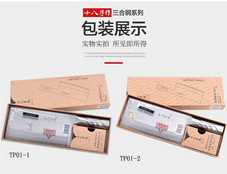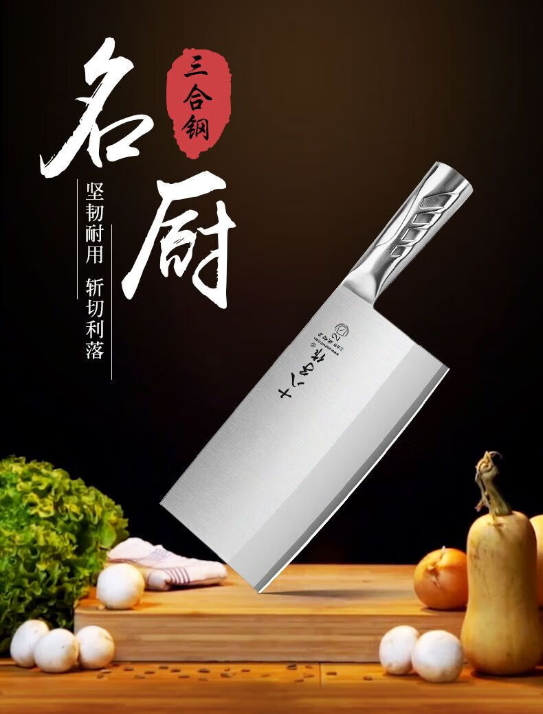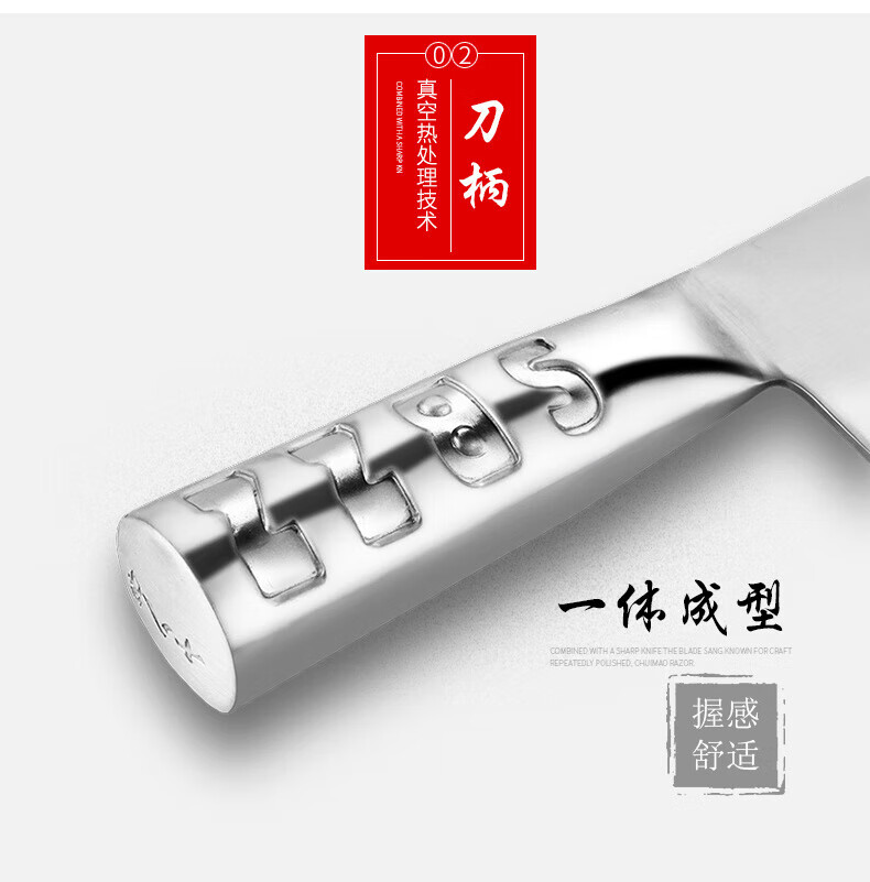 十八子作菜刀酒店厨师刀不锈钢砍骨切菜刀厨房加大加宽桑刀厨片刀阳江刀具 大号三层钢斩切刀TP01-1