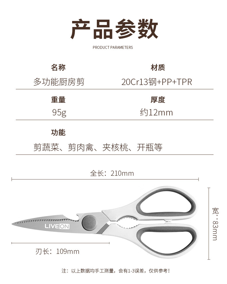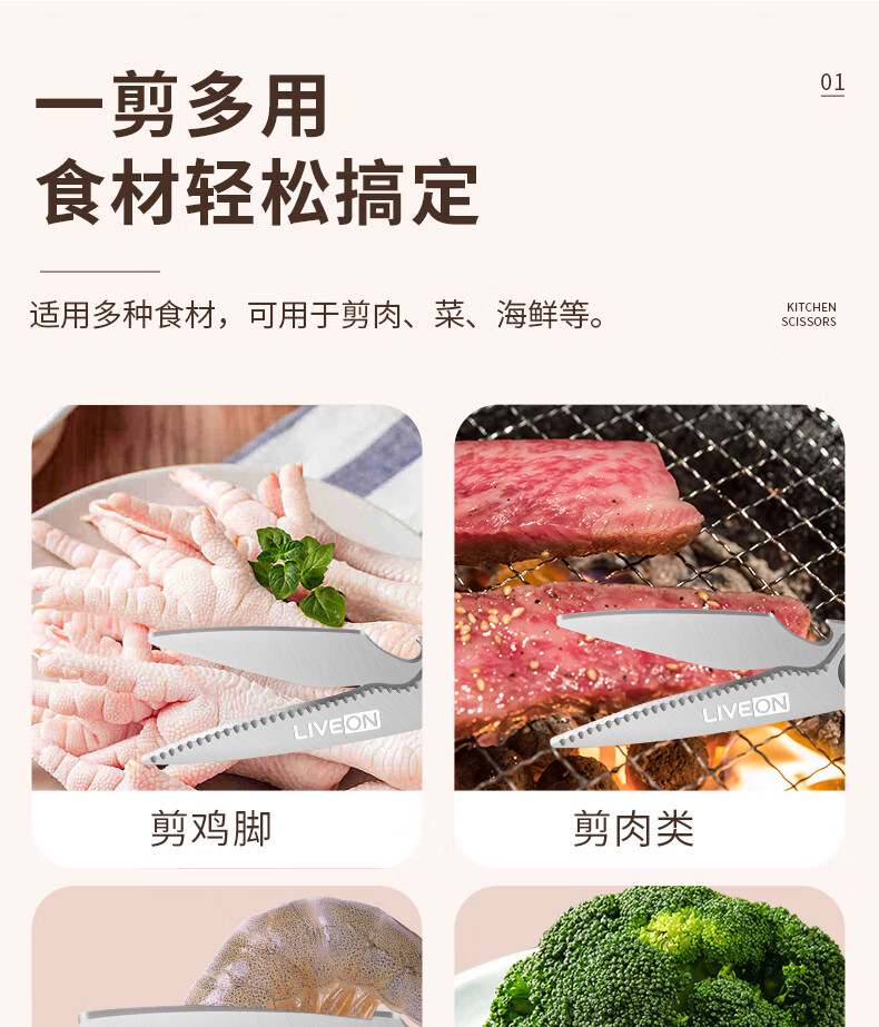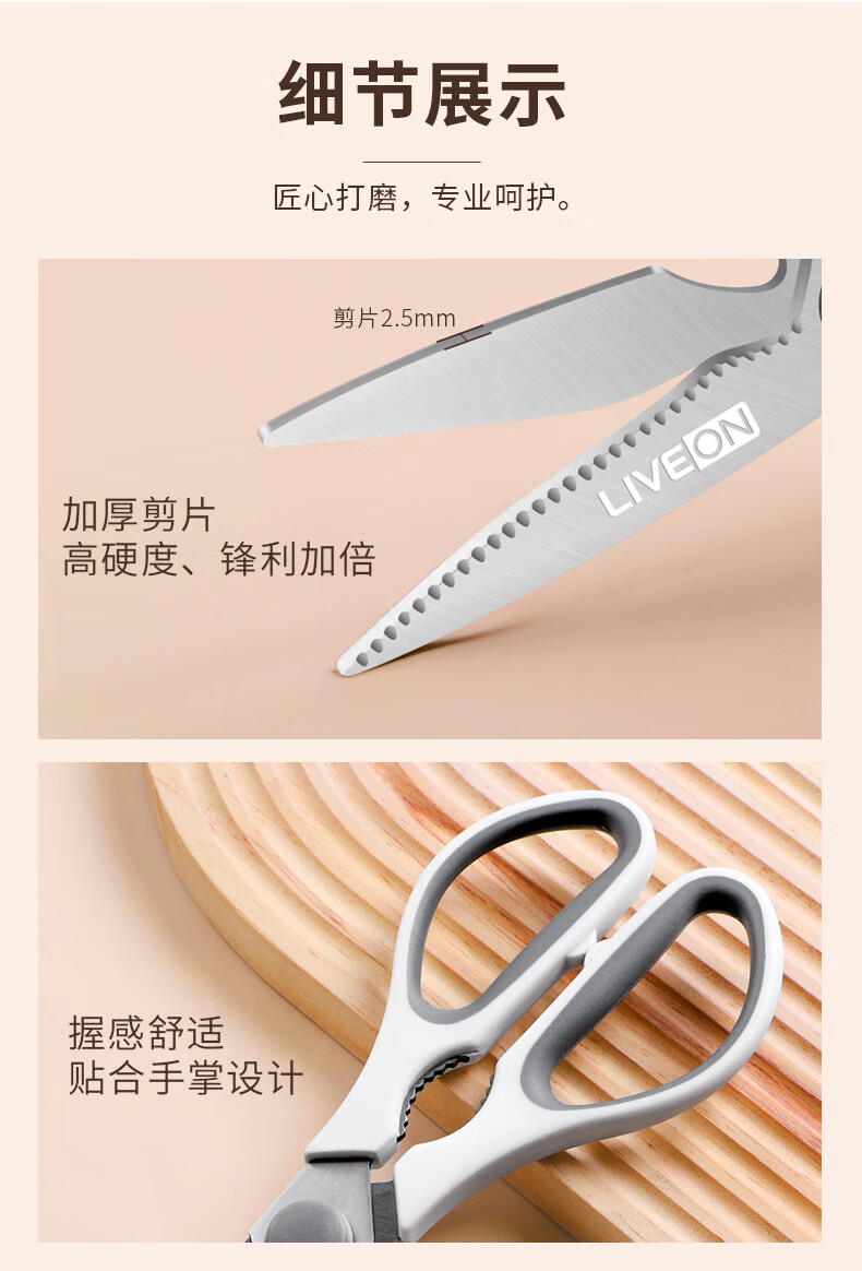 力王(LIVEON)厨房刀具剪刀套装家用多功能剪刀套水果刀组合套刀果蔬厨房用剪 可拆卸剪刀-无剪刀套