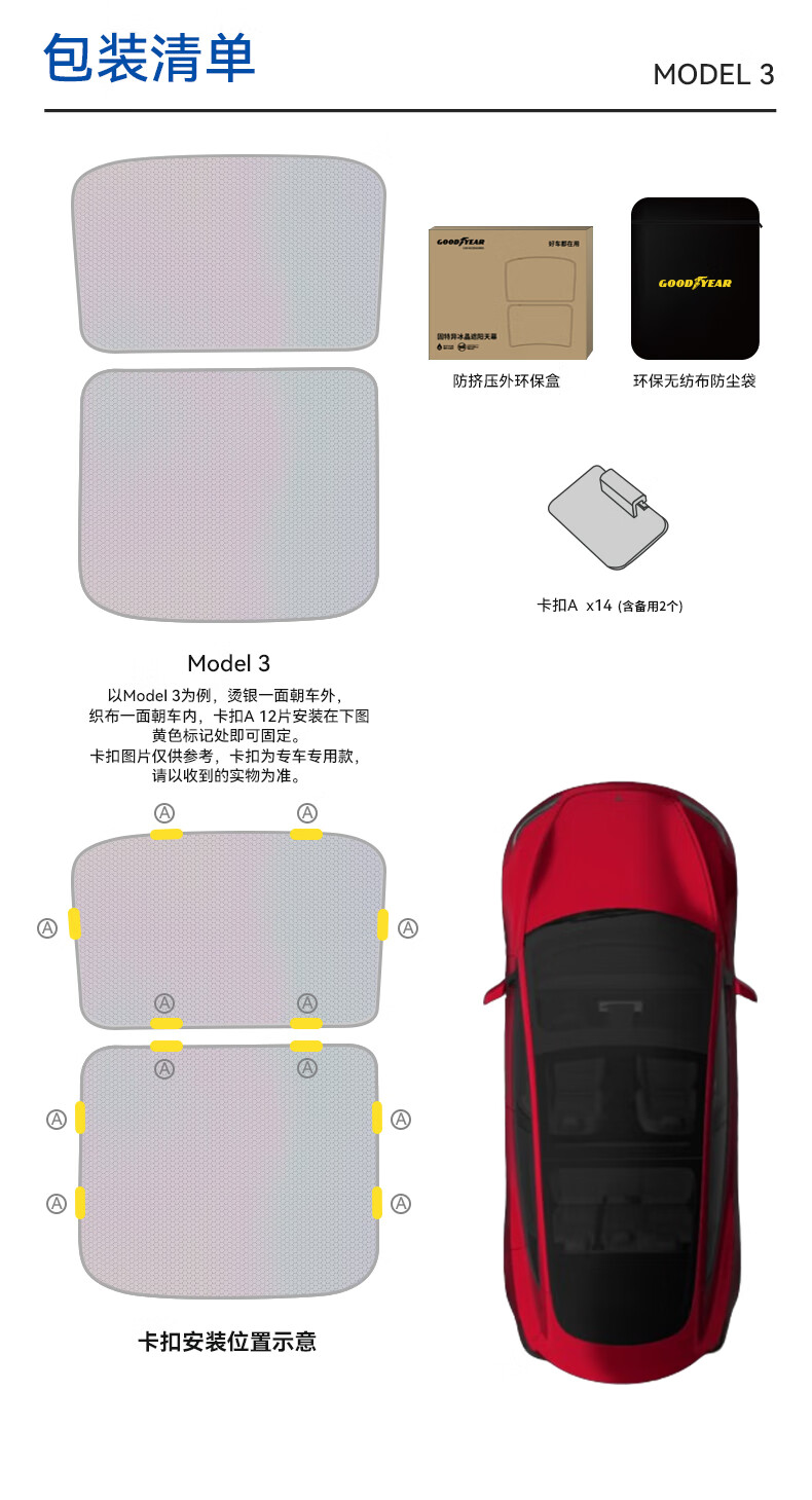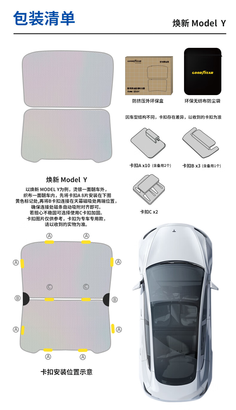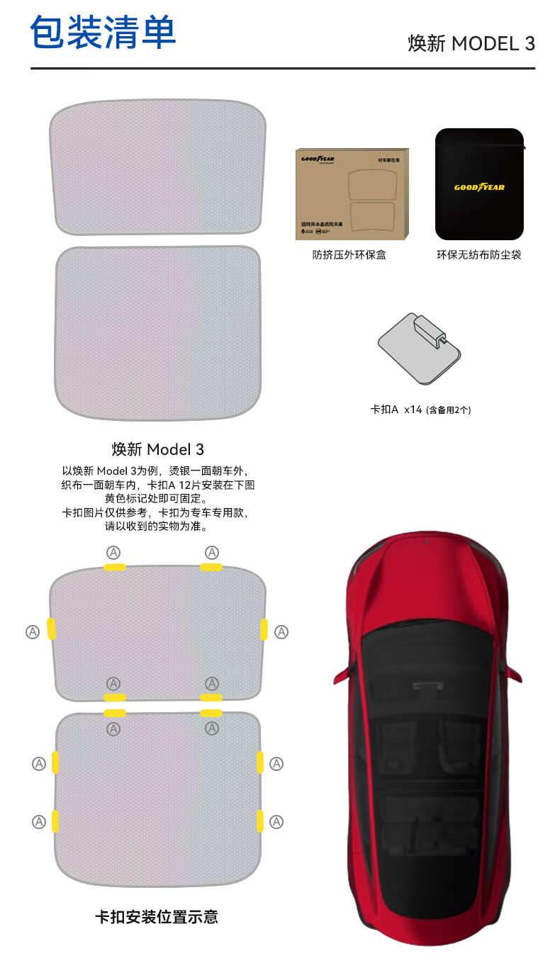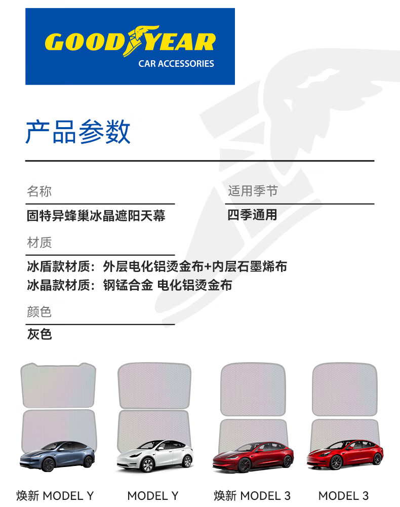固特异(Goodyear)汽车遮阳帘适用于特斯拉焕新ModelY25款隔热防晒天窗遮阳挡双层
