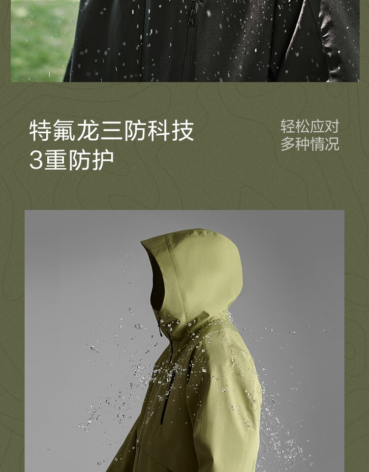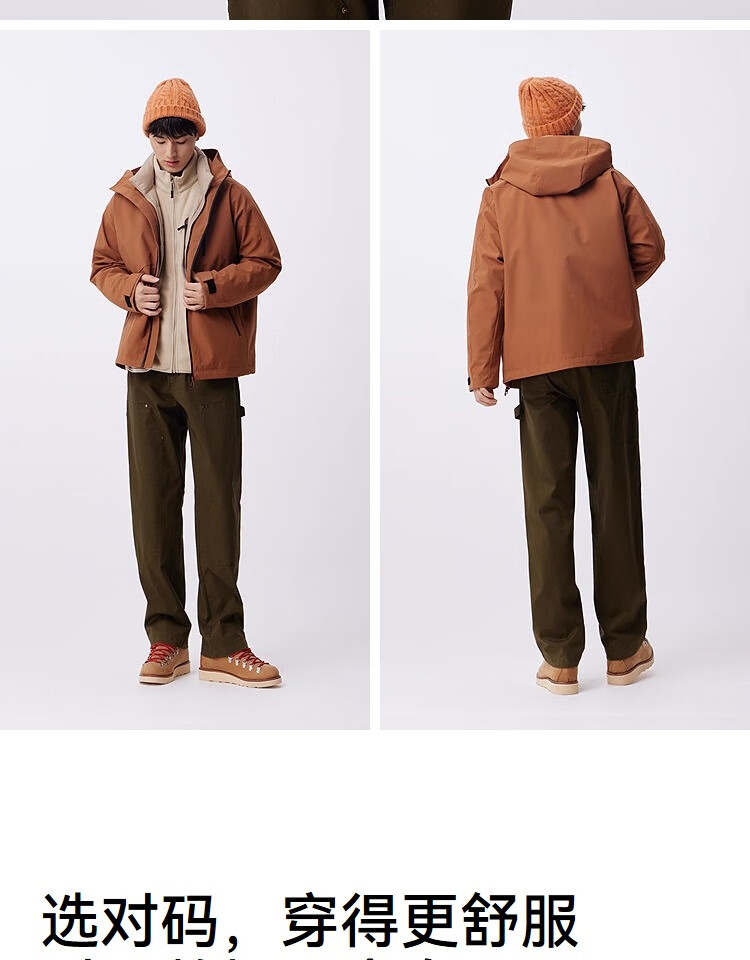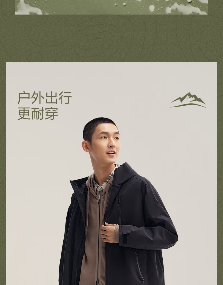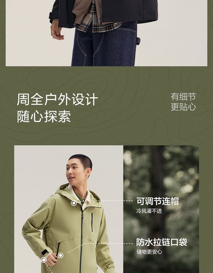 森马(Semir)三防夹克男户外登山徒步露营情侣男士外套秋季中性款101524108206