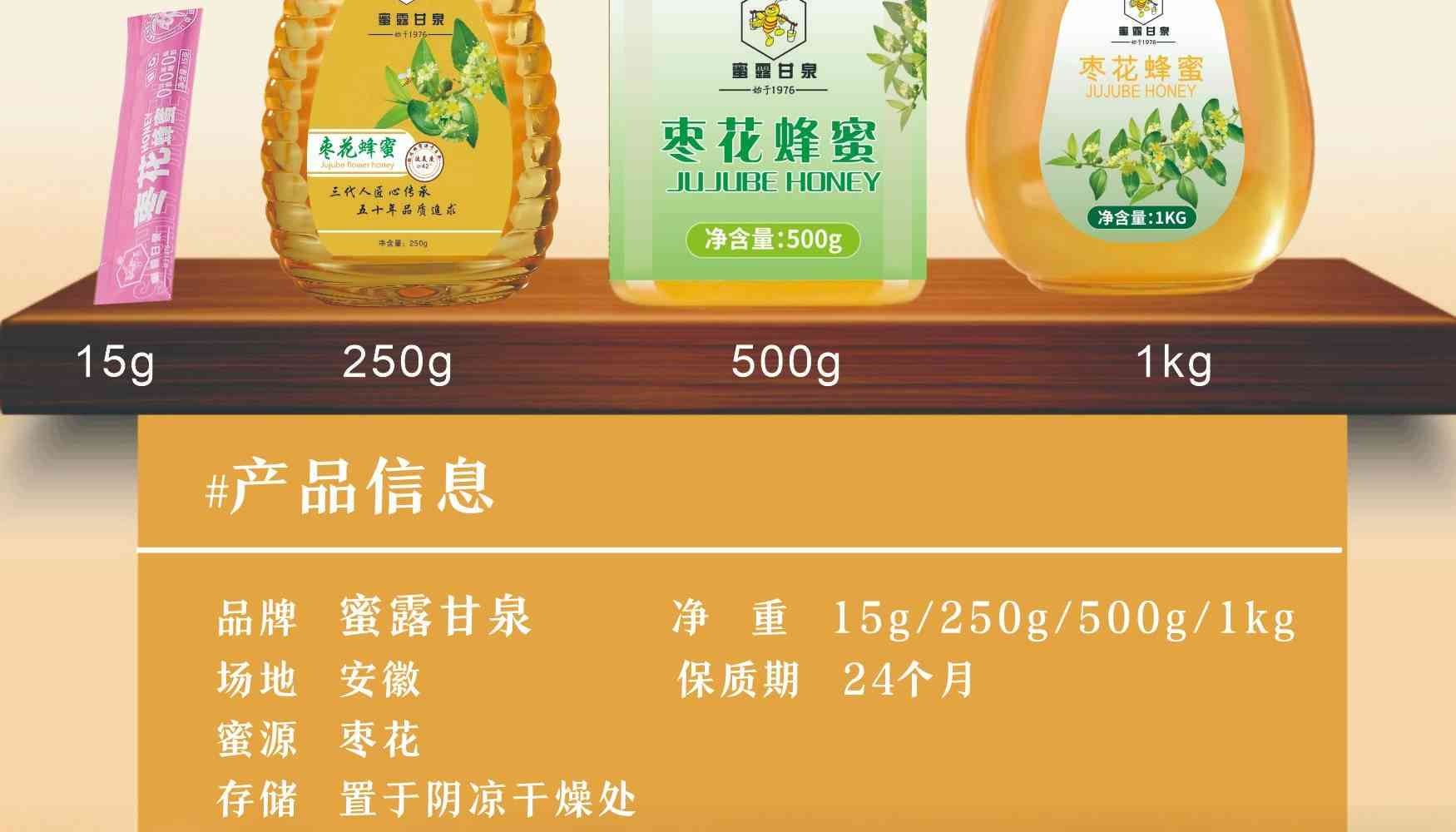 蜜露甘泉 枣花蜂蜜 滋补营养 纯正天然 厂家直发 枣花蜂蜜便携装250g*1瓶