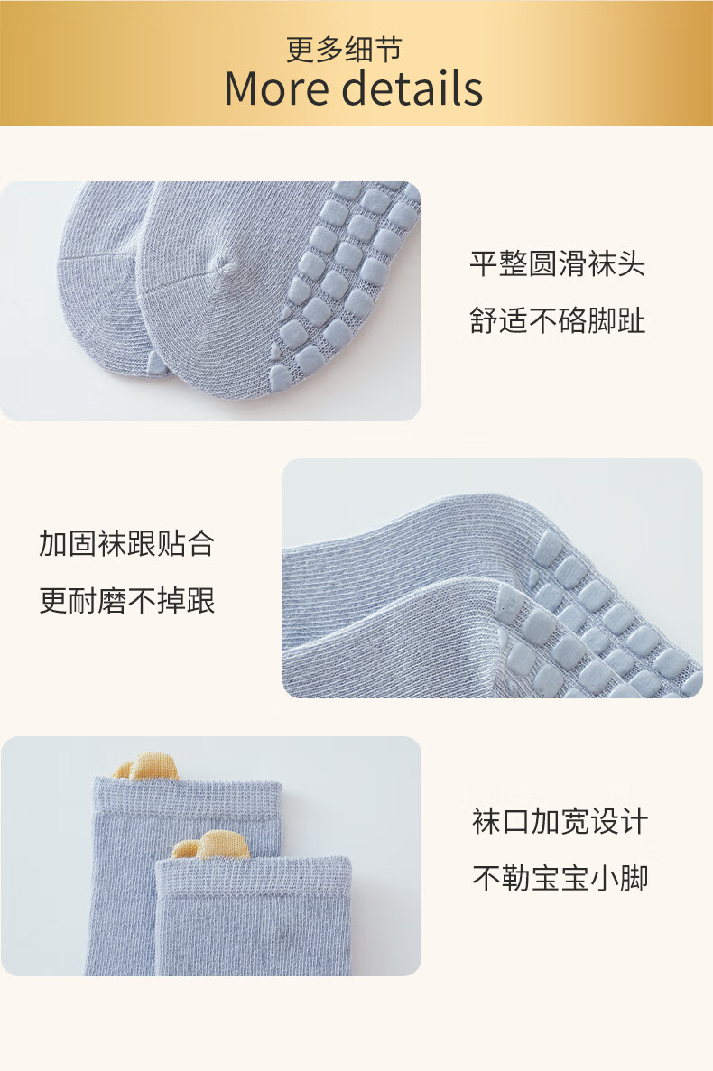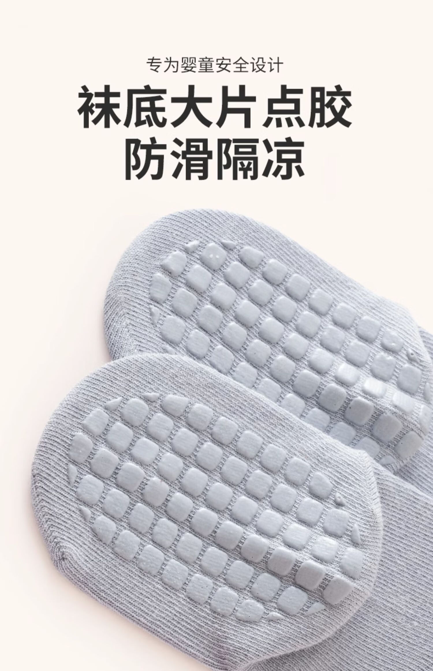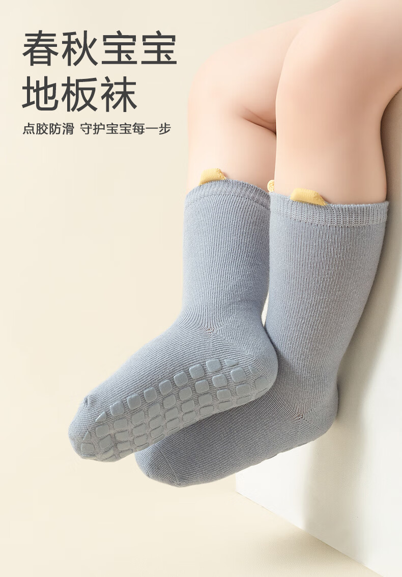 贝肽斯婴儿袜子地板袜春秋季款宝宝0一3月防滑隔凉学步中筒棉袜S 米+粉+灰【B953】 春秋款 3双 均码 (1-3岁) 适合脚长12-14cm