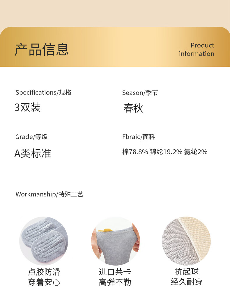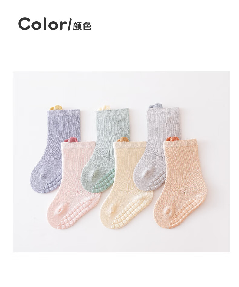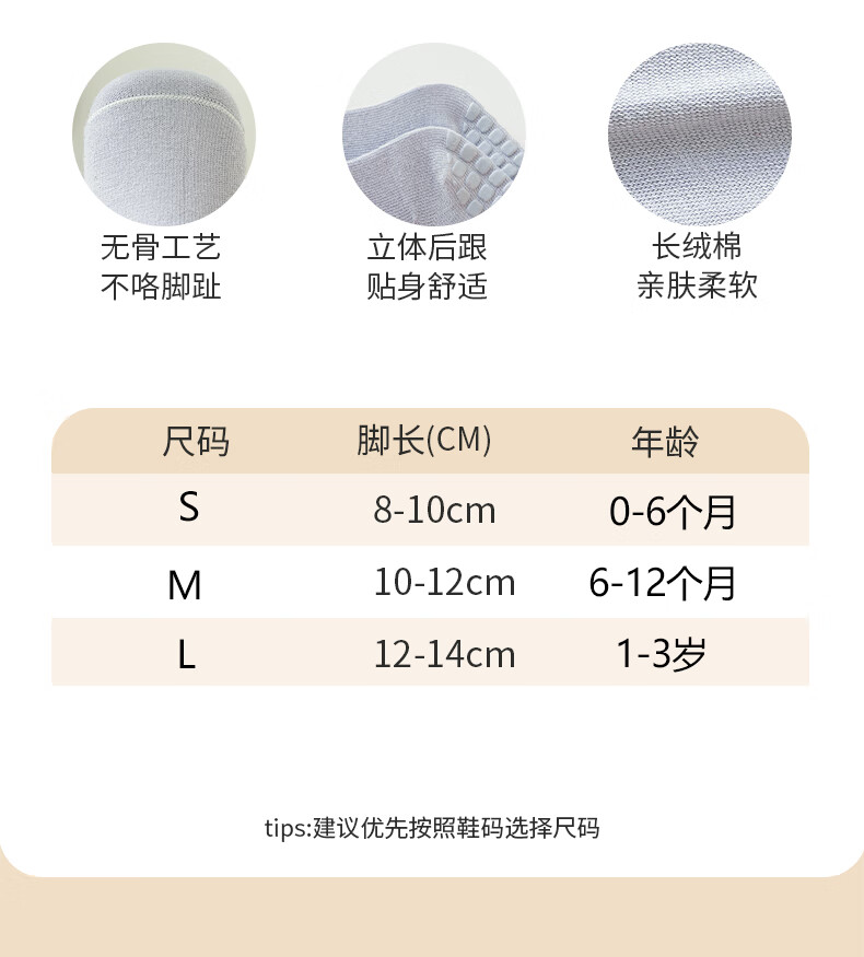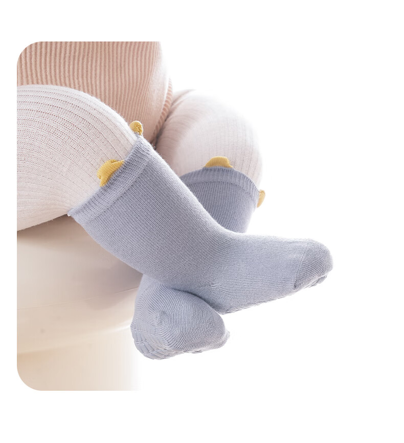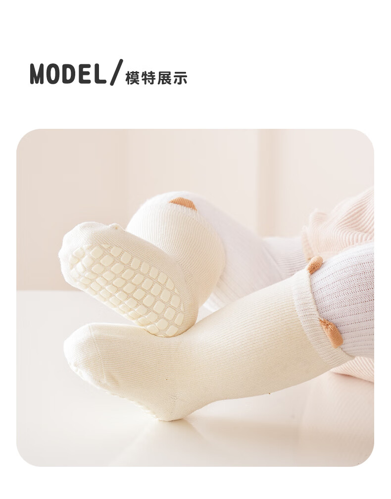 贝肽斯婴儿袜子地板袜春秋季款宝宝0一3月防滑隔凉学步中筒棉袜S 米+粉+灰【B953】 春秋款 3双 均码 (1-3岁) 适合脚长12-14cm