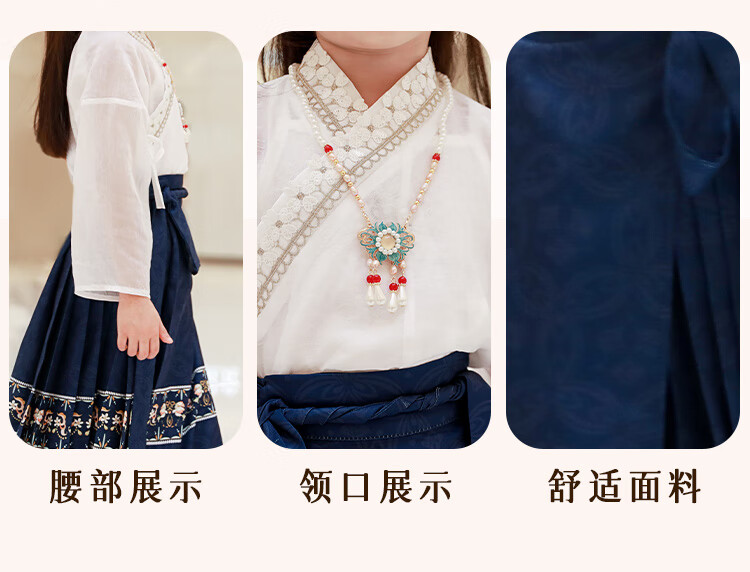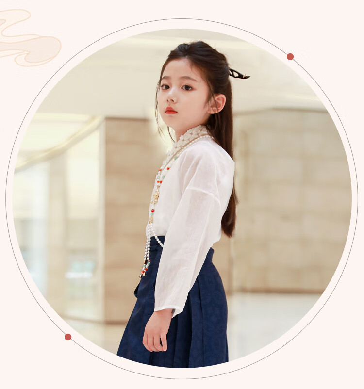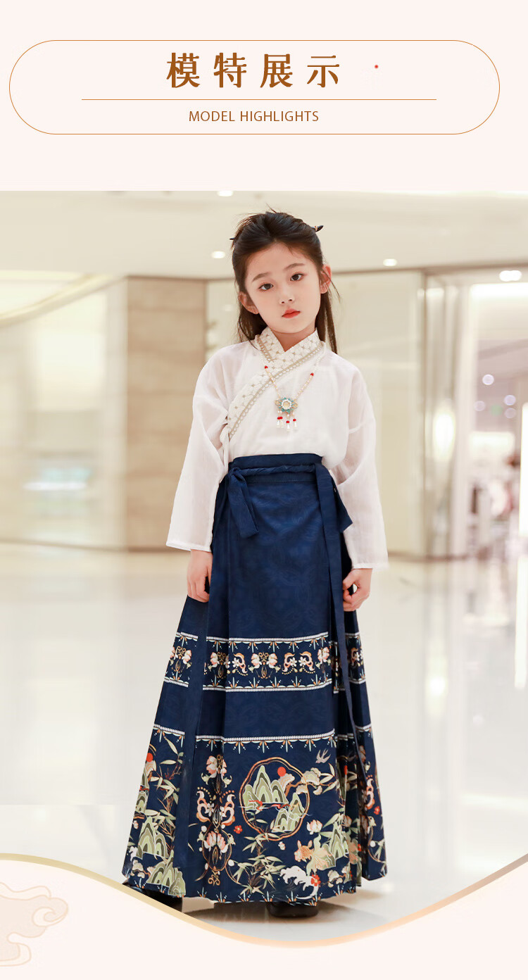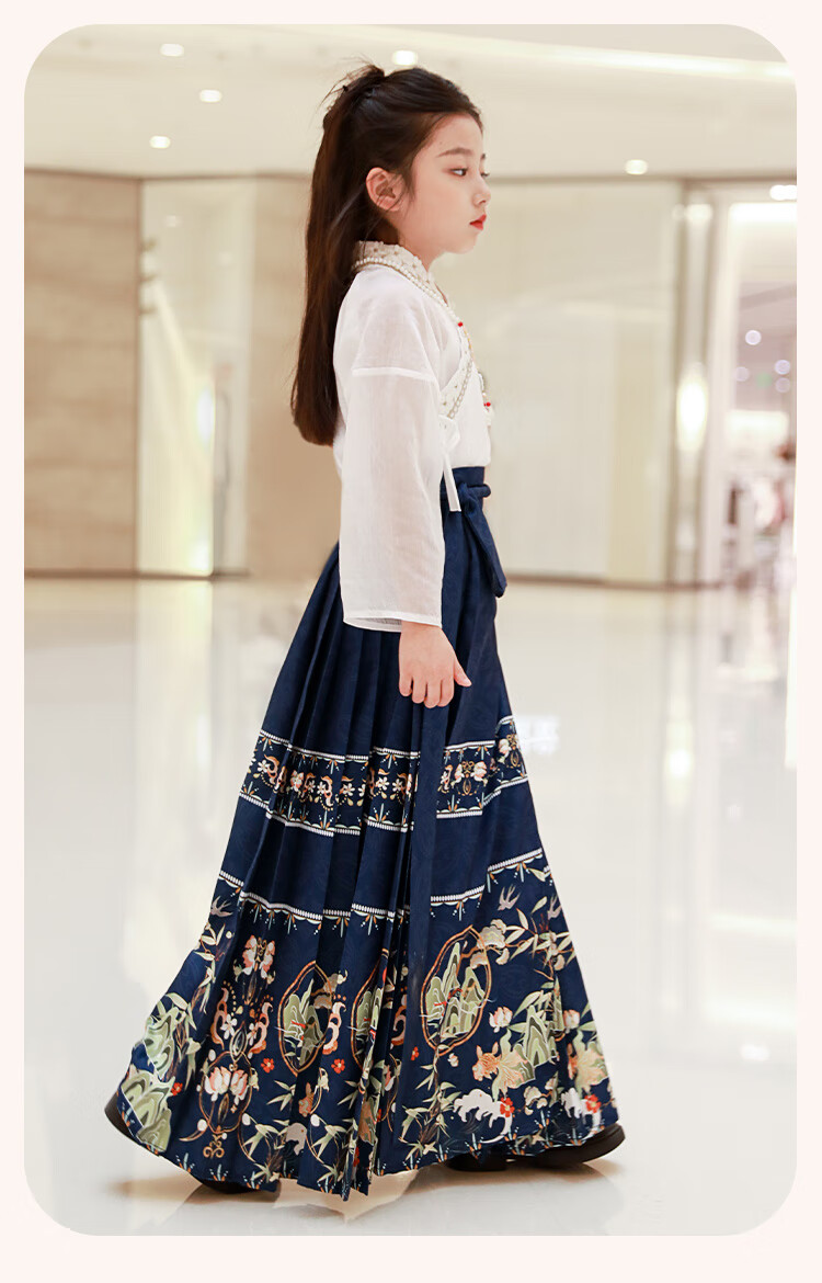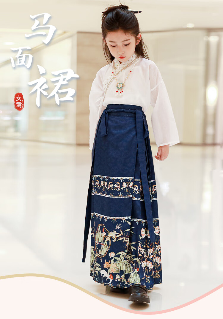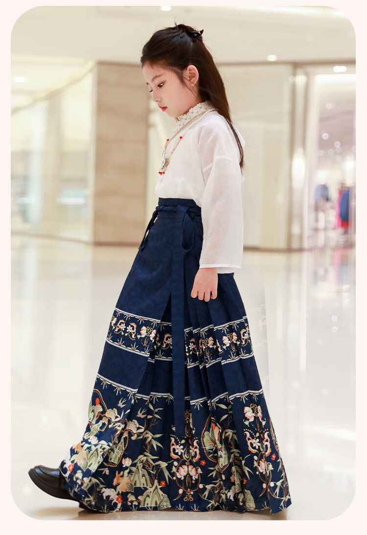 罗蒙女童马面裙套装中秋款儿童汉服新中式古装演出服 藏青色套装 120