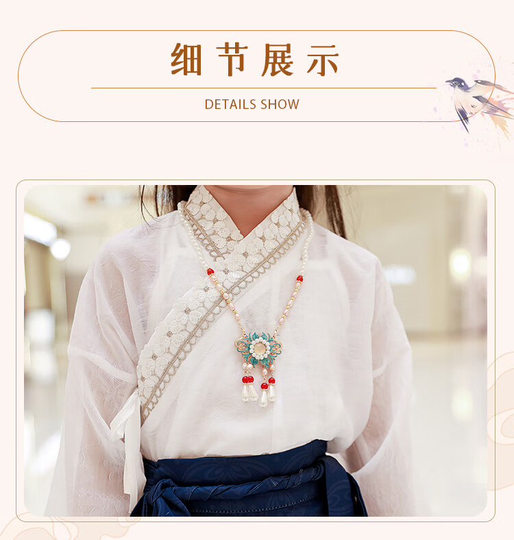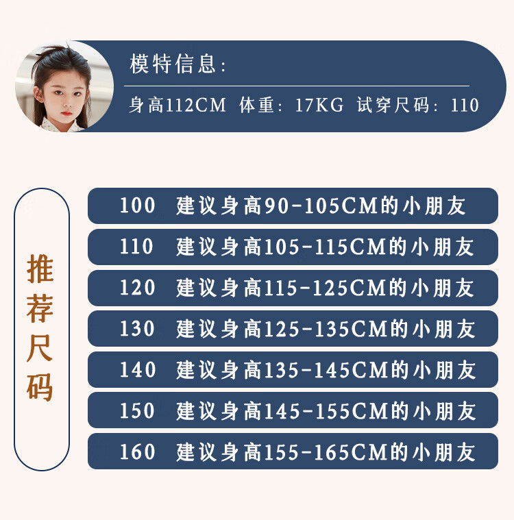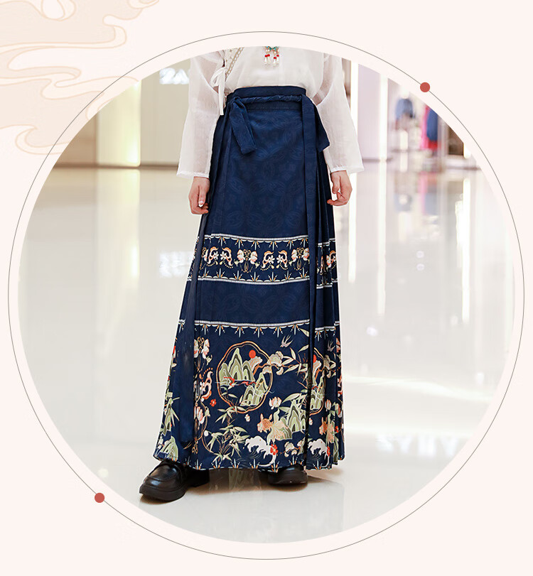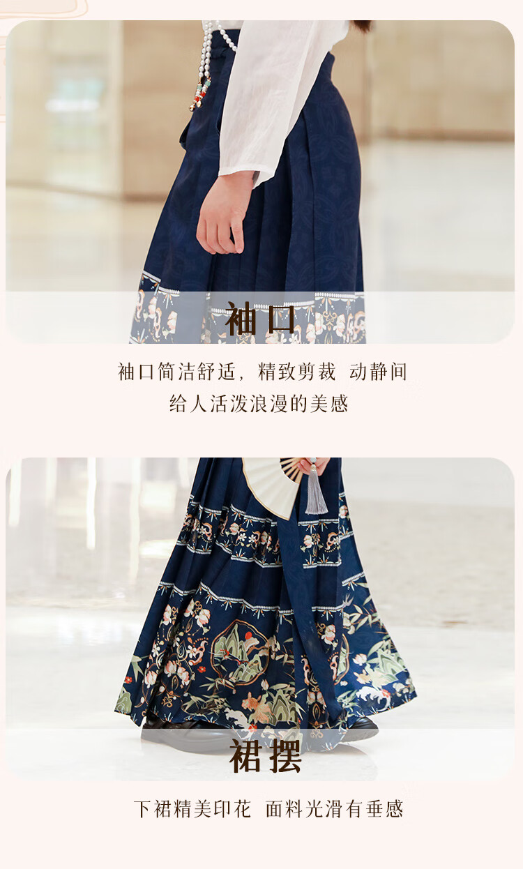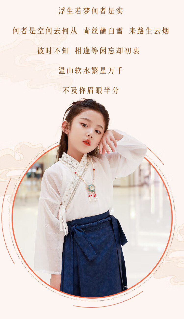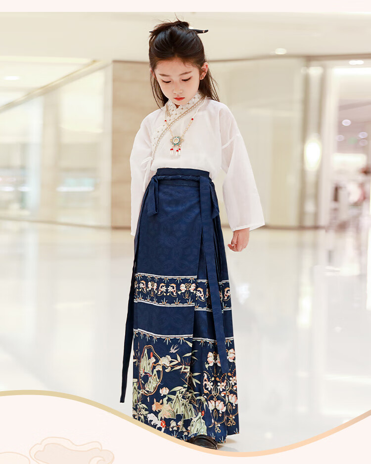 罗蒙女童马面裙套装中秋款儿童汉服新中式古装演出服 藏青色套装 120