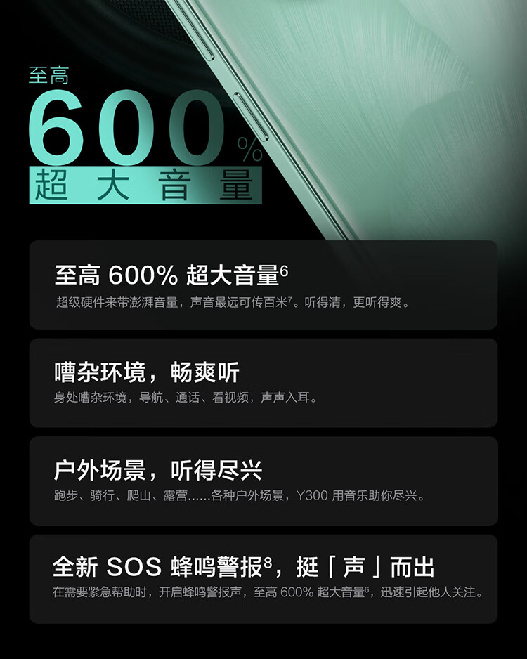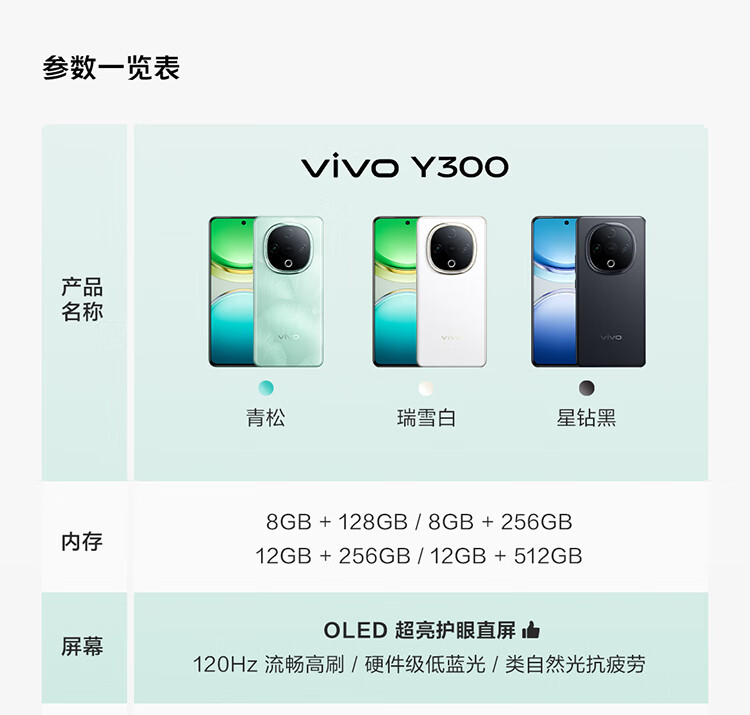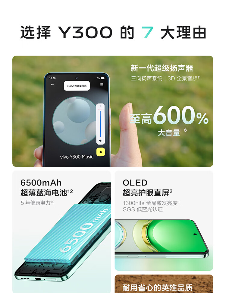vivo Y300 8GB+256GB 青松 国家补贴 新一代超级扬声器 6500mAh超薄蓝海电池 超抗摔护眼直屏 AI手机