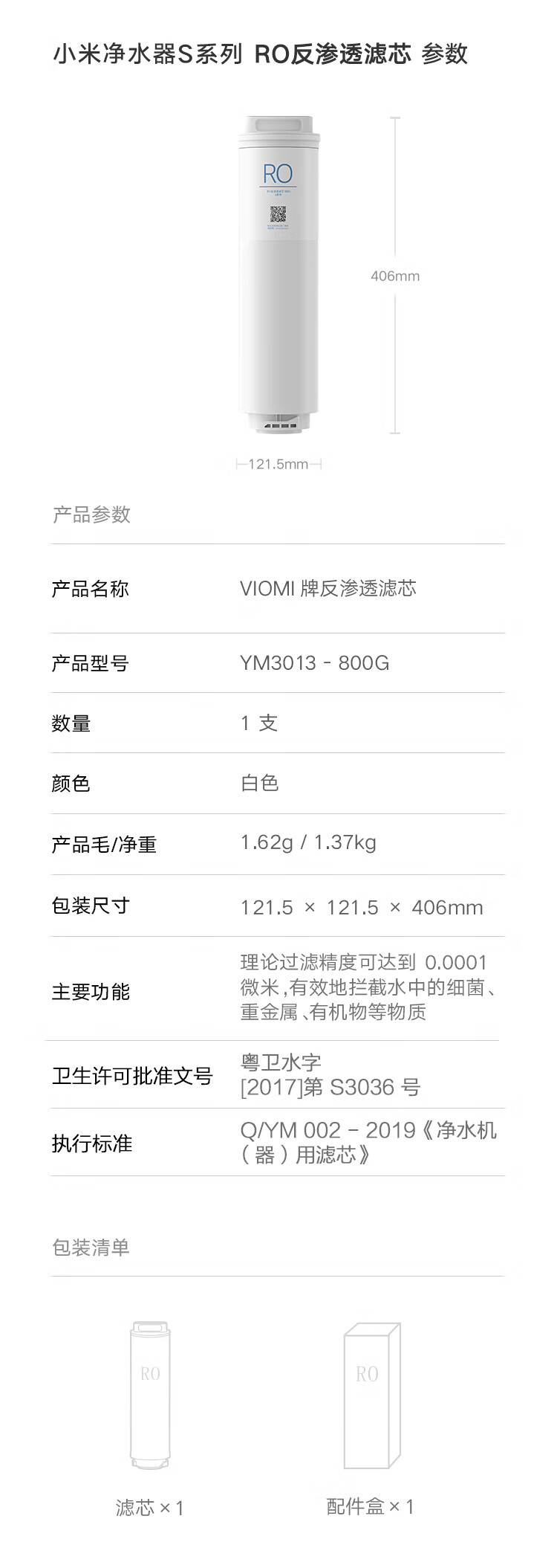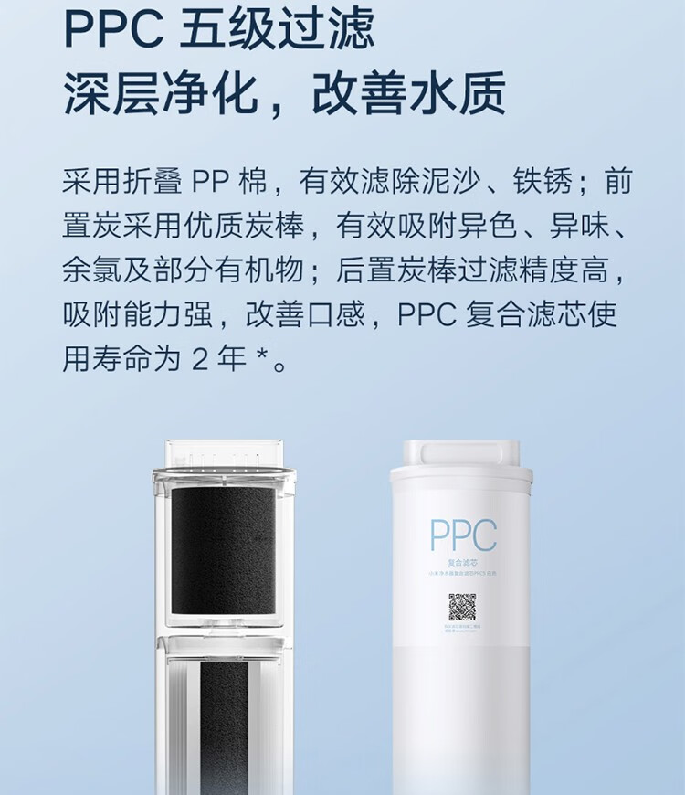 小米净水器Q800 1000G 双核1000G 1200G滤芯 RO反渗透滤芯复合滤芯 Q800/1000G/1200G,复合滤芯PPC5