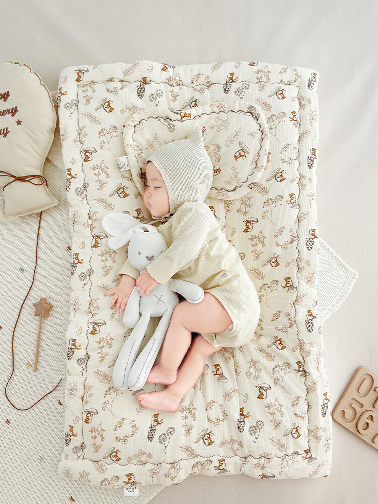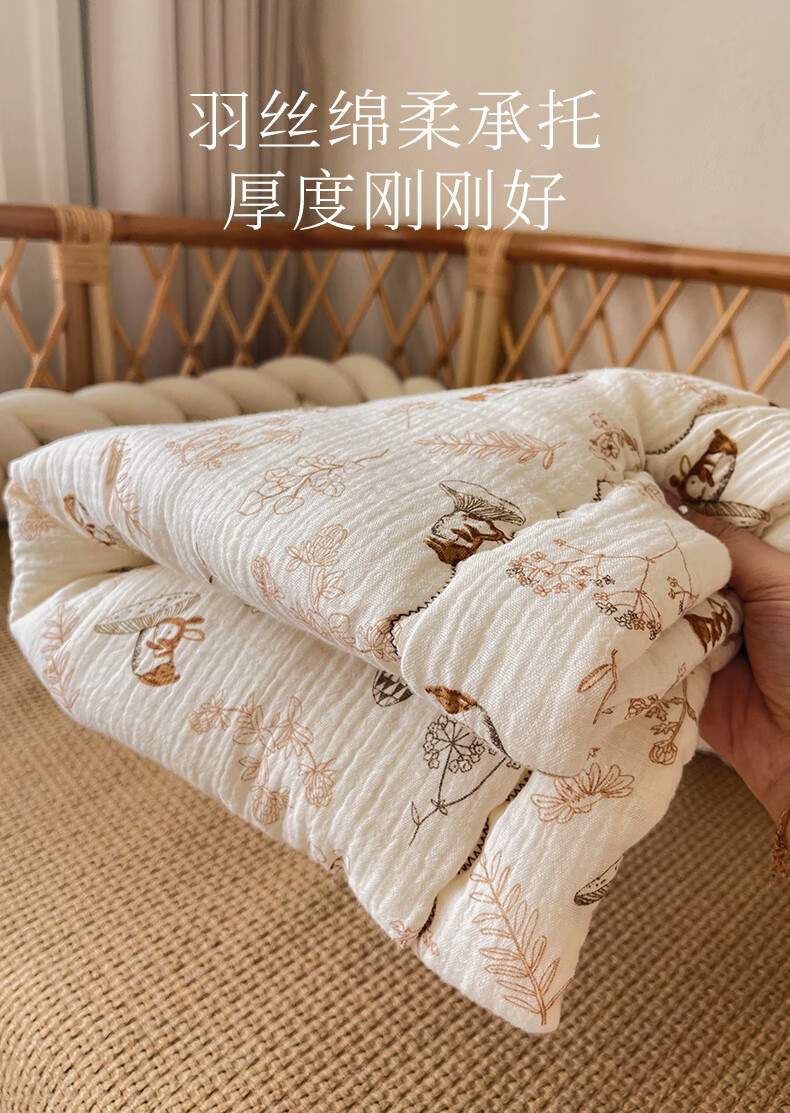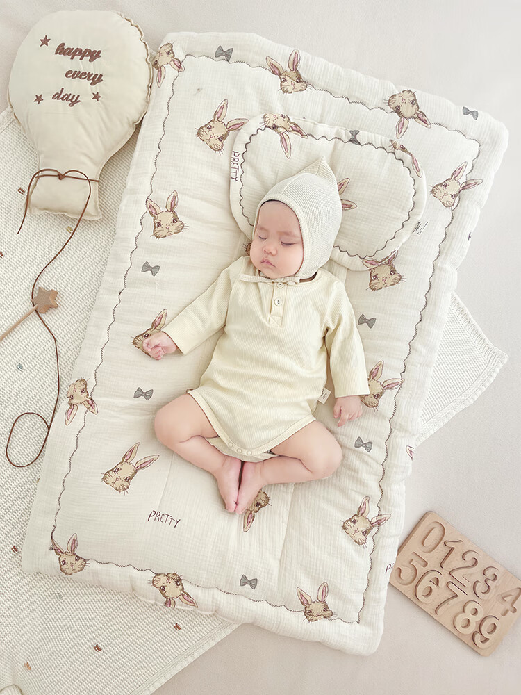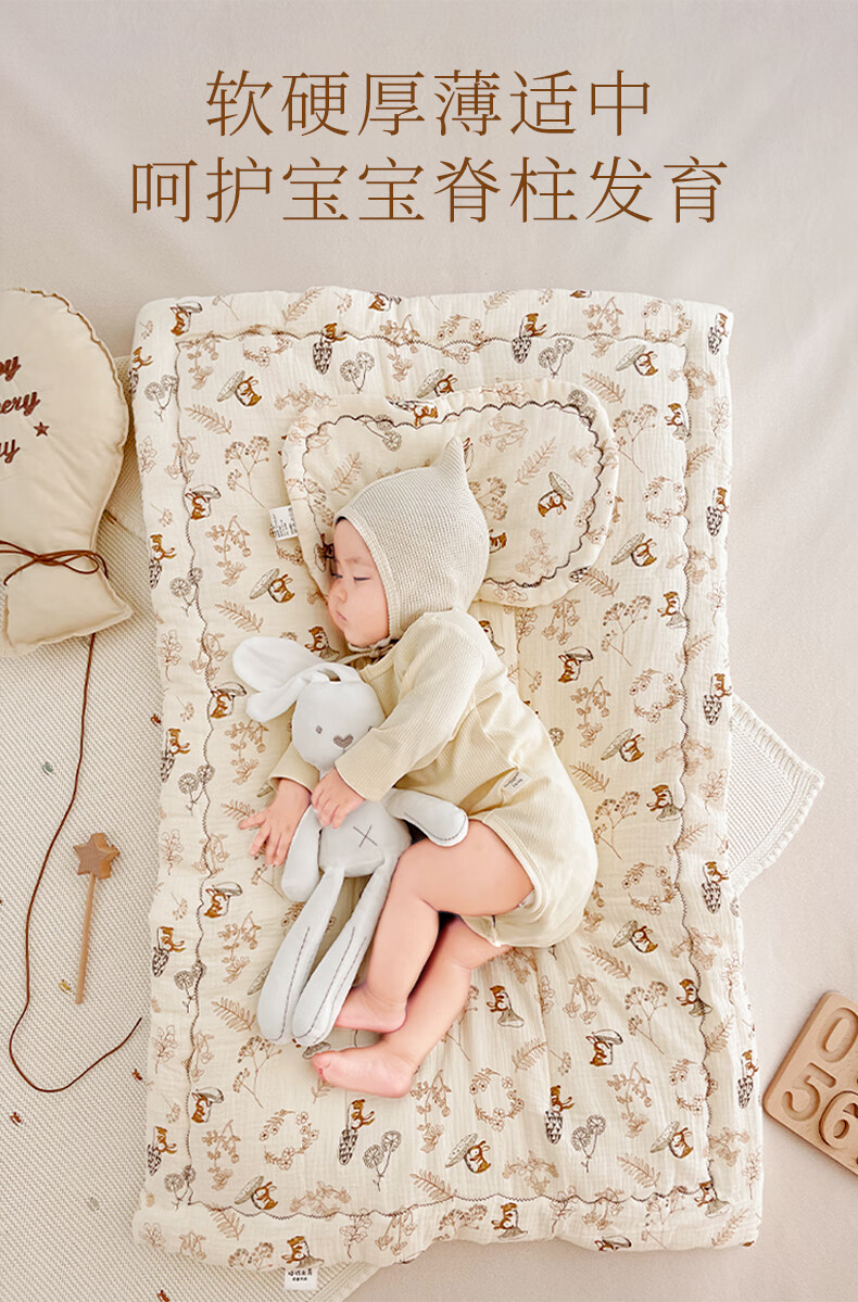 洁丽雅婴儿床褥新生专用小褥子纯棉床垫可水洗床垫宝宝幼儿圆铺垫厚垫褥 北海木槿【双面棉纱春秋中厚】褥 100*60