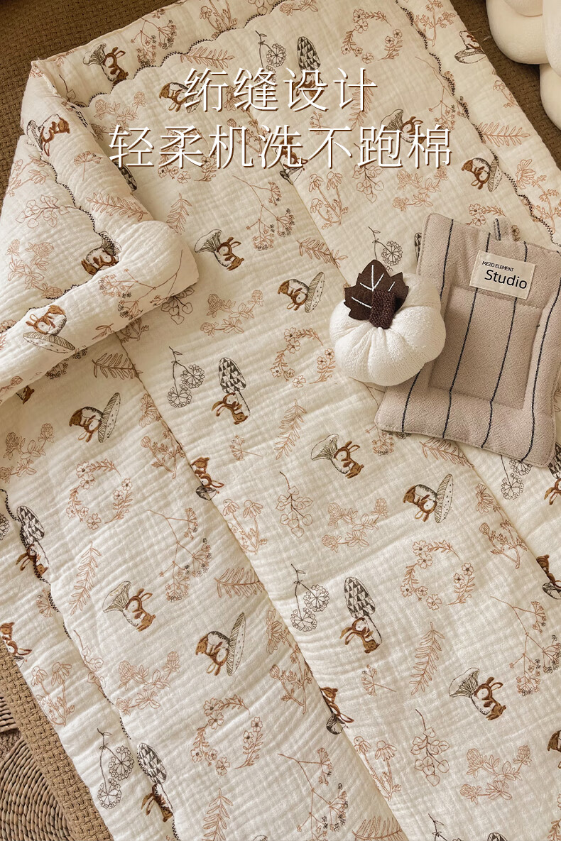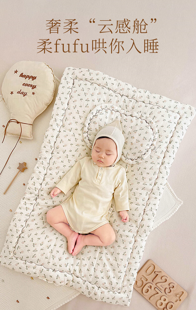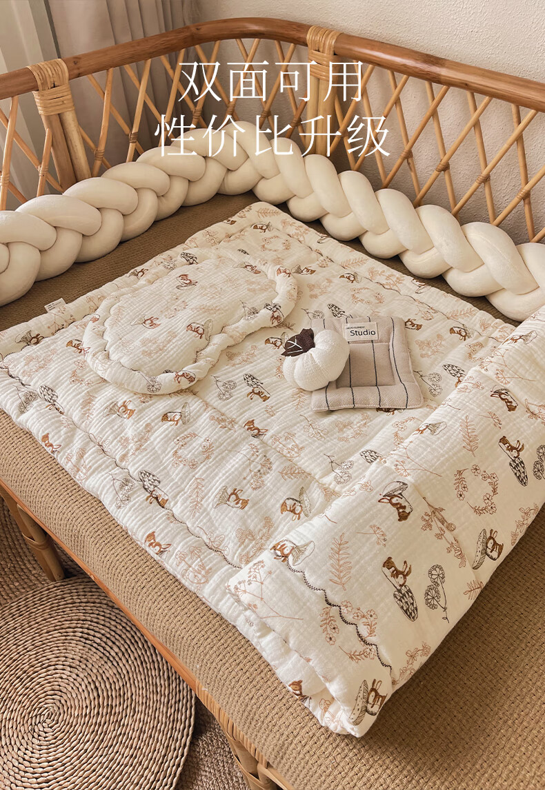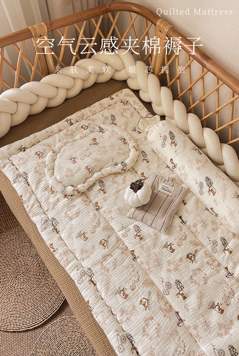 洁丽雅婴儿床褥新生专用小褥子纯棉床垫可水洗床垫宝宝幼儿圆铺垫厚垫褥 北海木槿【双面棉纱春秋中厚】褥 100*60