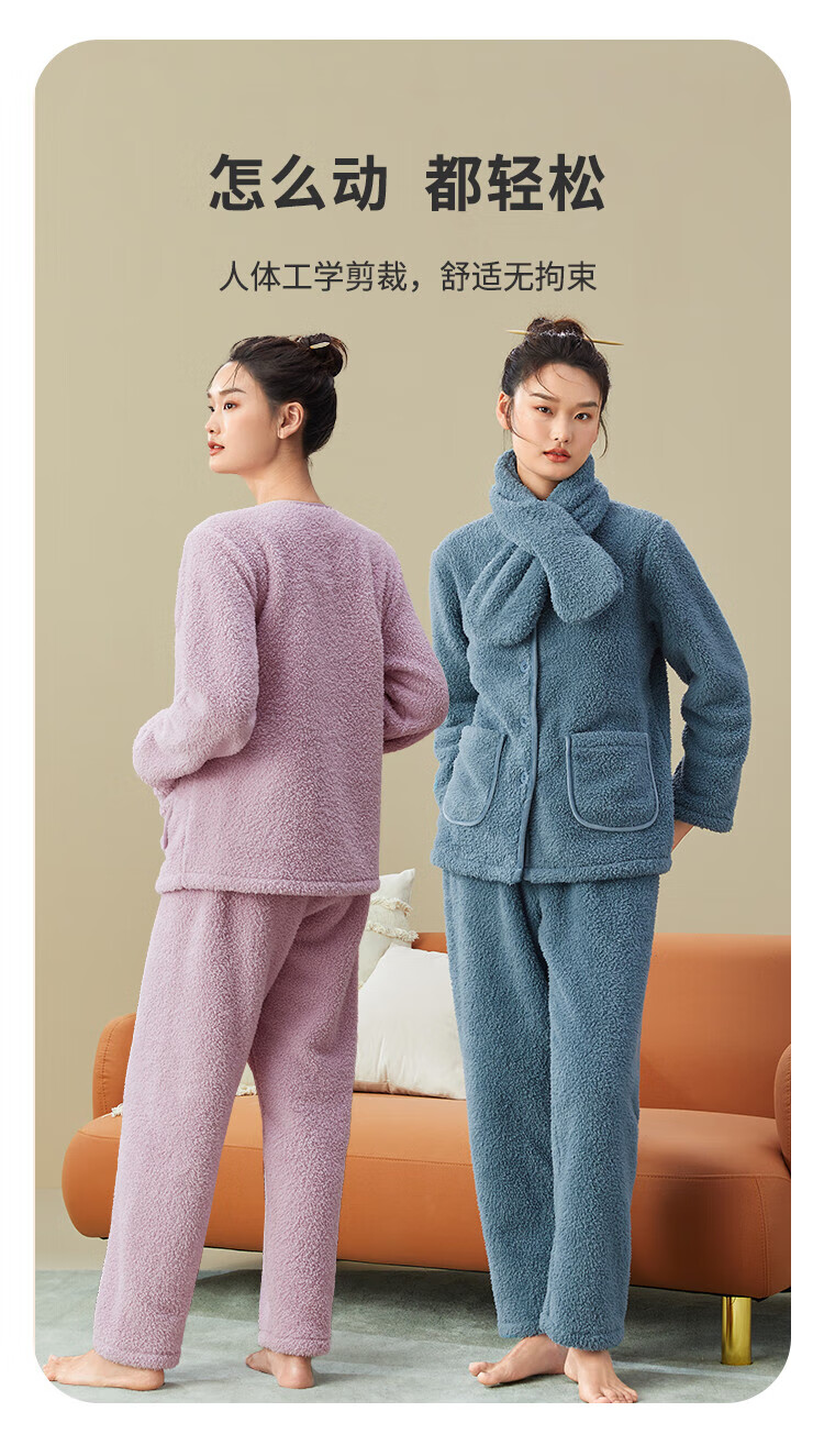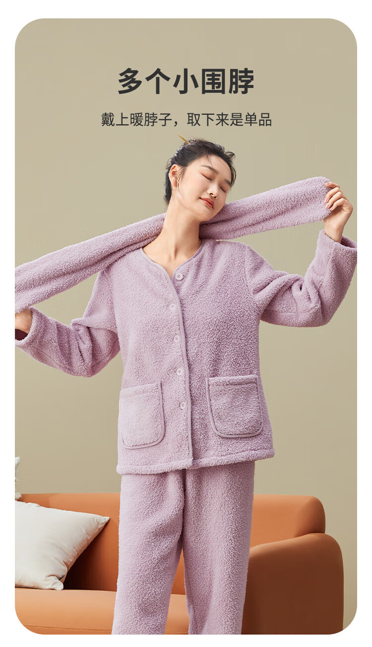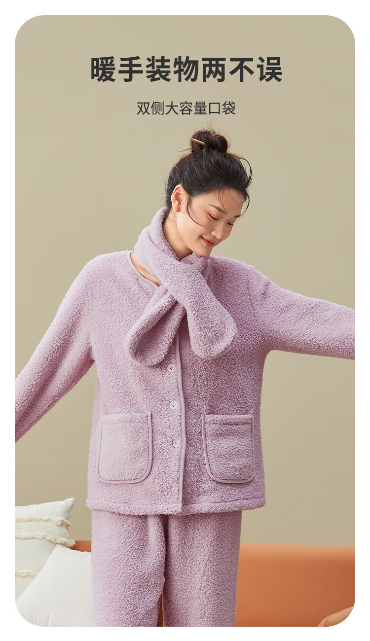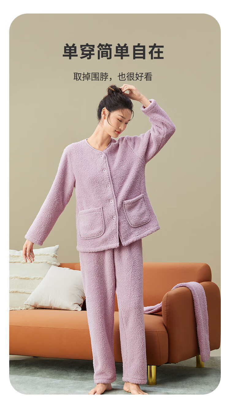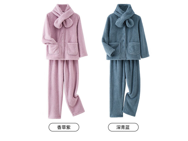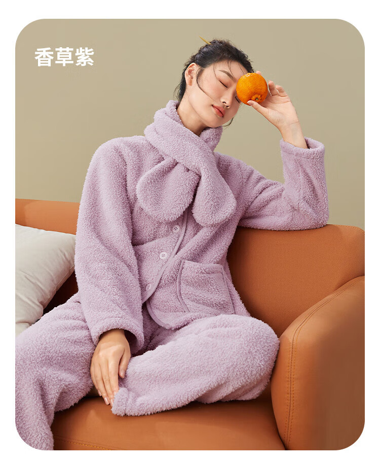 都市丽人 睡衣女加绒加厚带围脖保暖多层绒夹棉甜美可爱家居服套装2H2109 香草紫-2H2109 2XL