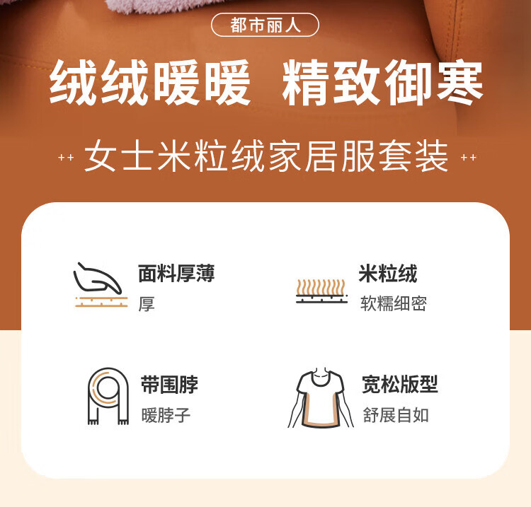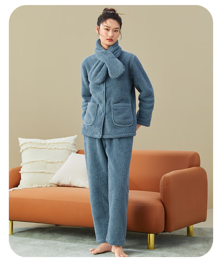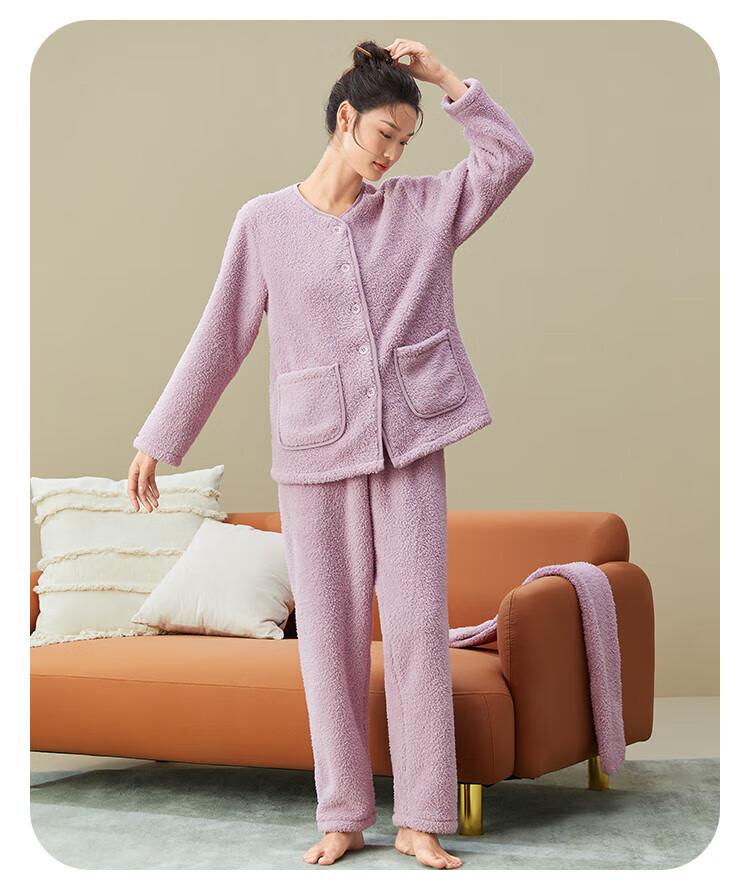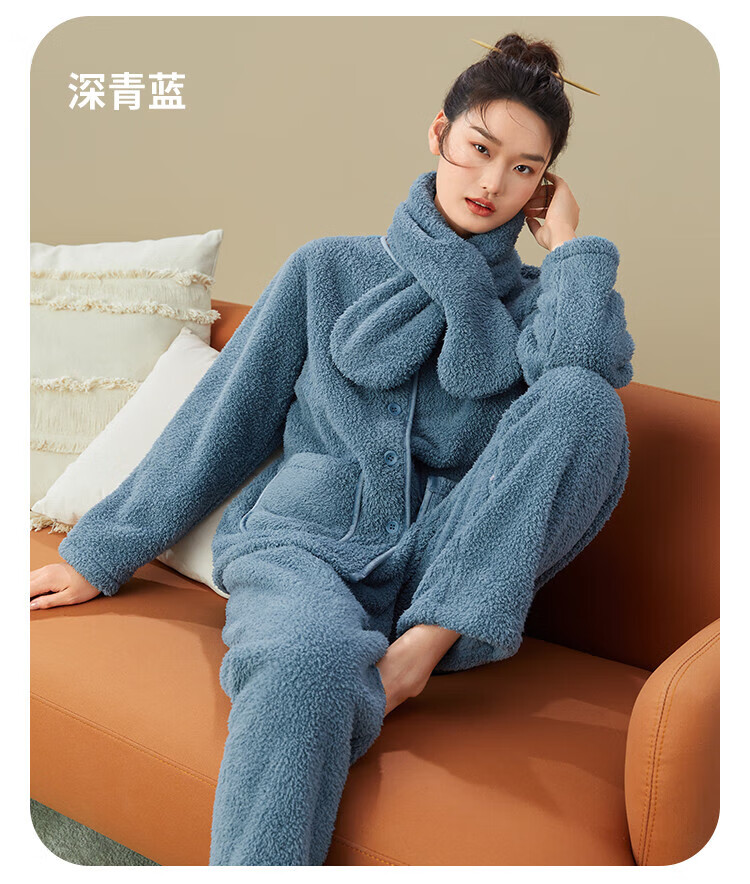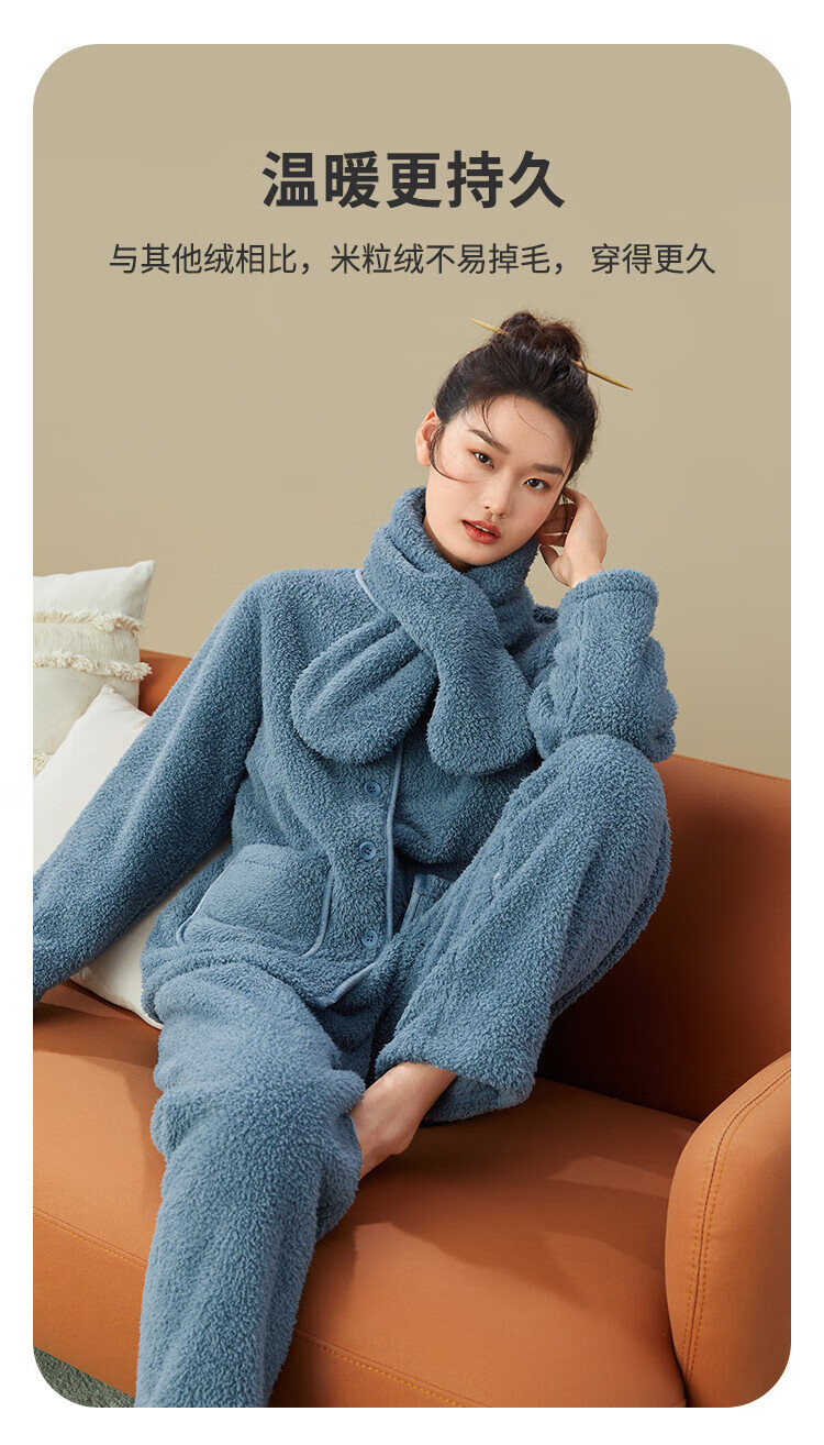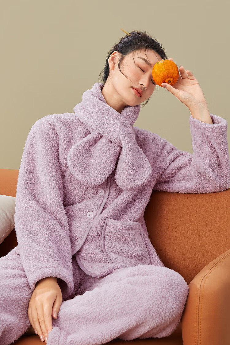 都市丽人 睡衣女加绒加厚带围脖保暖多层绒夹棉甜美可爱家居服套装2H2109 香草紫-2H2109 2XL