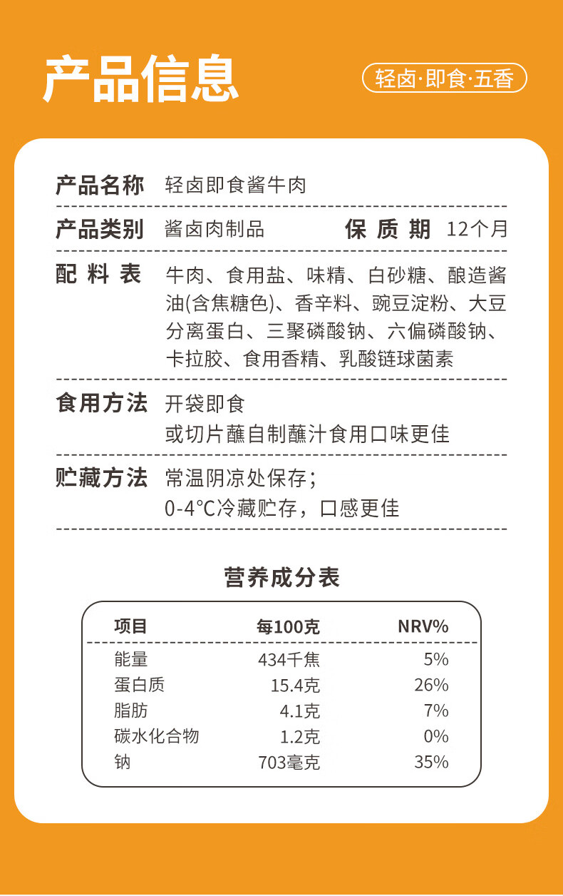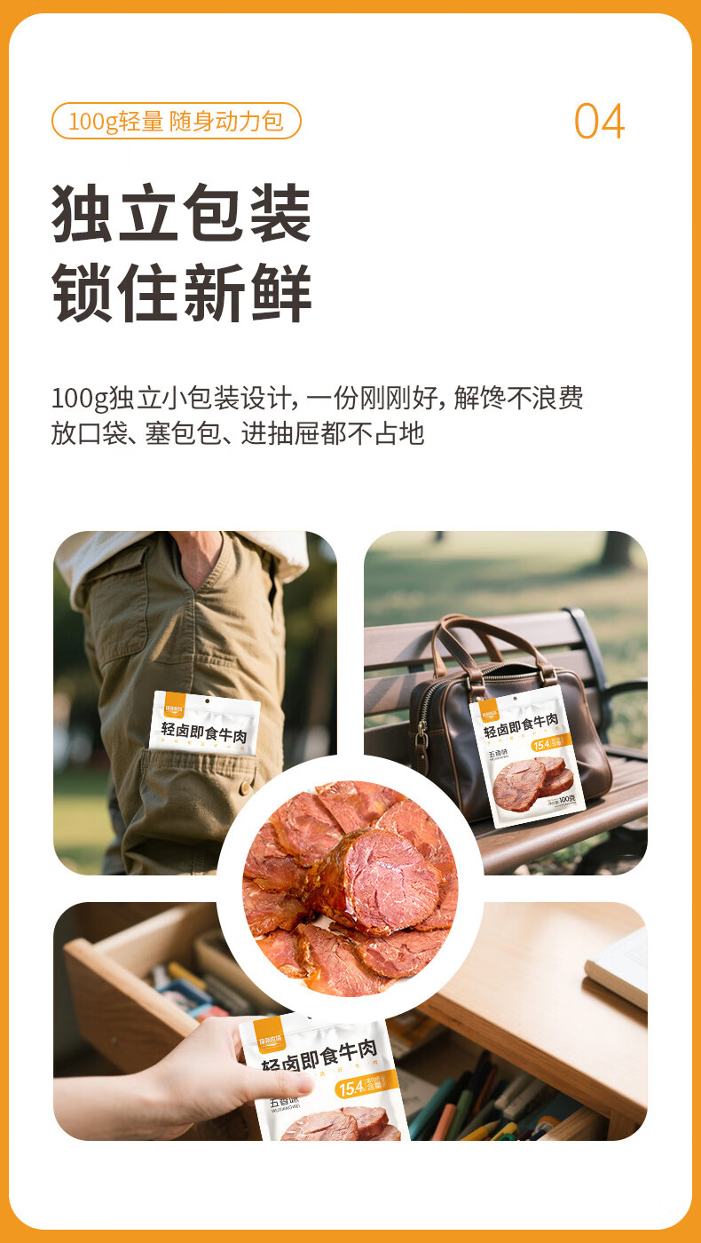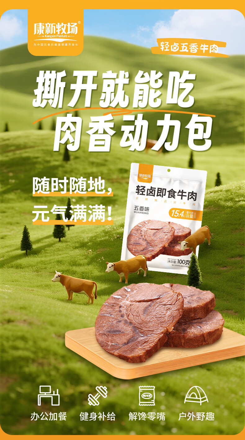 康新牧场草原特产酱牛肉五香味轻卤牛肉100g*7袋家庭牛肉熟食开袋即食 五香酱牛肉100g*7包(净重) 五香味
