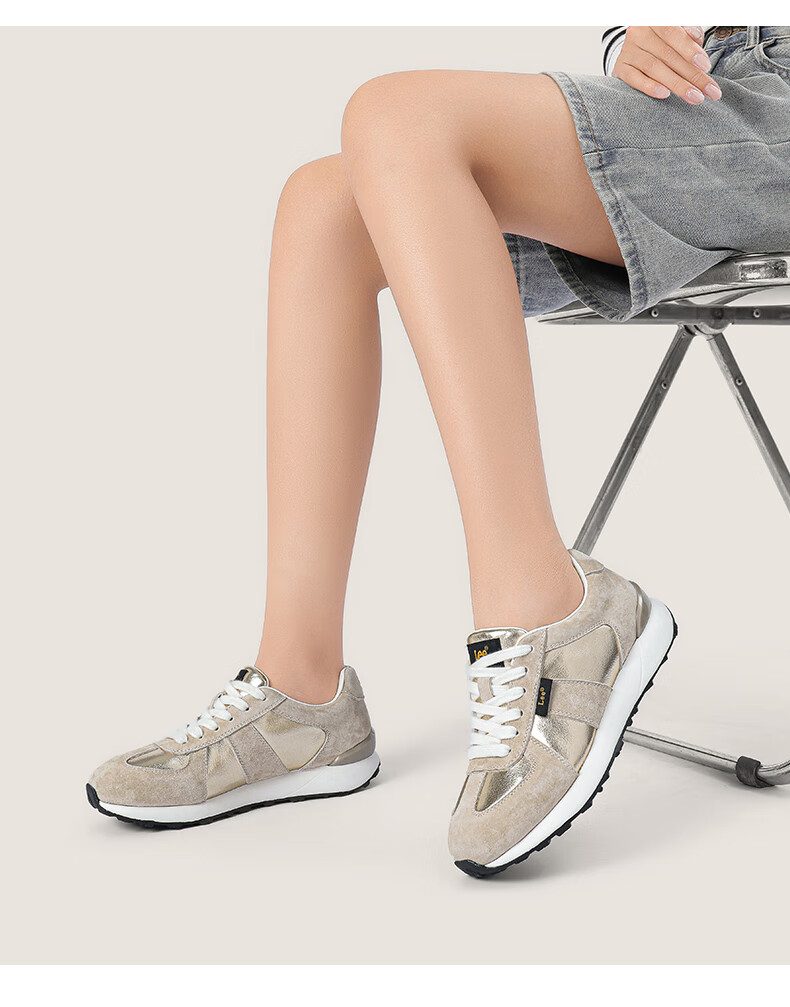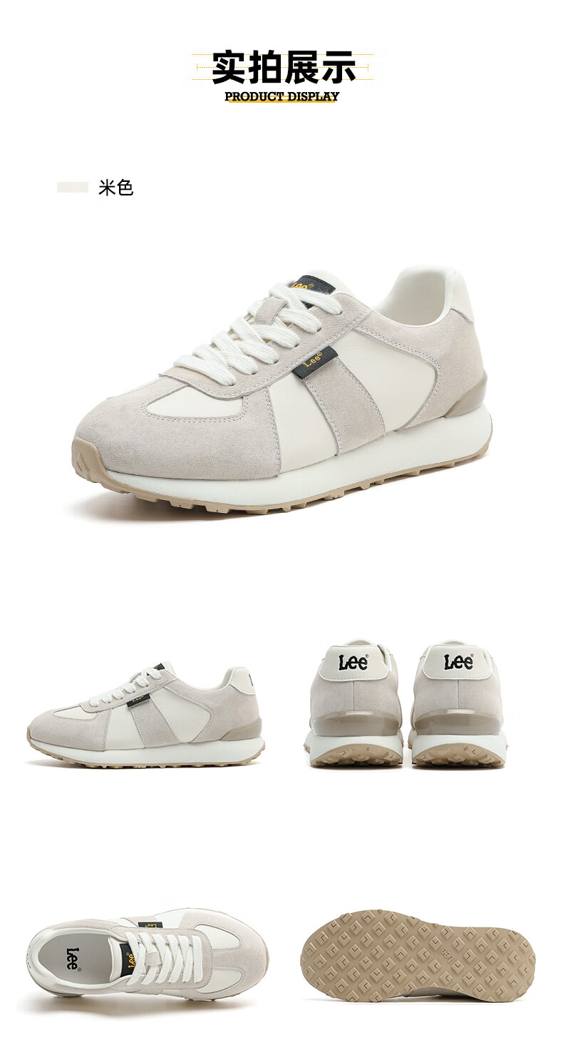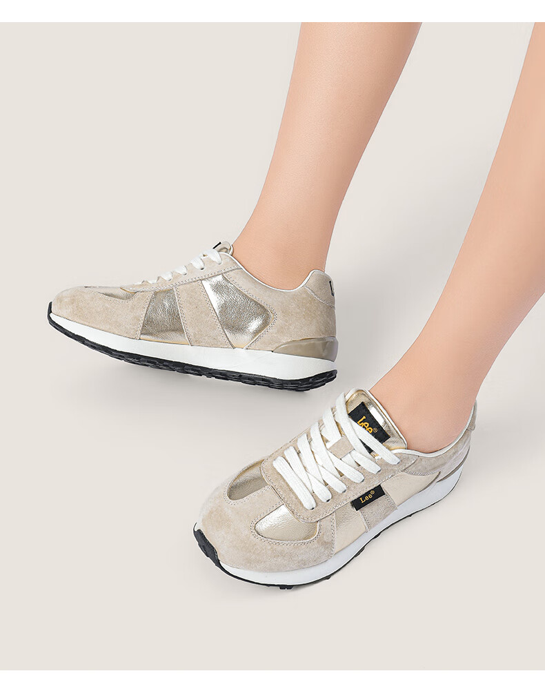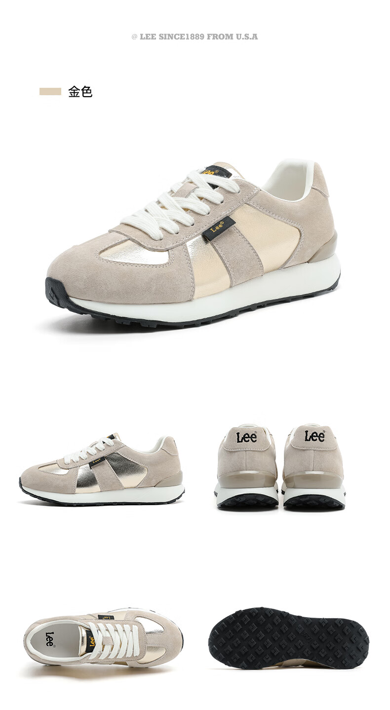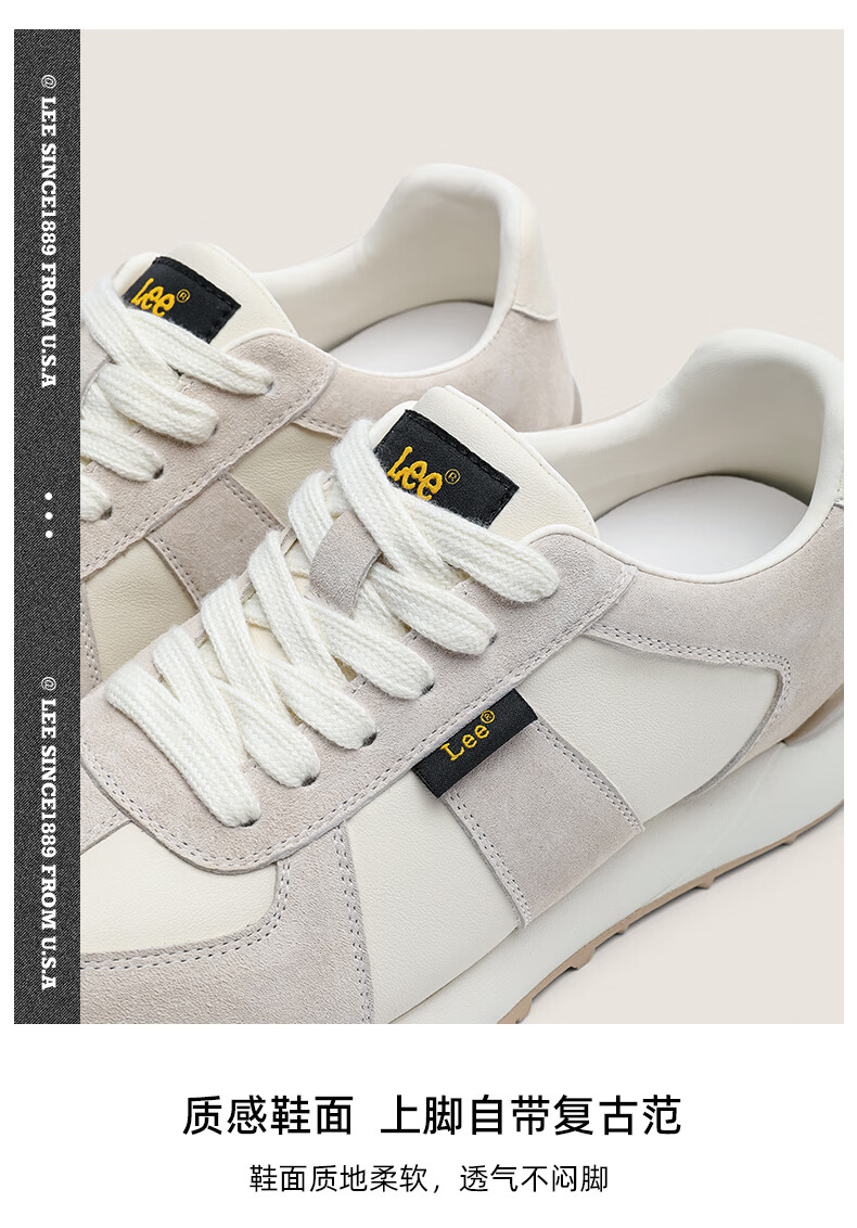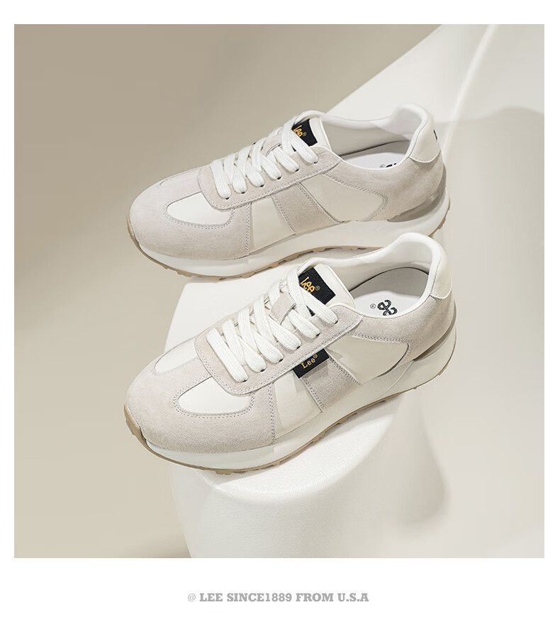 Lee女鞋新款撞色休闲鞋百搭舒适德训鞋户外运动鞋软底轻便平底阿甘鞋 米色 37