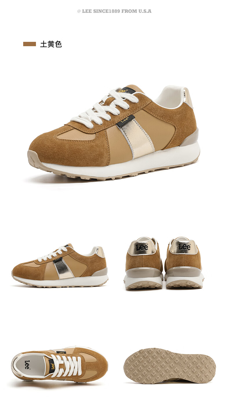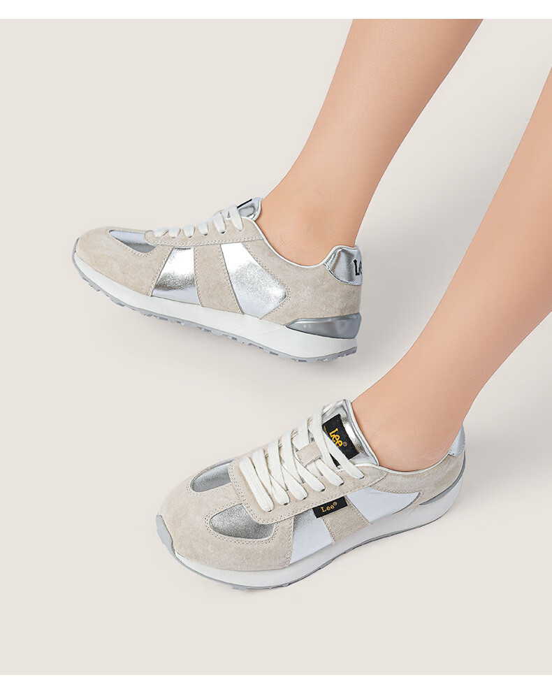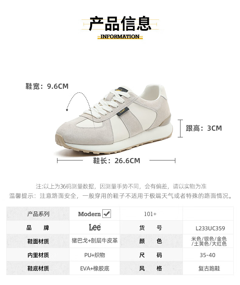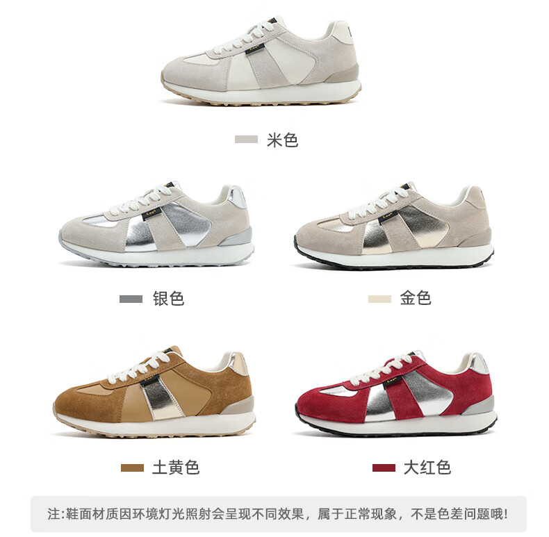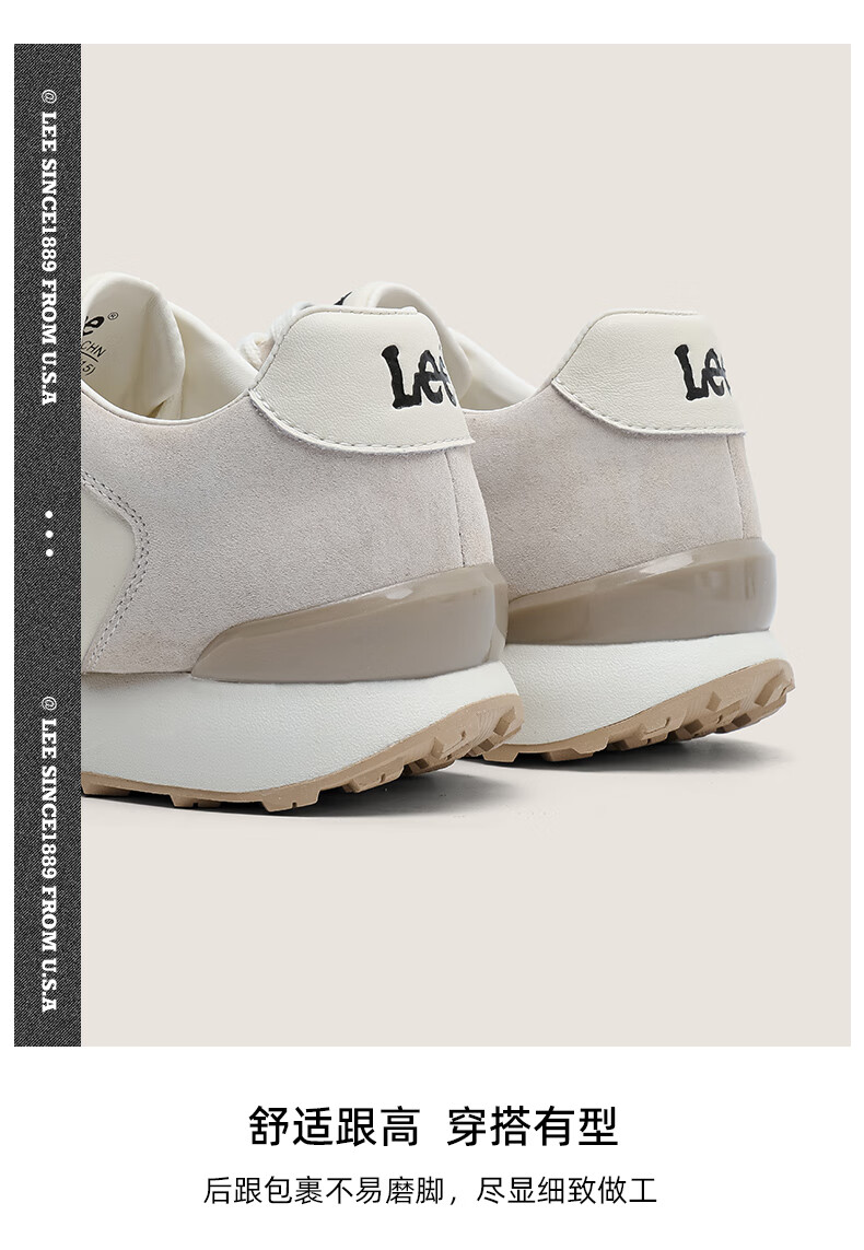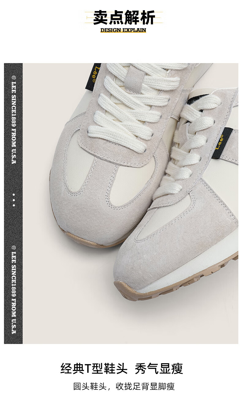 Lee女鞋新款撞色休闲鞋百搭舒适德训鞋户外运动鞋软底轻便平底阿甘鞋 米色 37