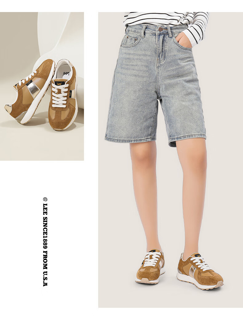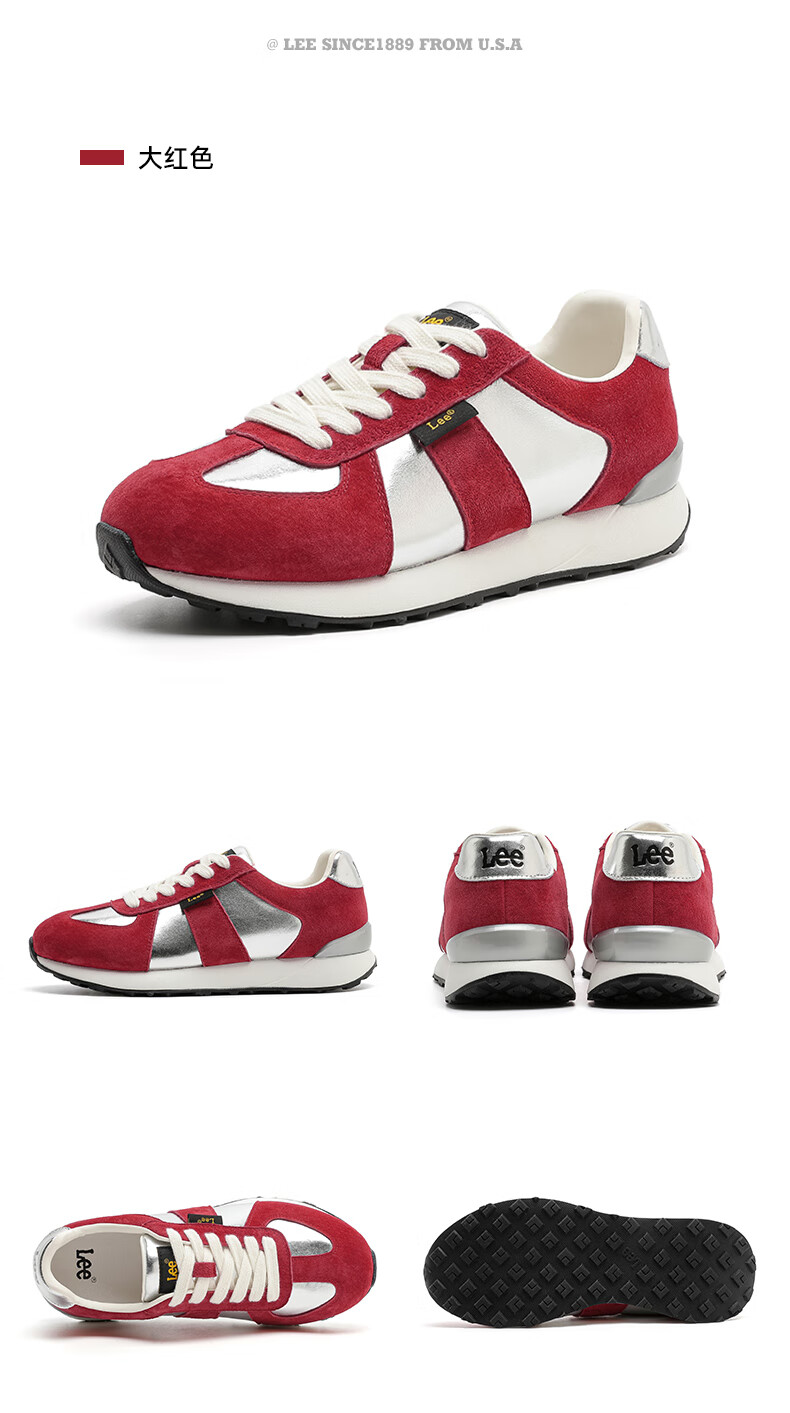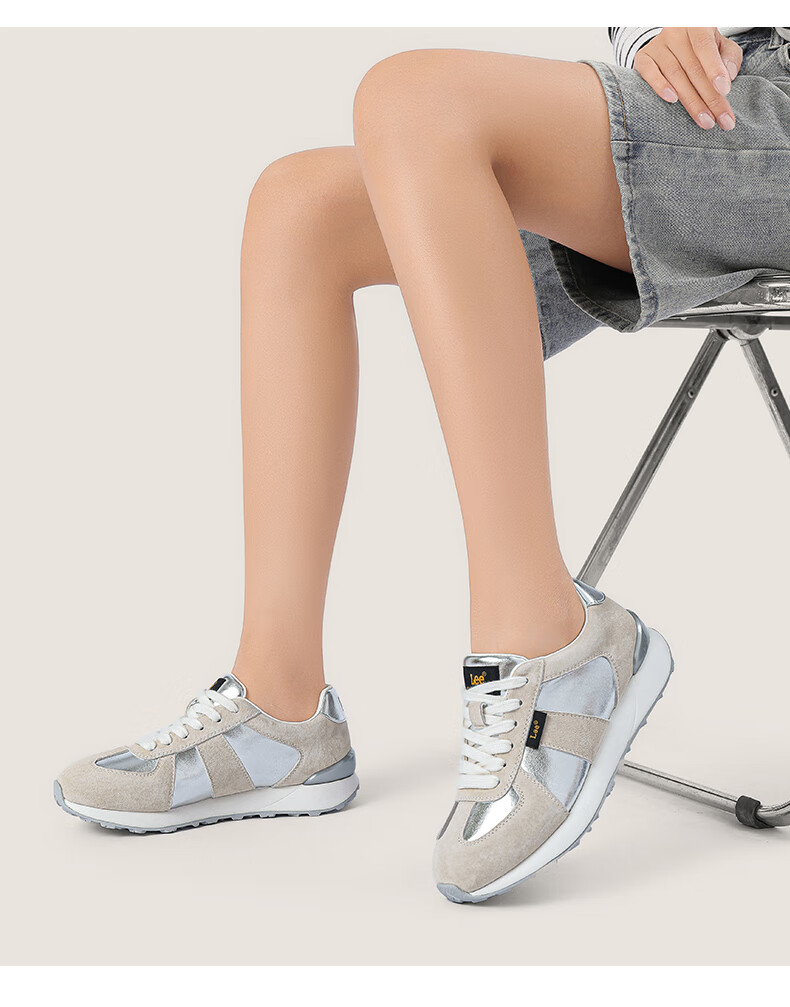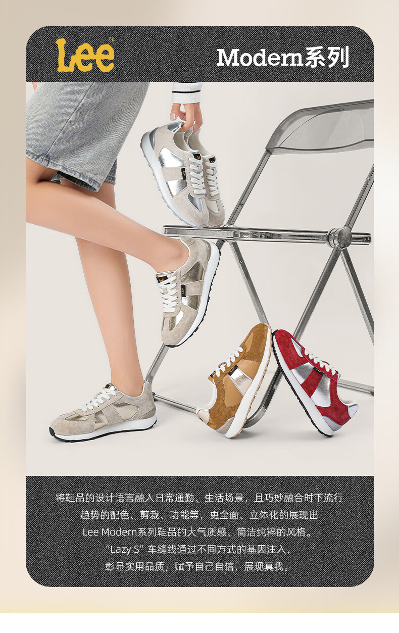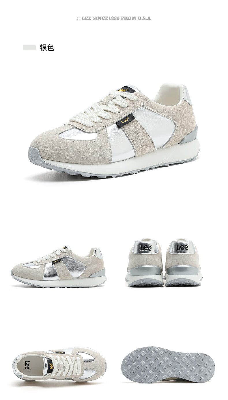 Lee女鞋新款撞色休闲鞋百搭舒适德训鞋户外运动鞋软底轻便平底阿甘鞋 米色 37