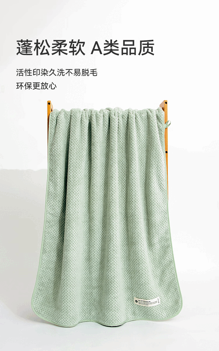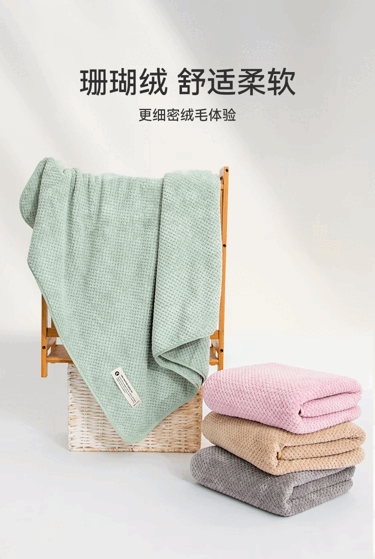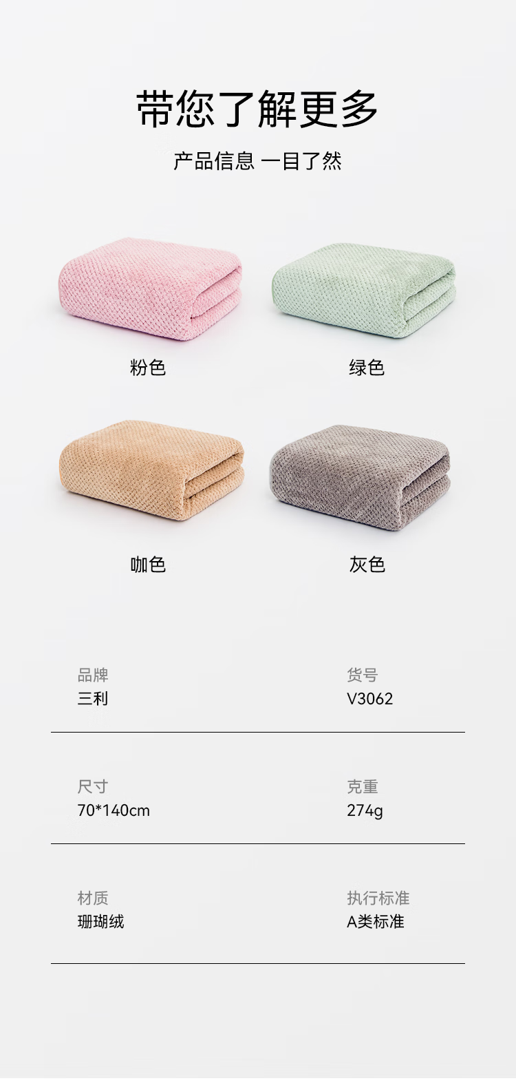 三利浴巾 A类珊瑚绒柔软吸水菠萝格浴巾干裹巾 70*140cm 灰色