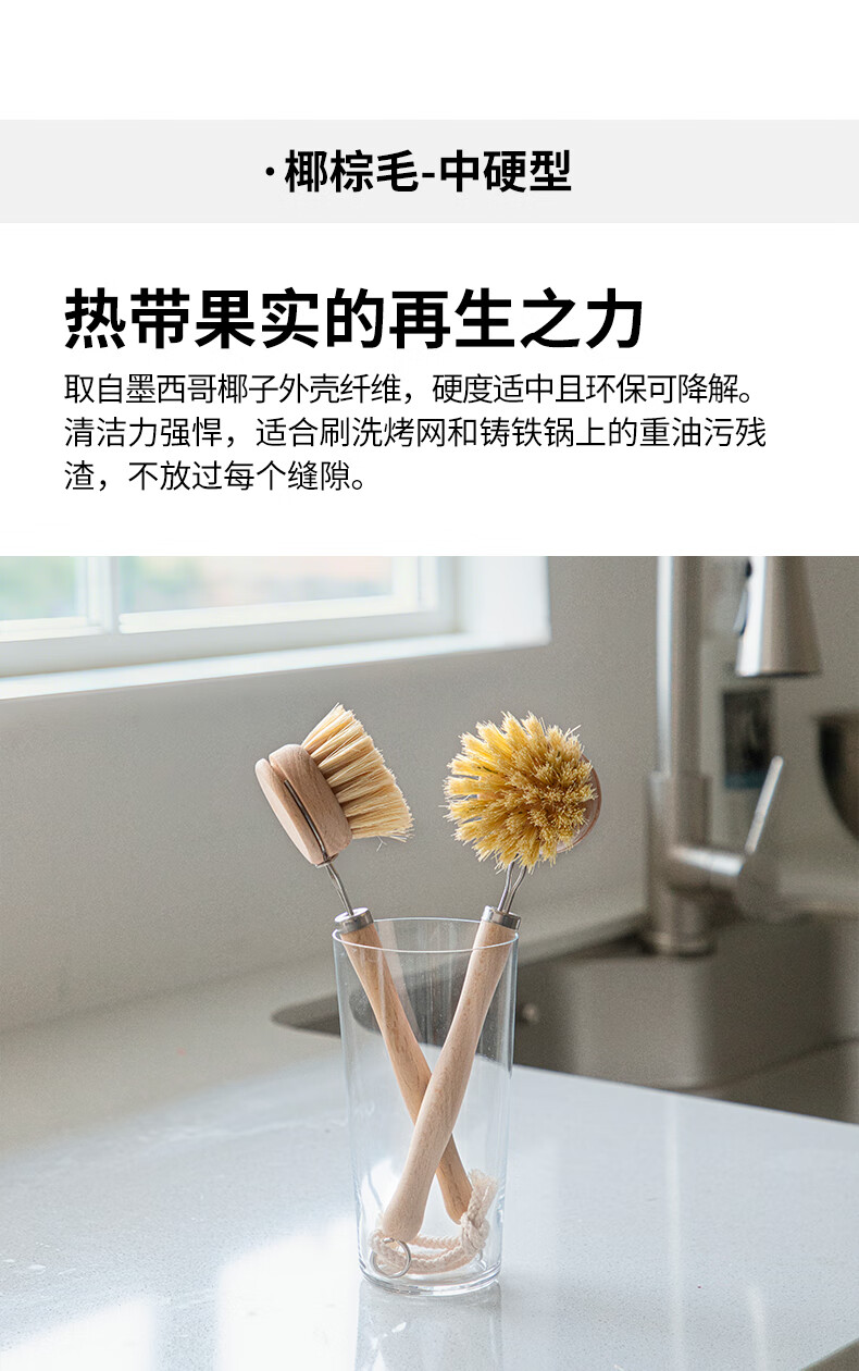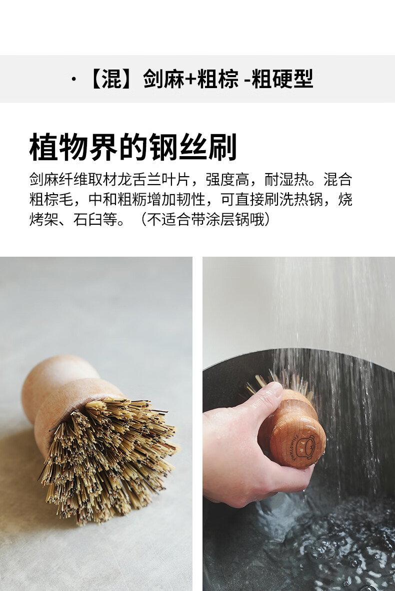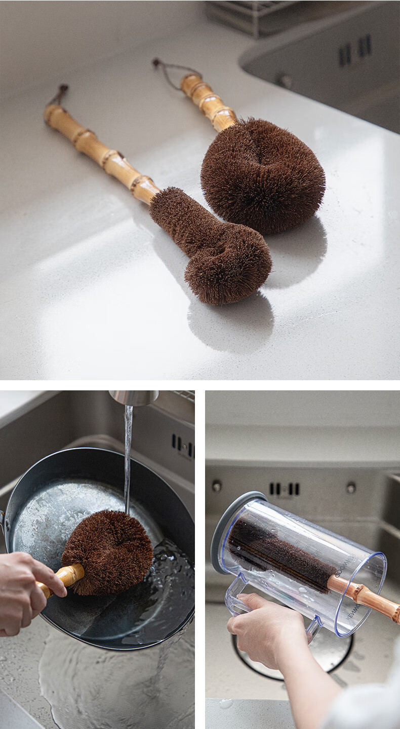 霜山清洁刷厨房洗锅刷碗去油污家用杯刷果蔬刷多功能清洁工具系列 椰棕锅刷-长23.5cm