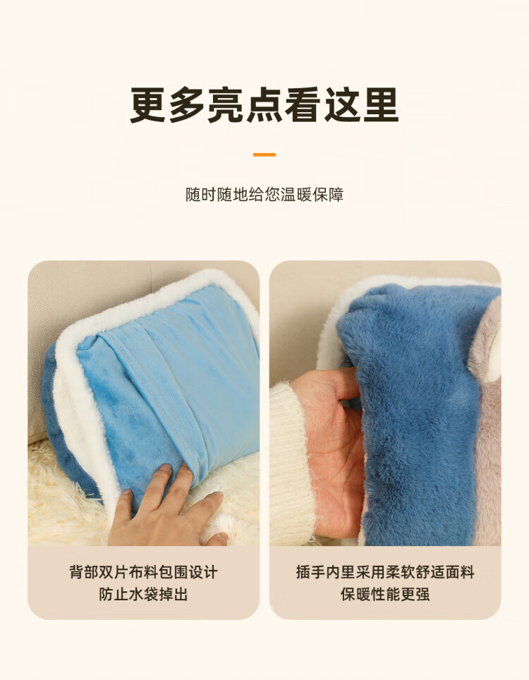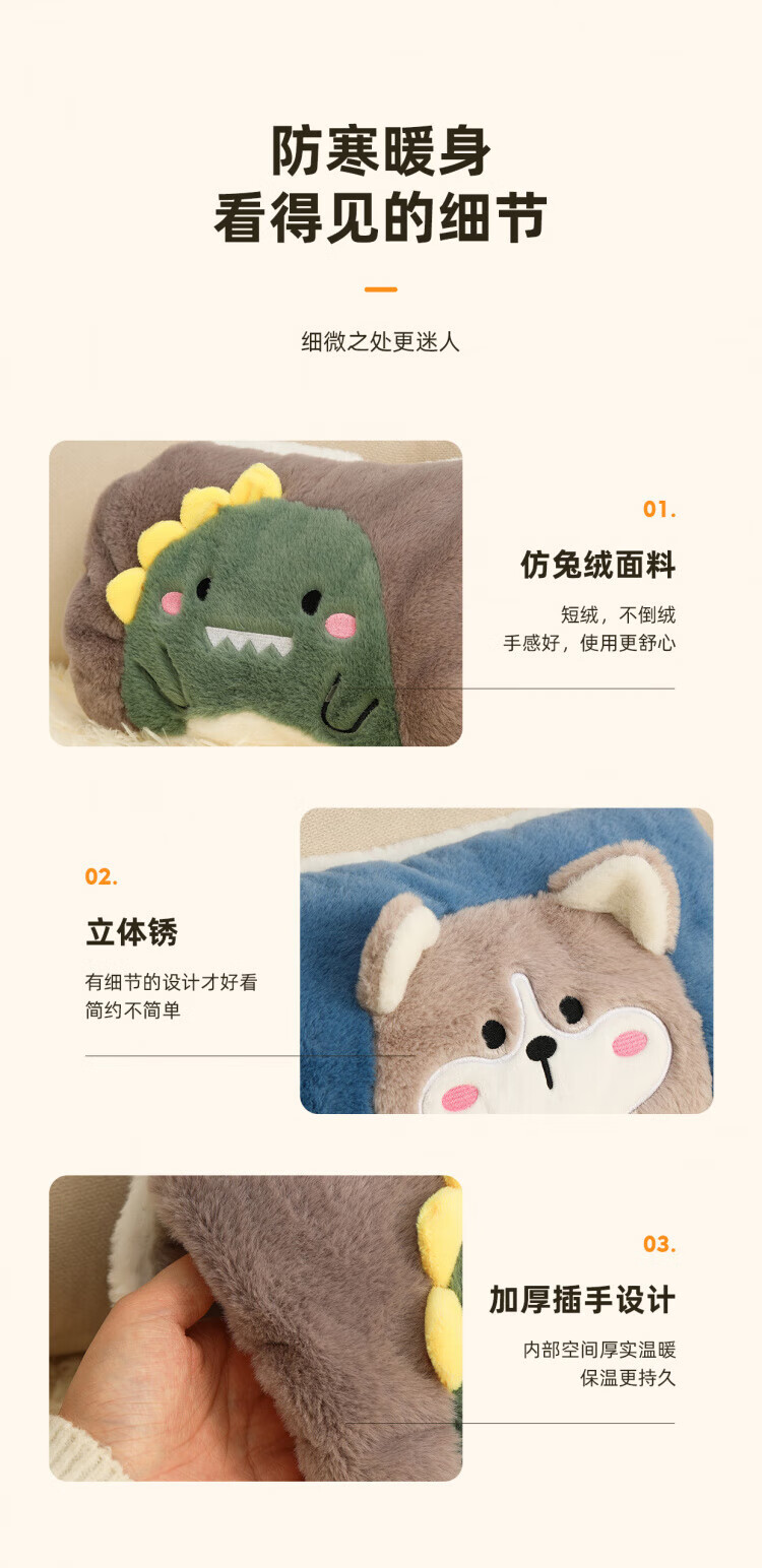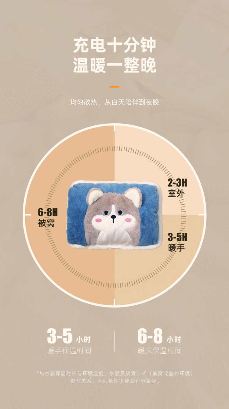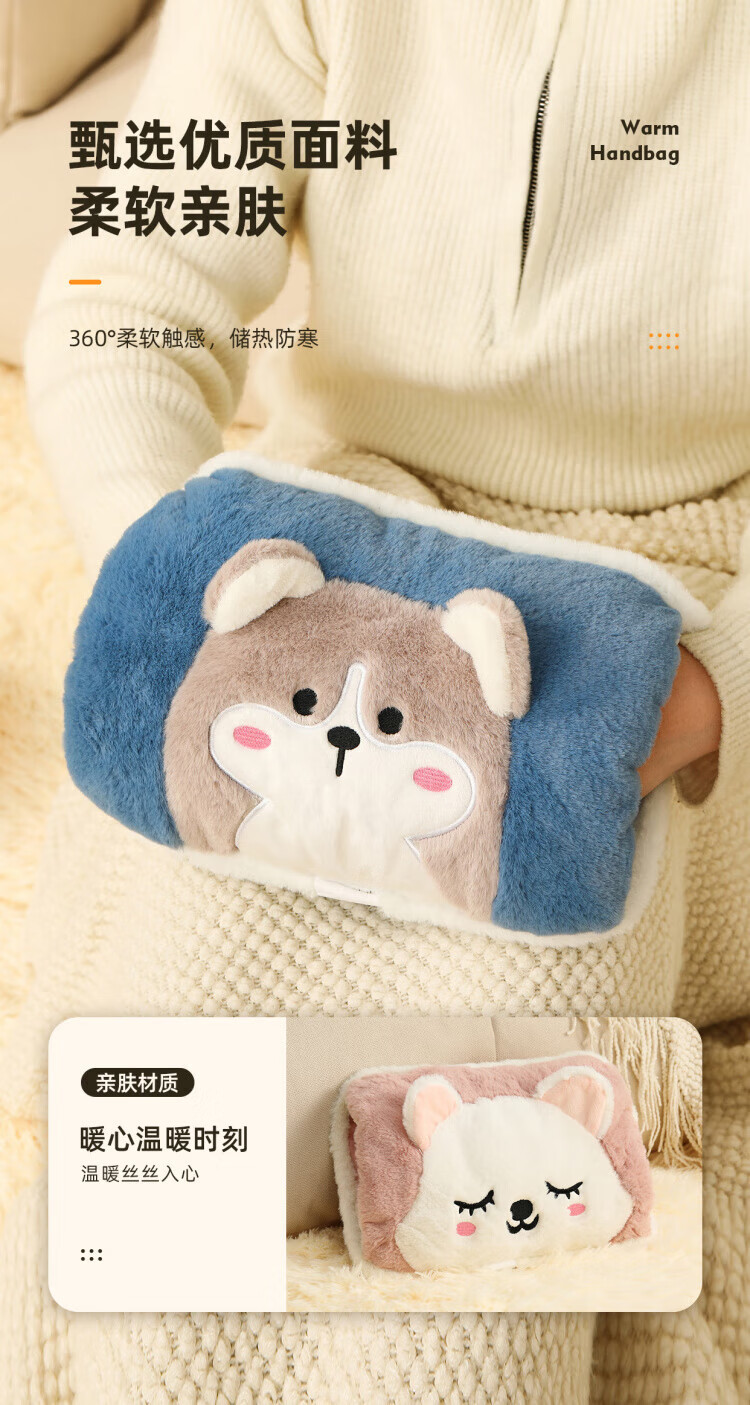 WCZ德国热水袋充电式暖宝宝电暖手暖水袋女生用毛绒可爱暖被窝暖 仓鼠-可拆洗仿兔绒 (双插手)-智能防爆-真国标