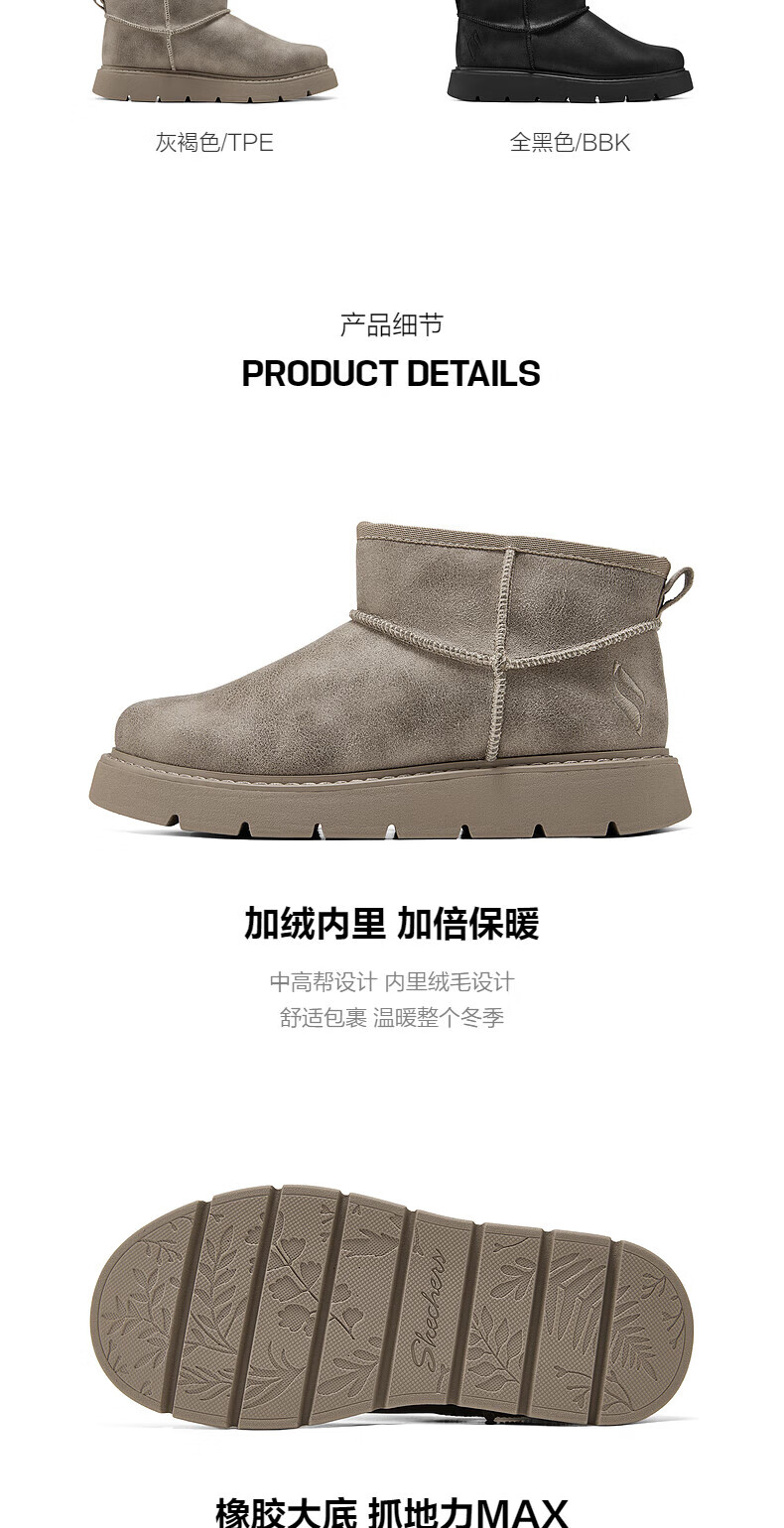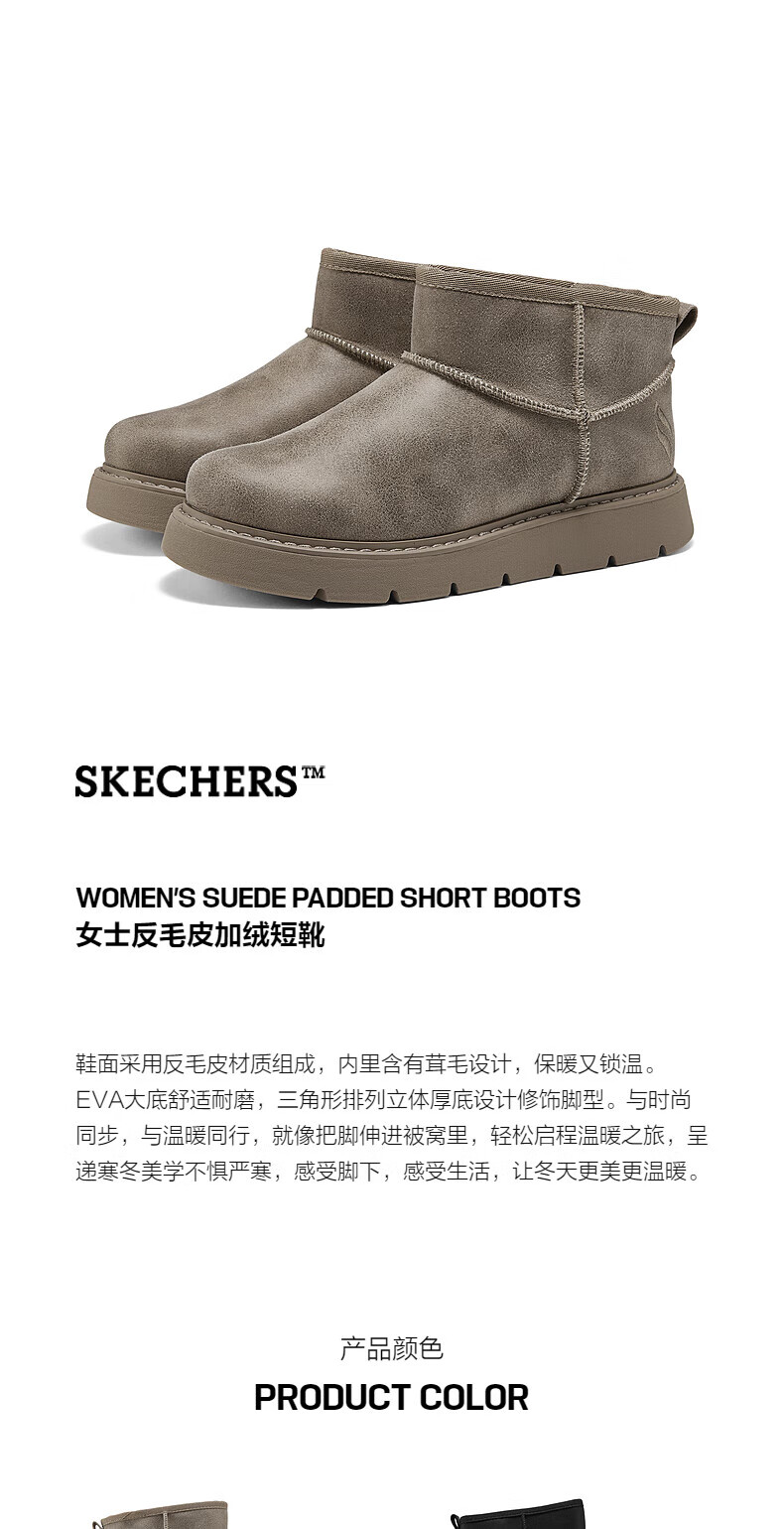 斯凯奇(Skechers)女士反毛皮加绒短靴169018 灰褐色/TPE 39.5
