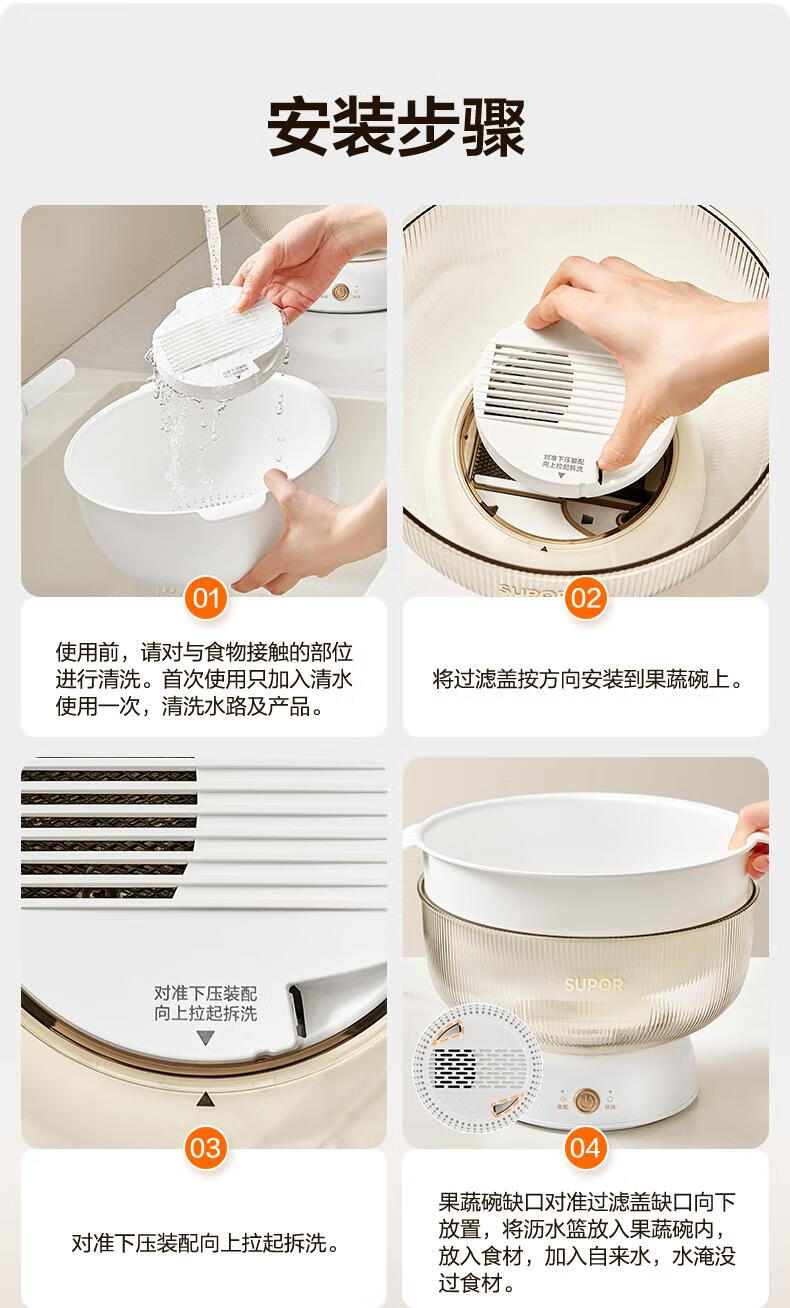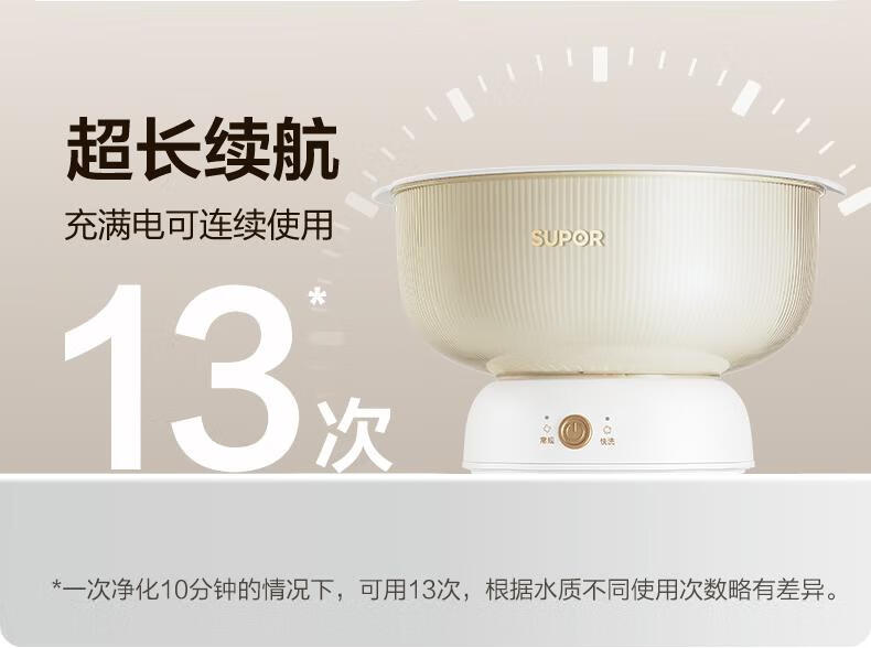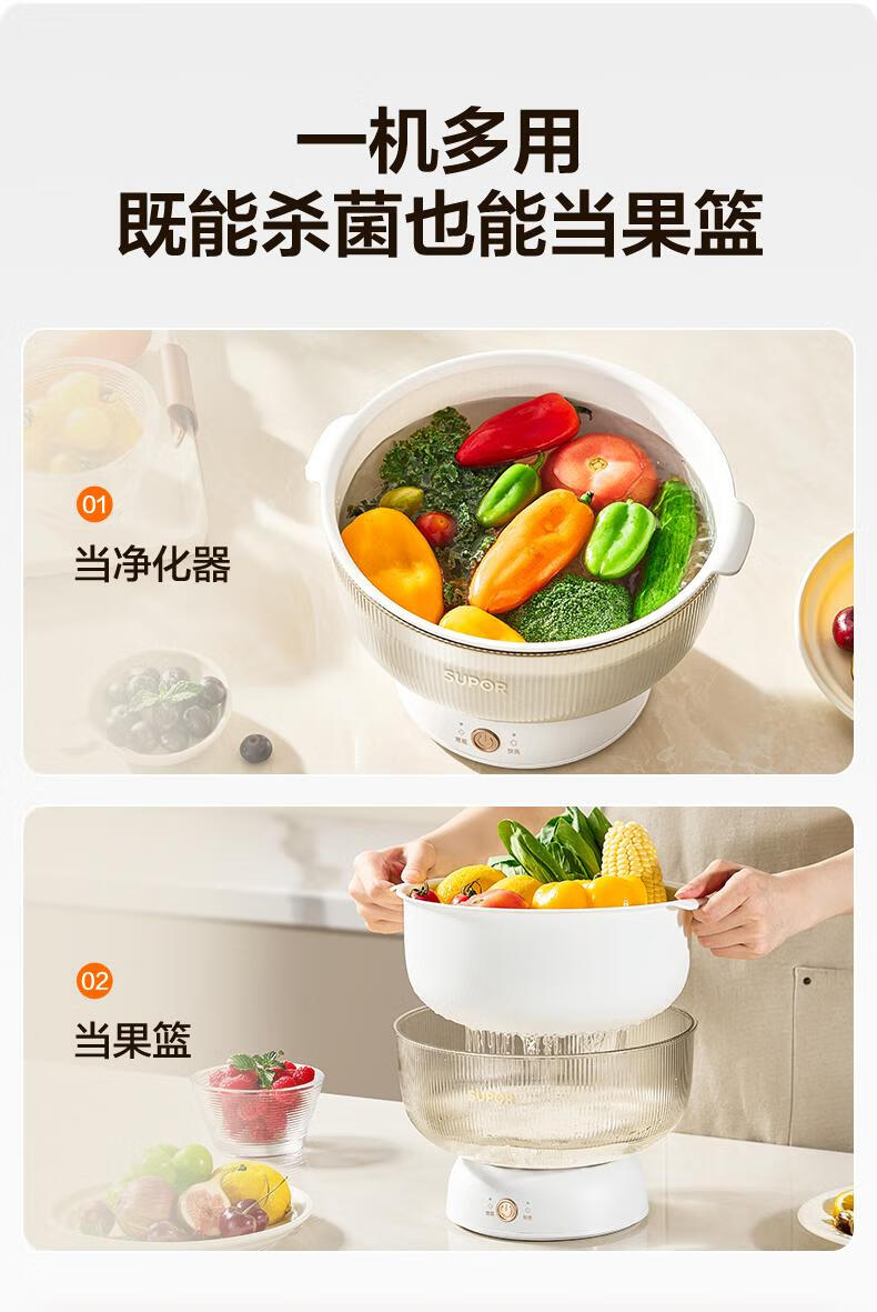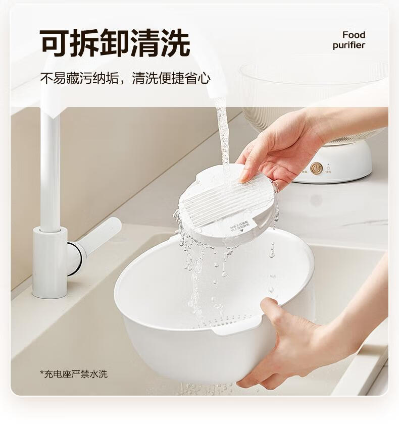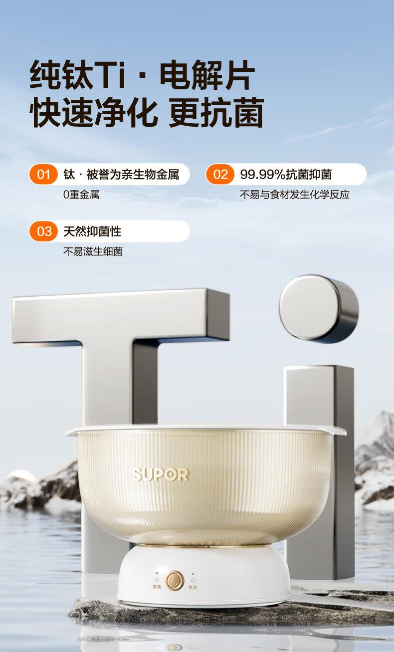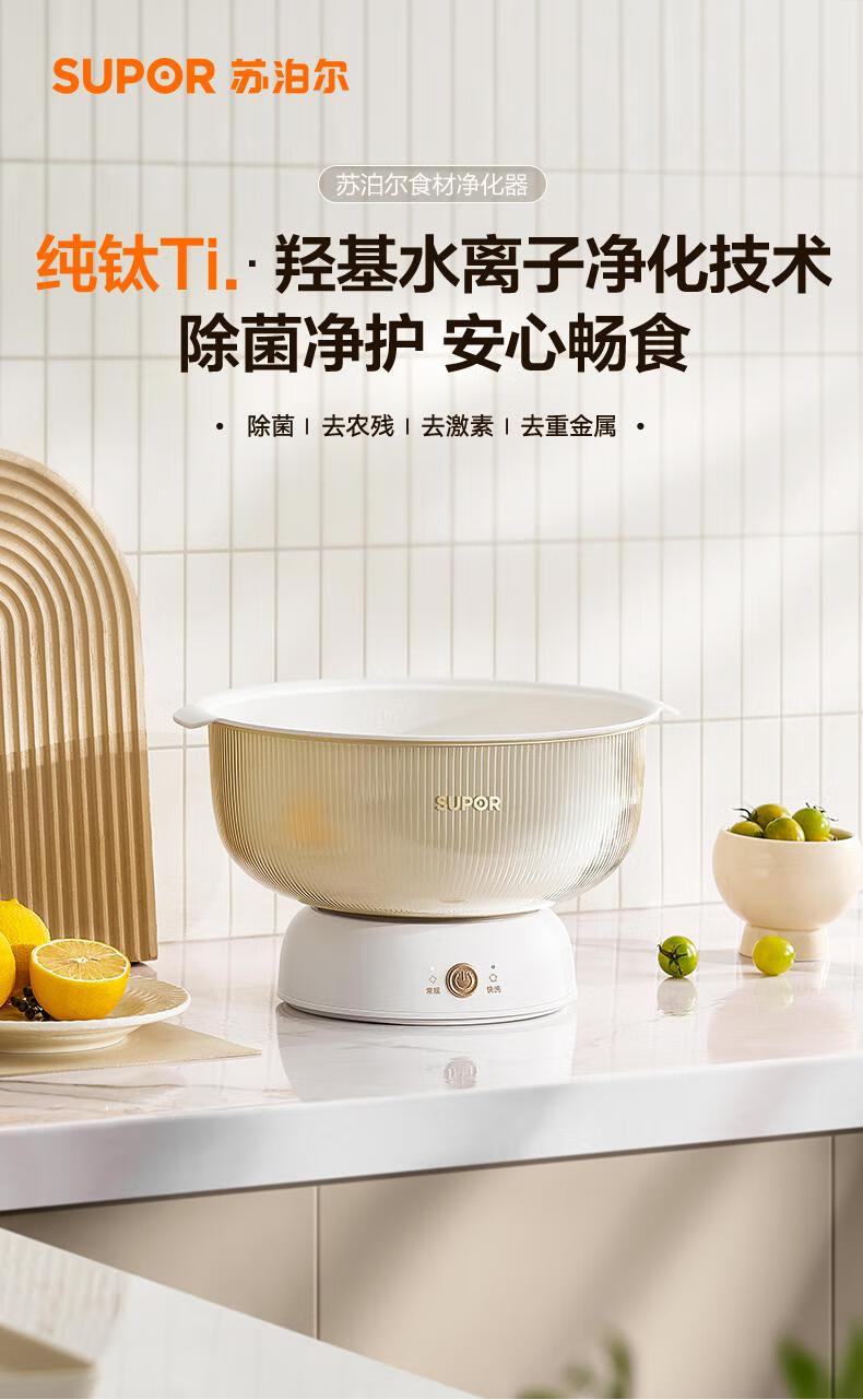 苏泊尔食材净化篮 肉类果蔬多功能清洗机 杀毒消菌降解重金属小型家用食材净化机 洗菜神器-A GS30 纯钛电解片【珍珠白】