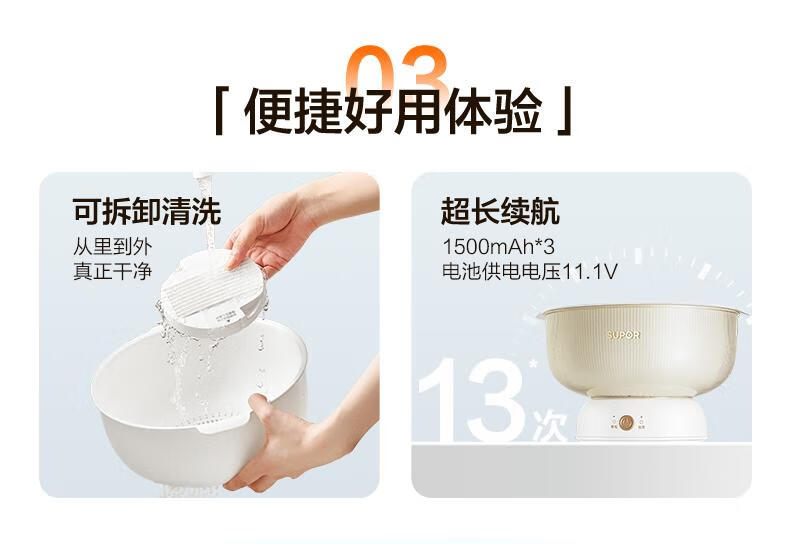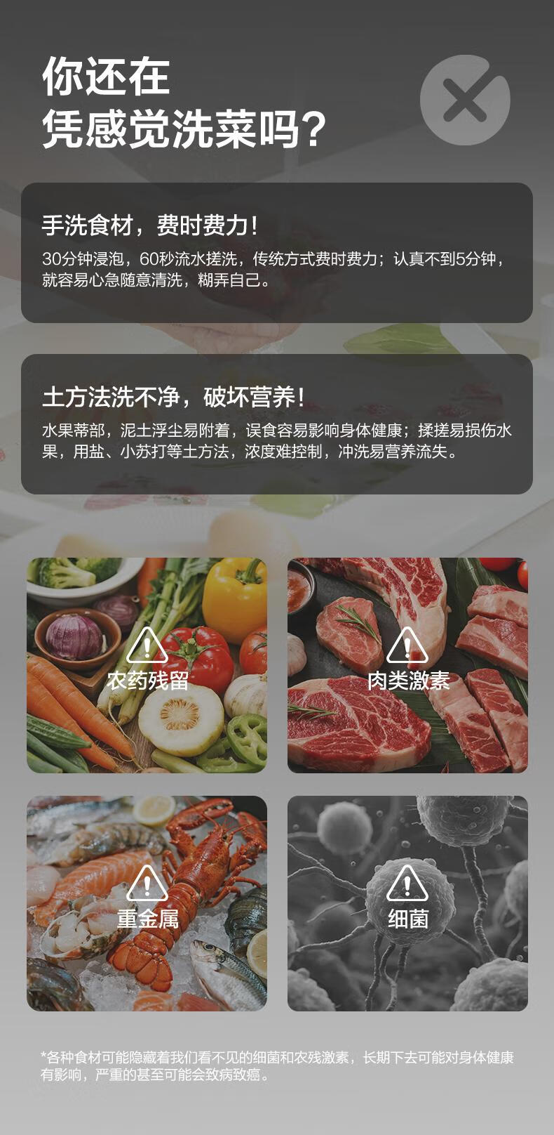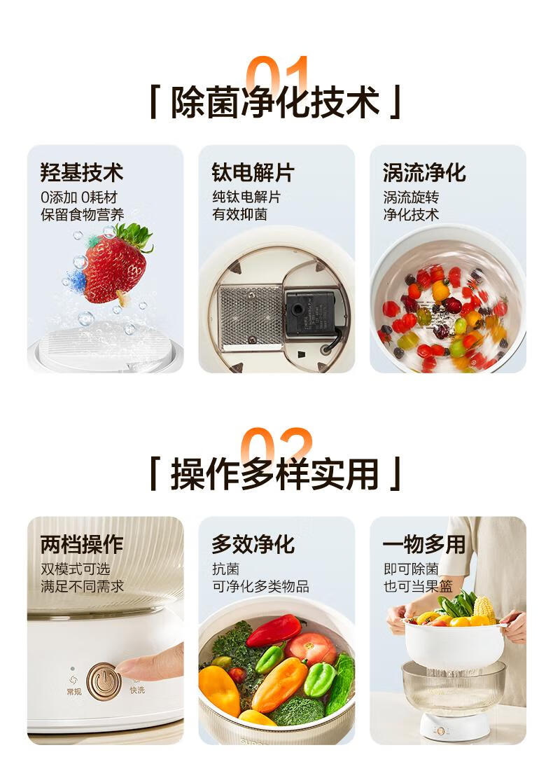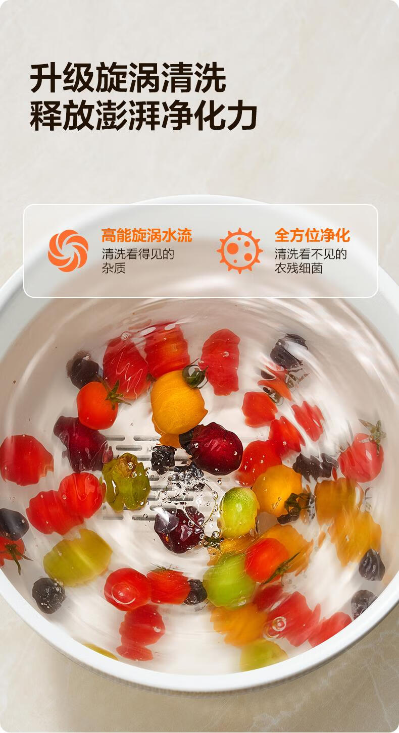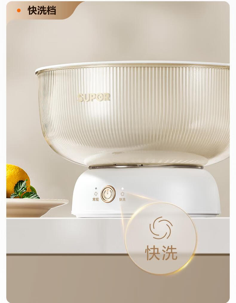 苏泊尔食材净化篮 肉类果蔬多功能清洗机 杀毒消菌降解重金属小型家用食材净化机 洗菜神器-A GS30 纯钛电解片【珍珠白】