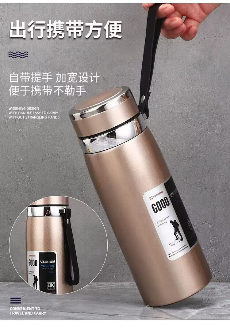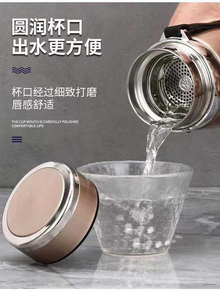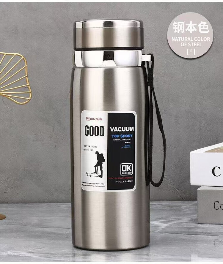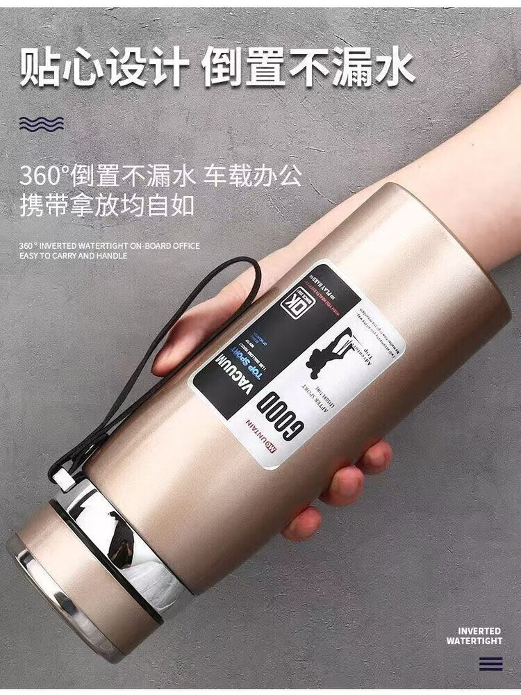 泰禧阁316不锈钢大容量保温杯男女商务水杯子车载便携户外泡茶正品水壶 真空杯-银色-800mL