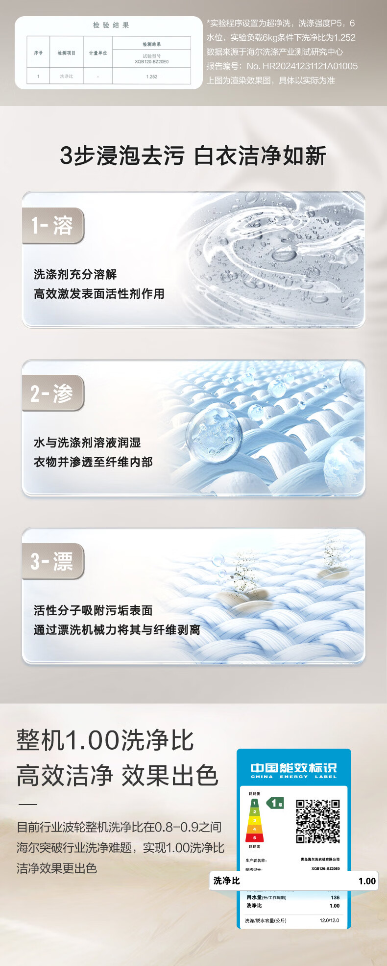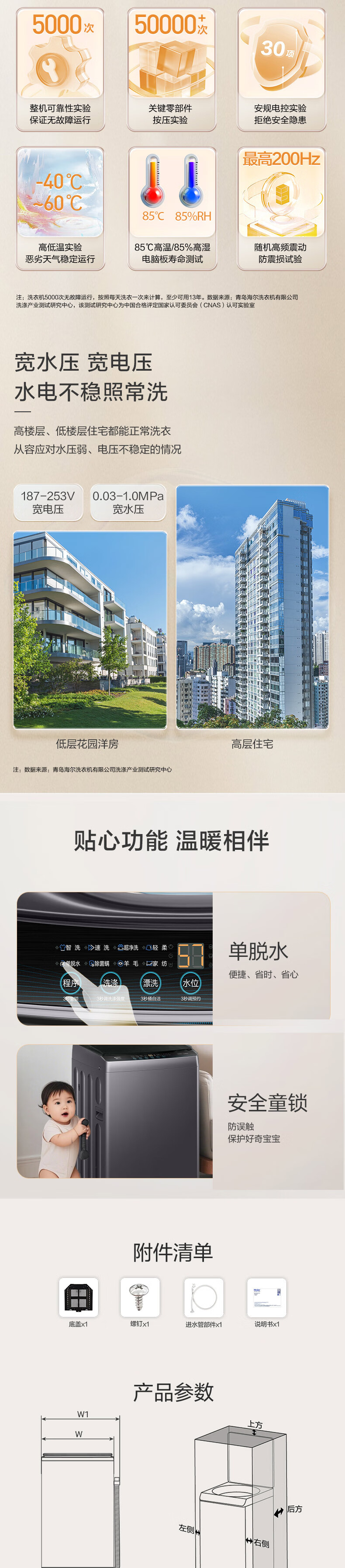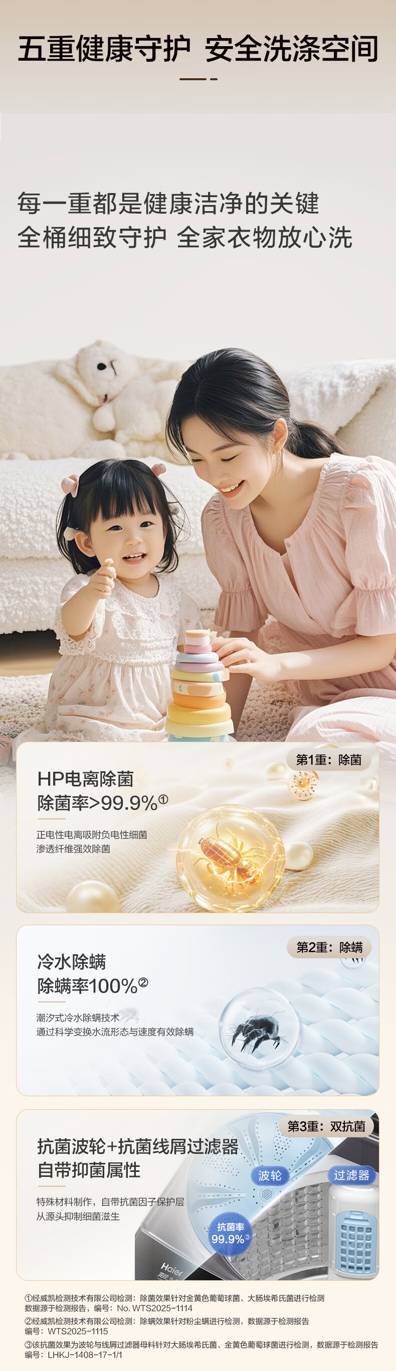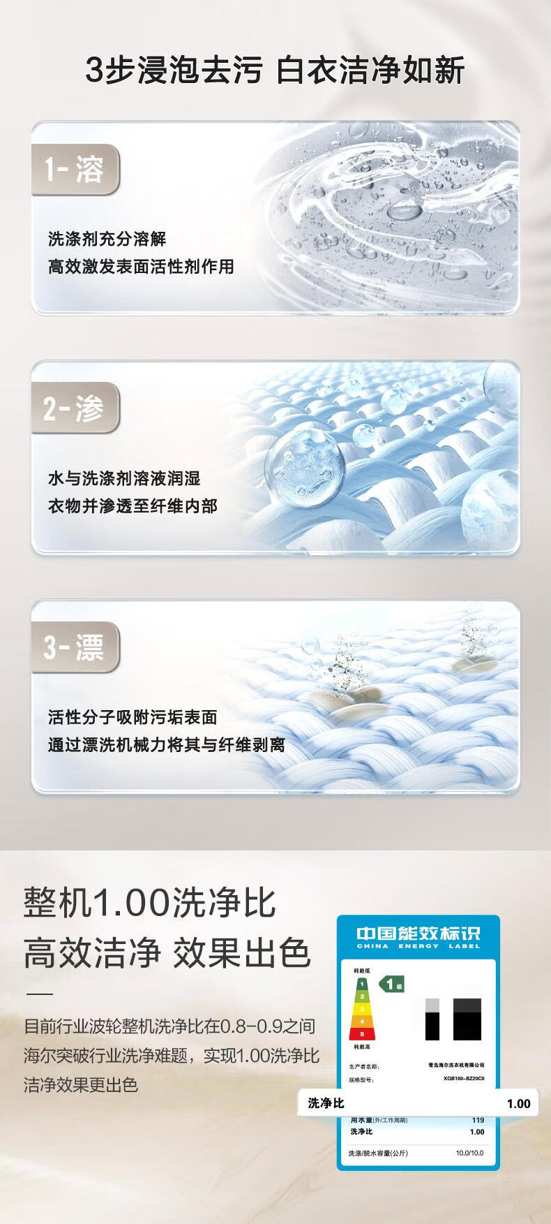 海尔(Haier)【25年新品】波轮洗衣机全自动家用大容量上翻盖一级能效懒人直驱变频神童除菌螨 国家补贴20% 10公斤+BZ20E0