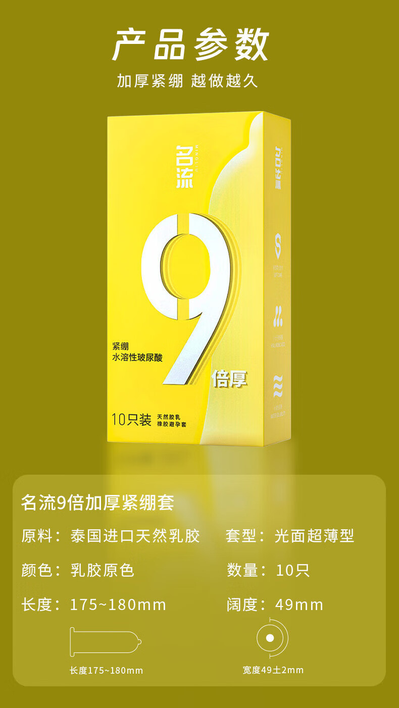 名流套持久 加厚小号49mm超厚增厚延时持久安全套紧致紧绷套套 久猛9倍加厚(小号49mm) 10只