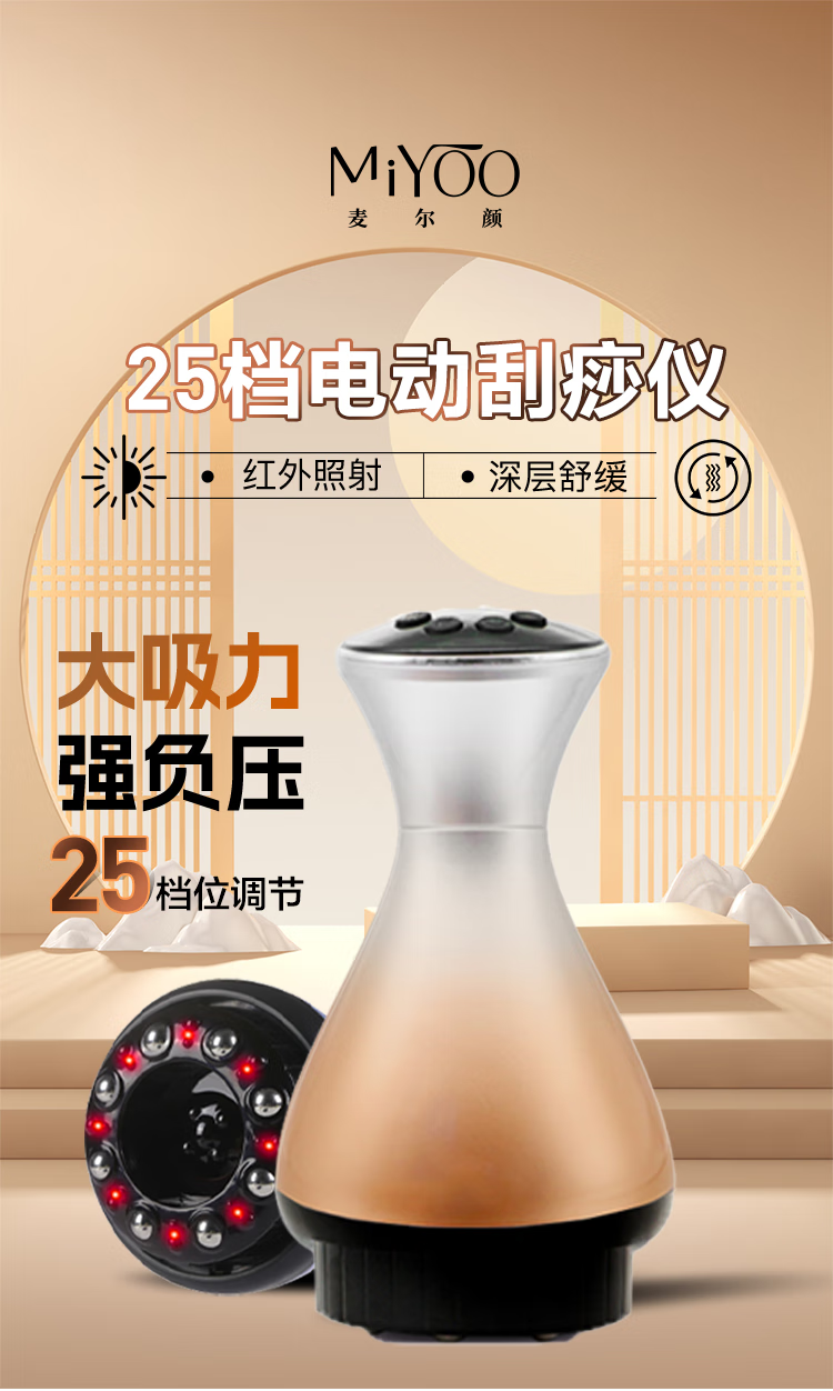 麦尔颜【新品上市】电动刮痧仪器拔罐走罐热敷疏通腹部全身按摩器家用 刮痧拔罐仪【一套】