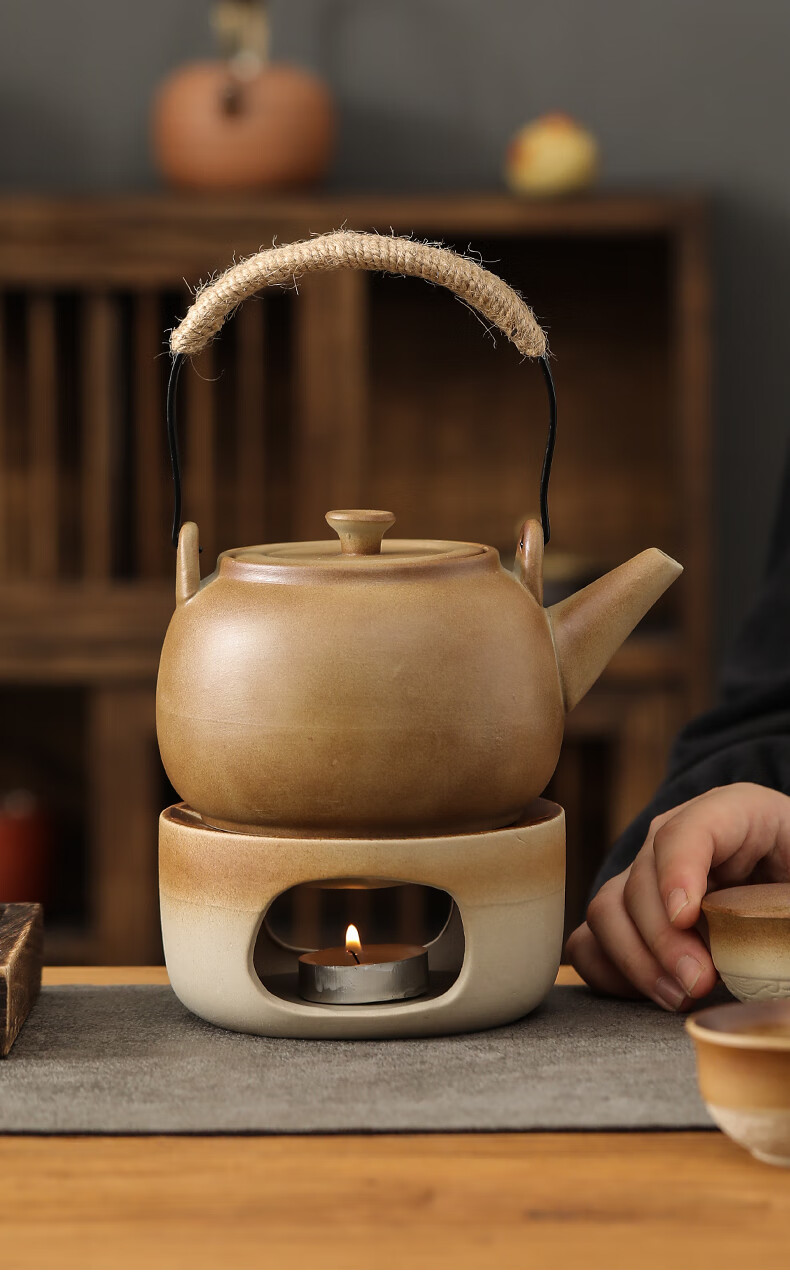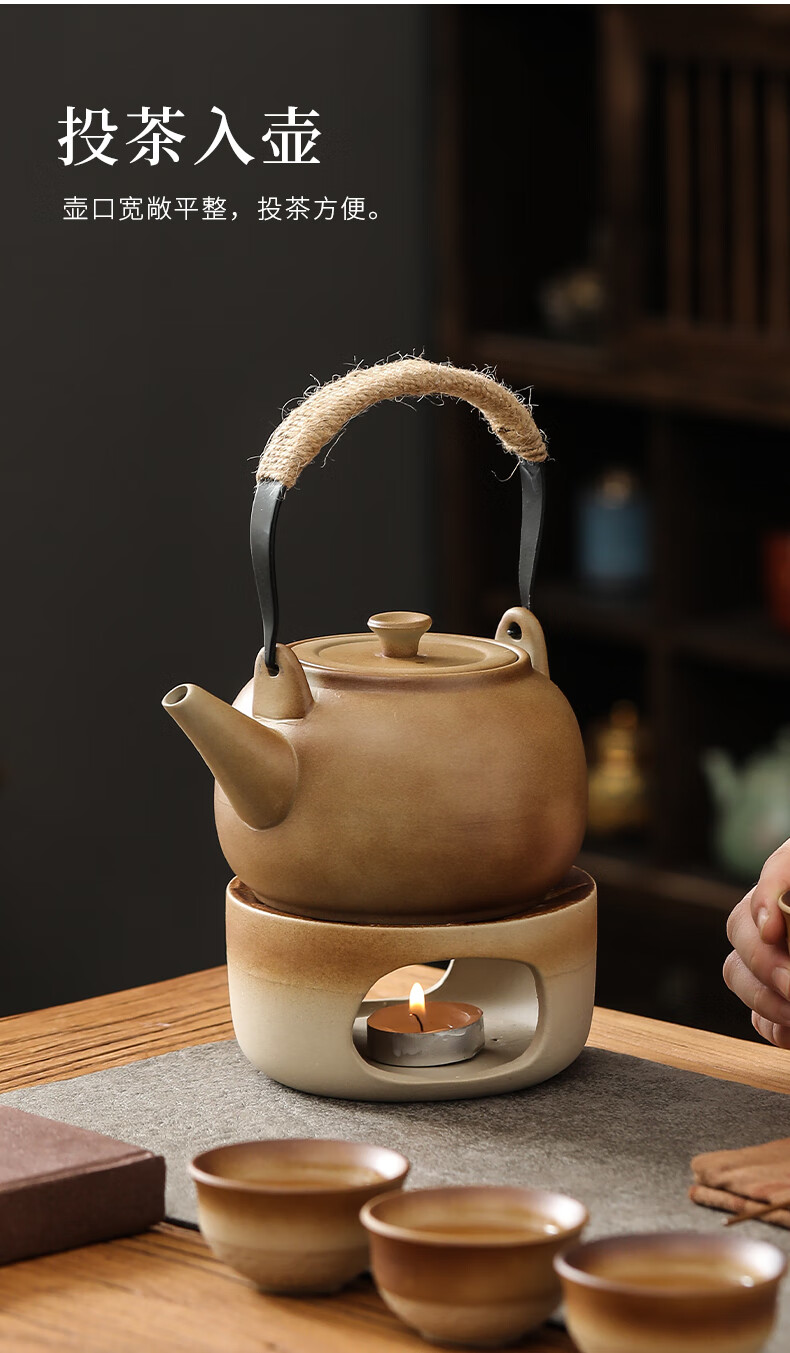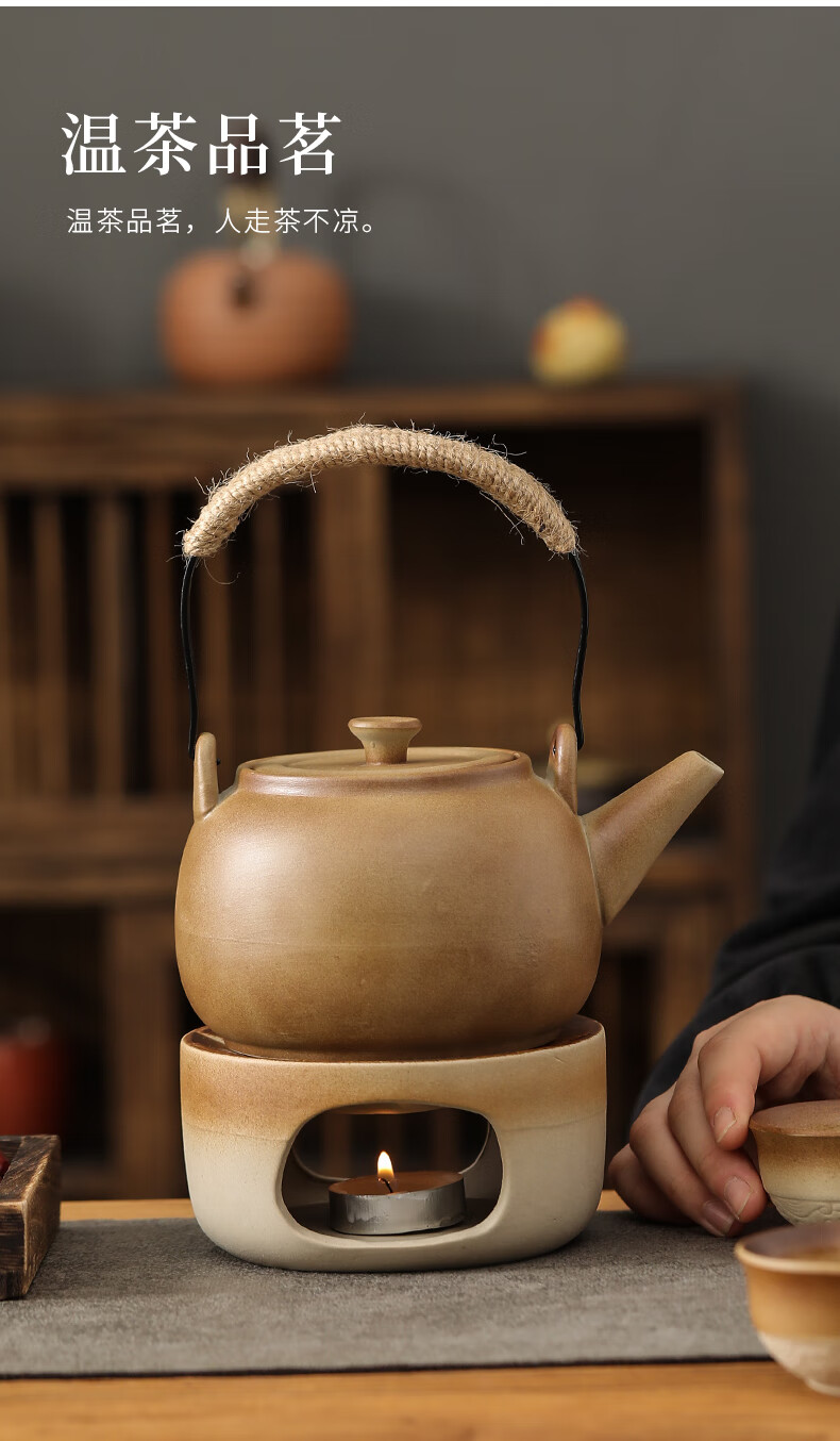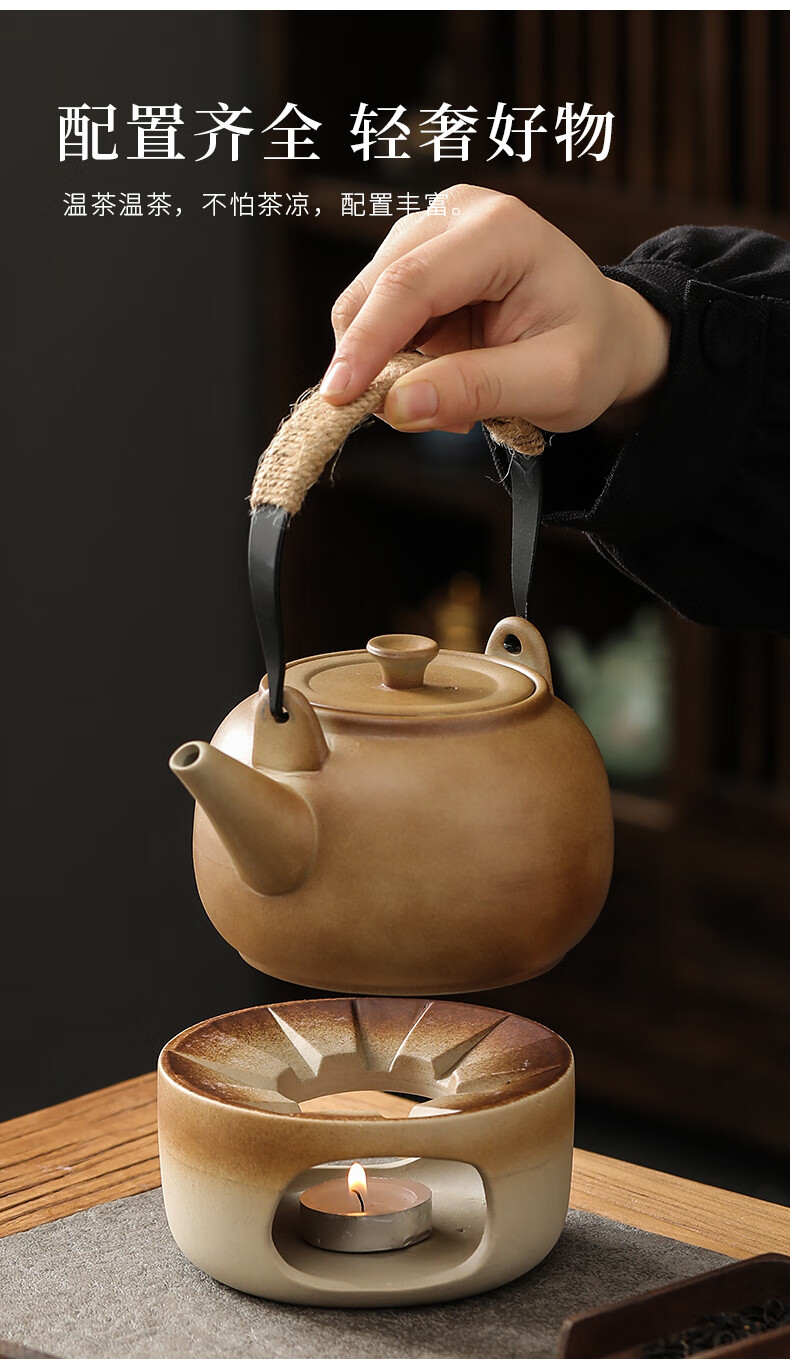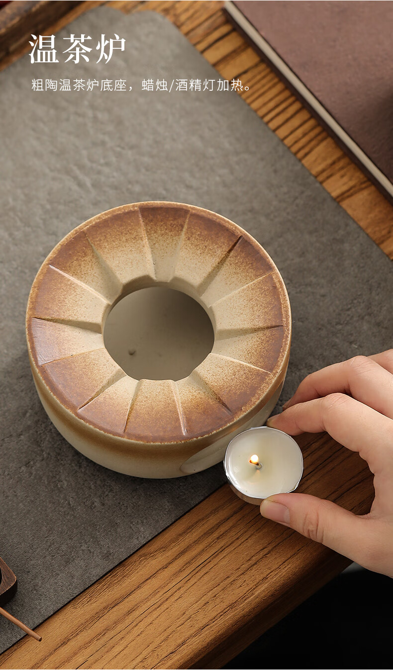 北牧星南瓜提梁壶粗陶泡茶壶单壶蜡烛温茶炉底座家用围炉煮茶暖茶小火炉 温茶炉全套+反口四杯+南瓜提梁壶