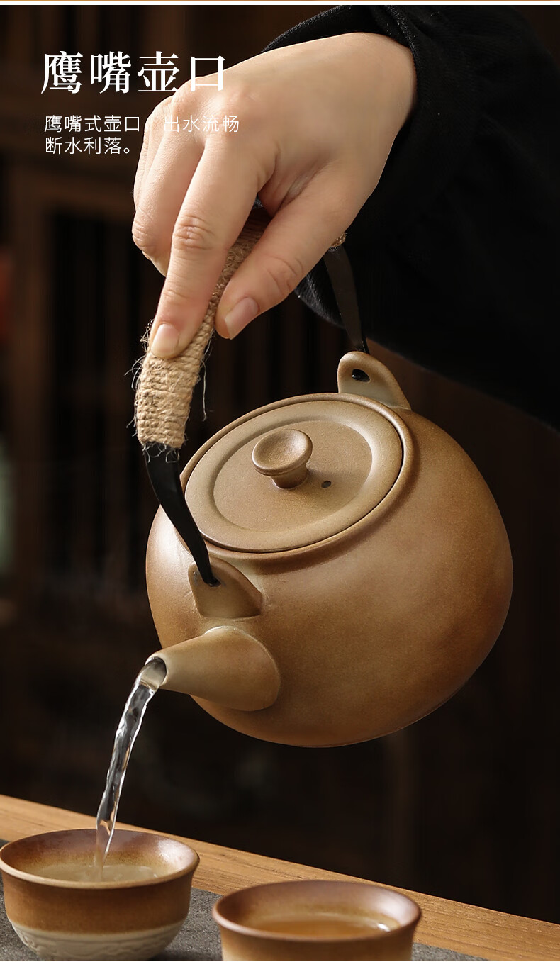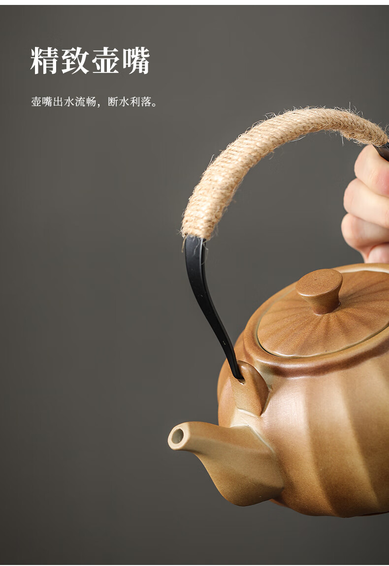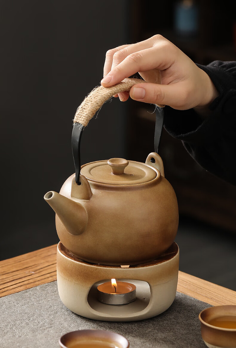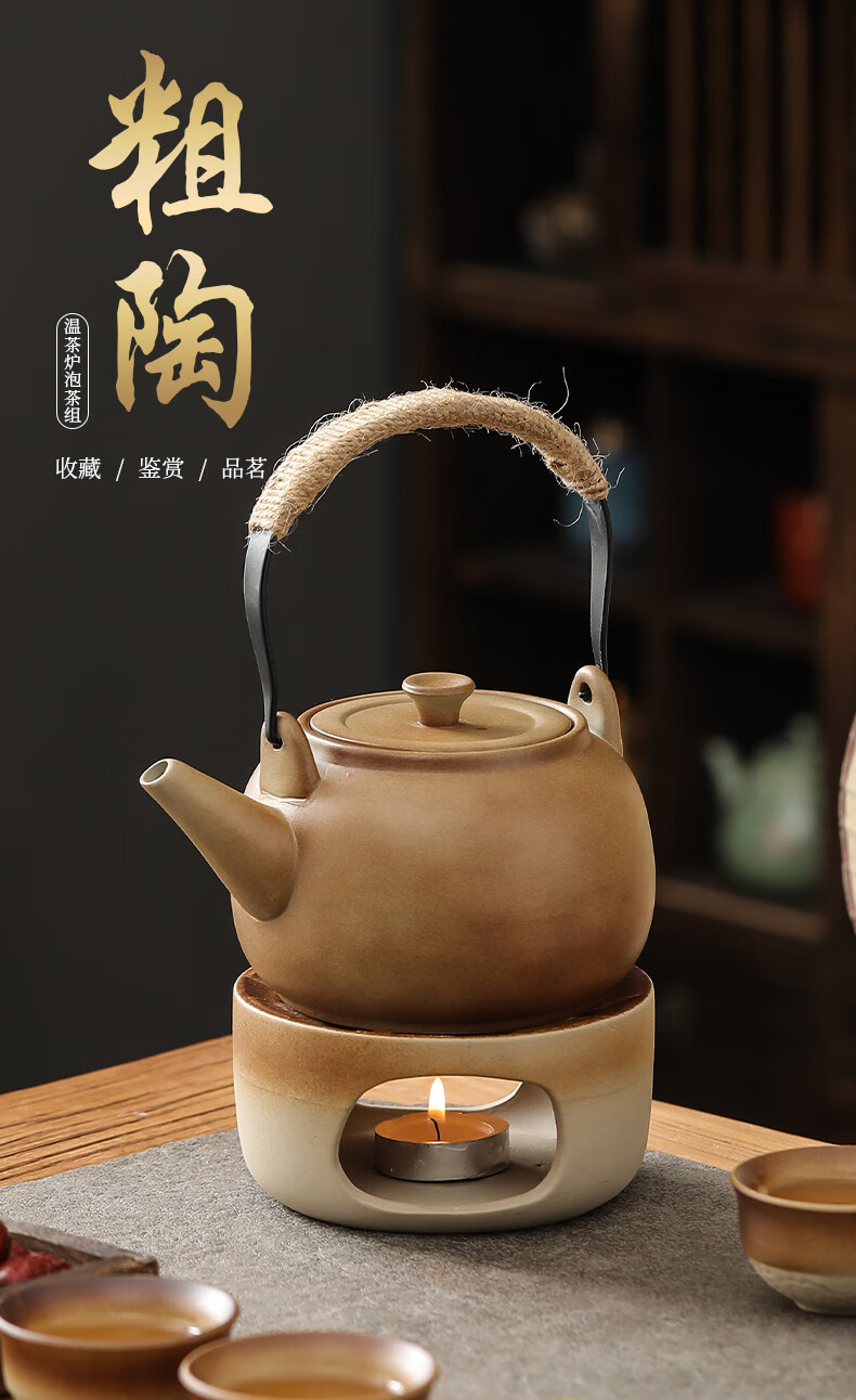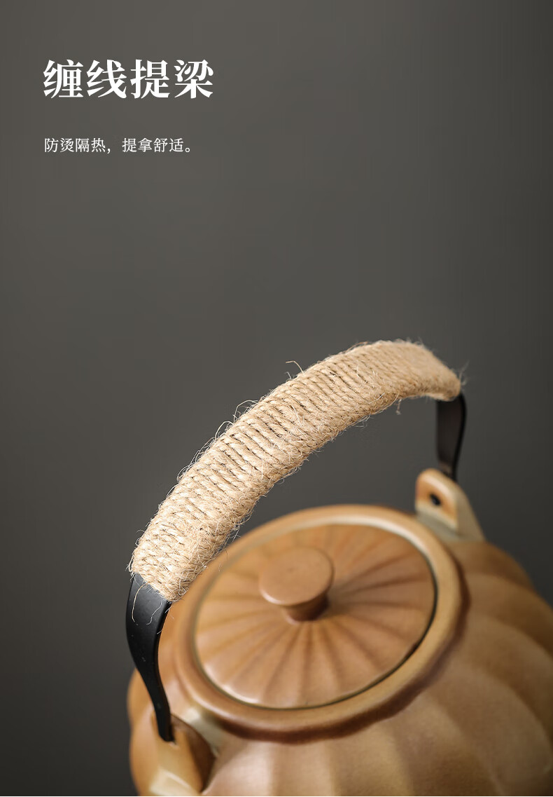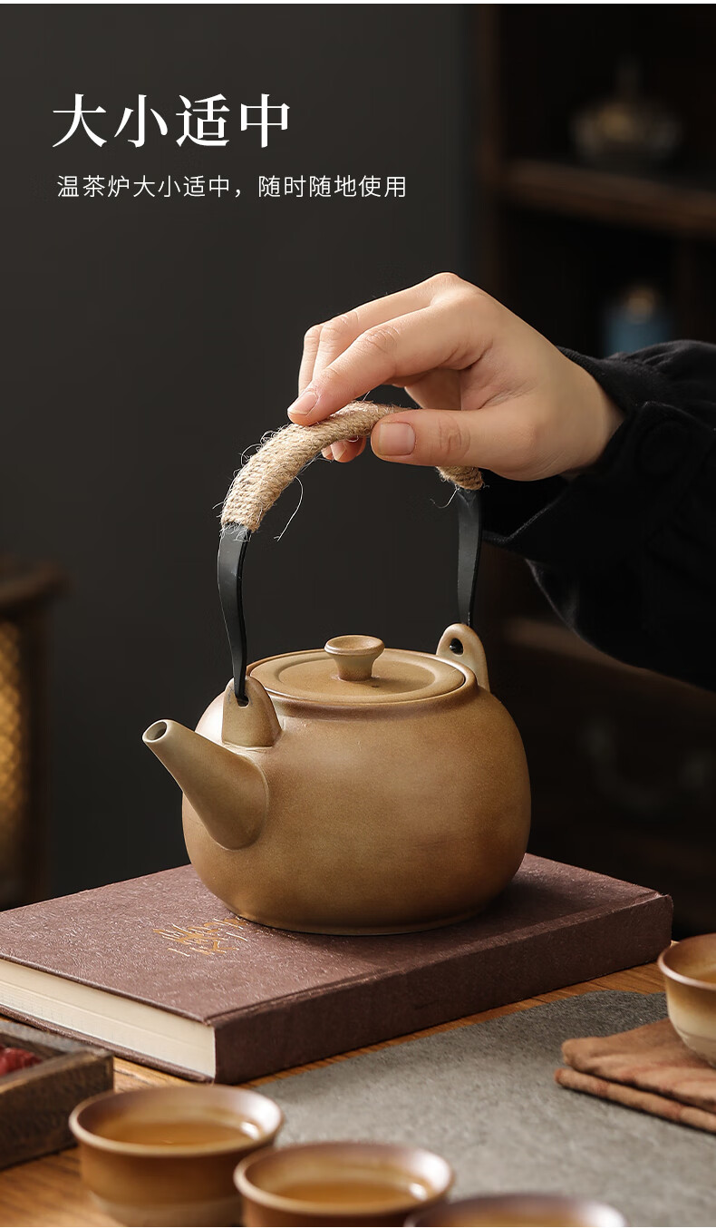 北牧星南瓜提梁壶粗陶泡茶壶单壶蜡烛温茶炉底座家用围炉煮茶暖茶小火炉 温茶炉全套+反口四杯+南瓜提梁壶