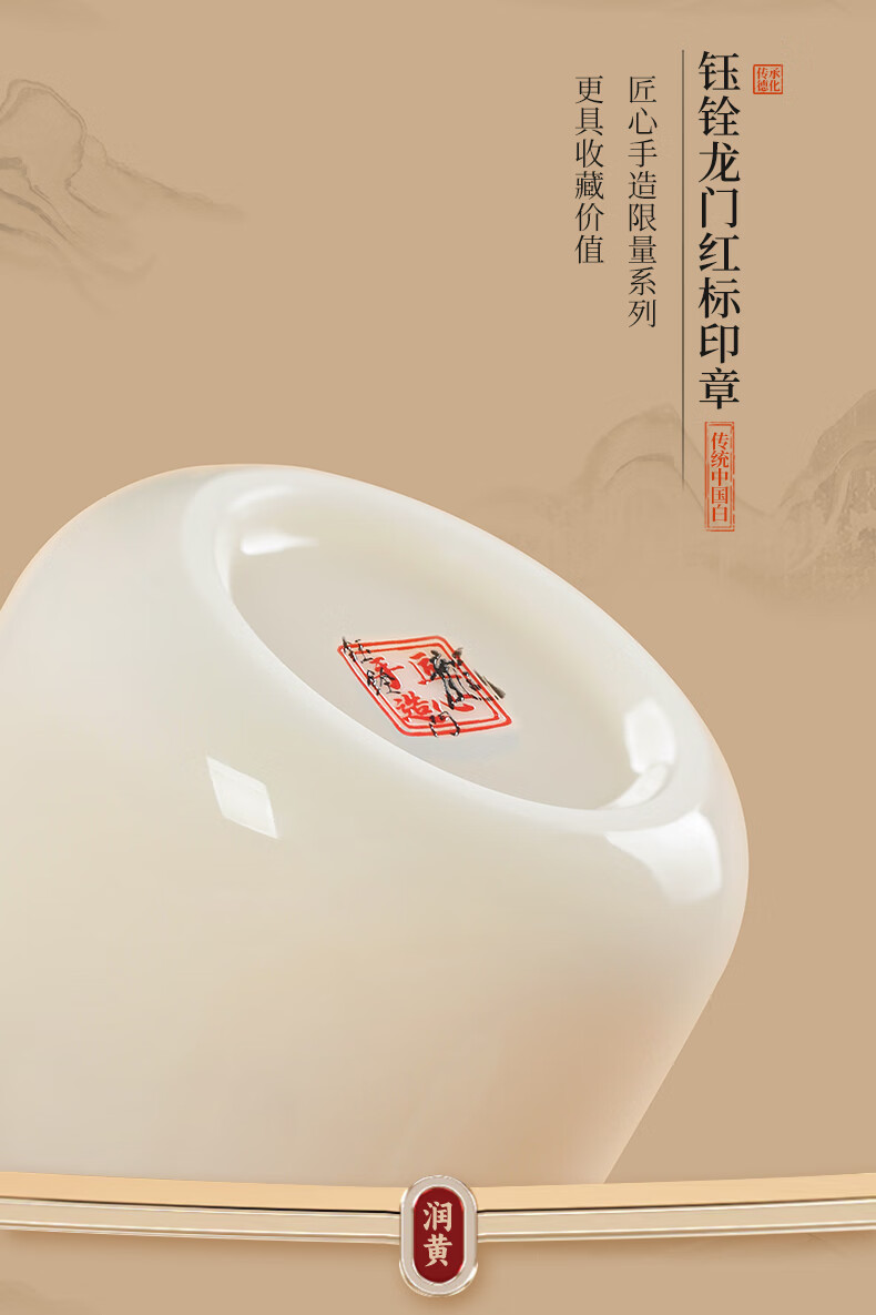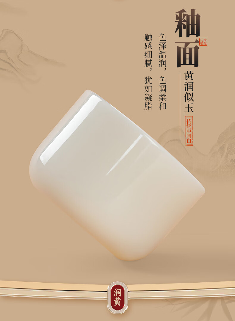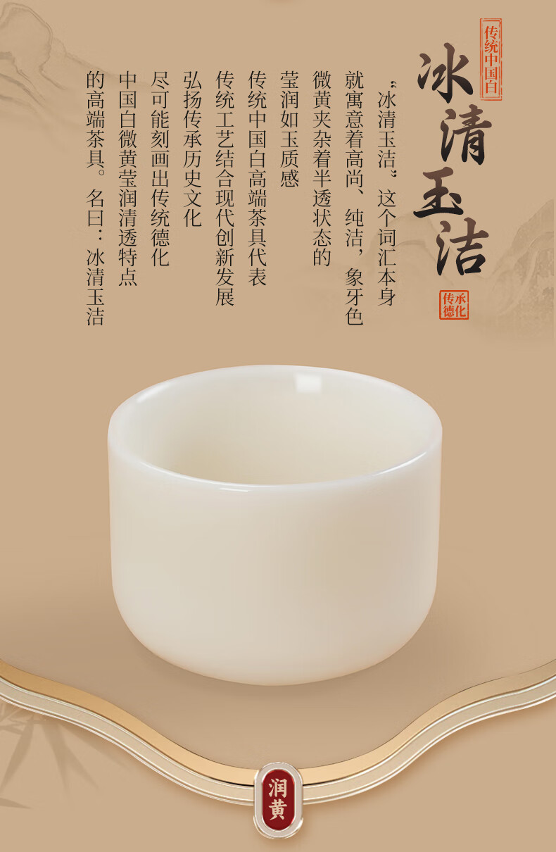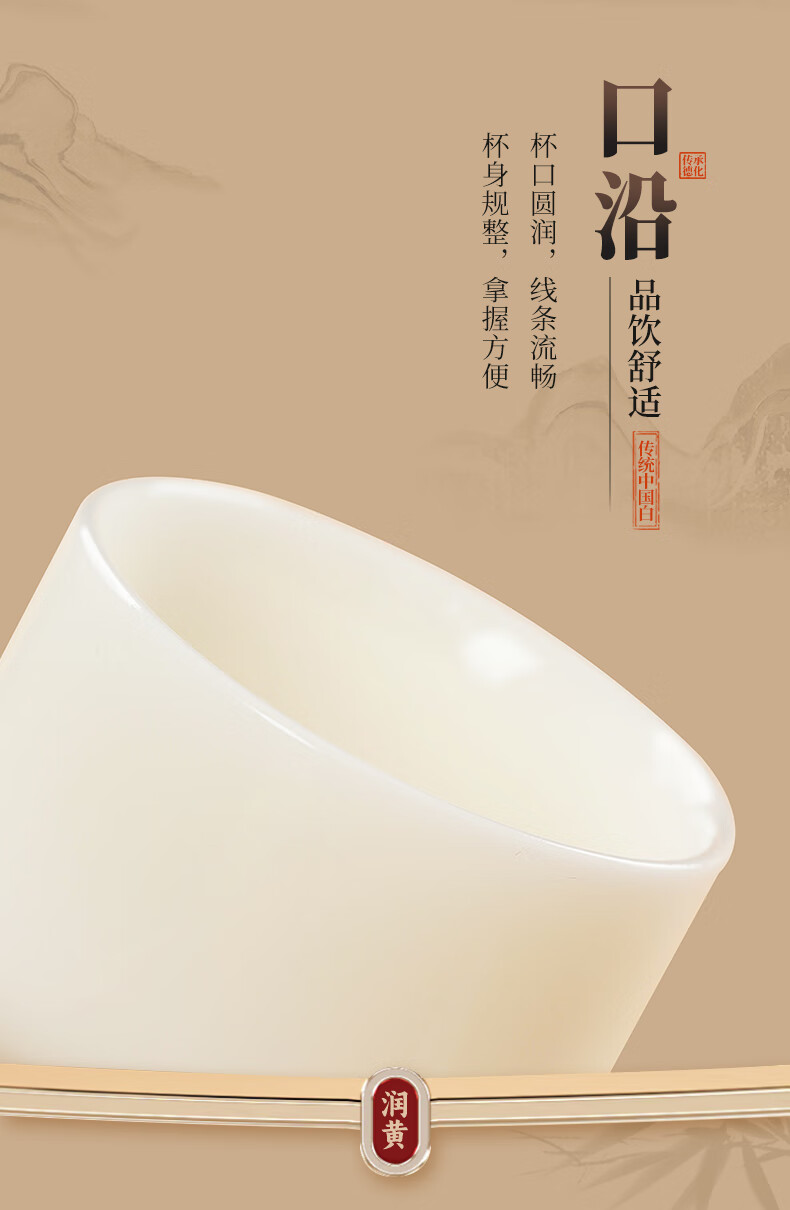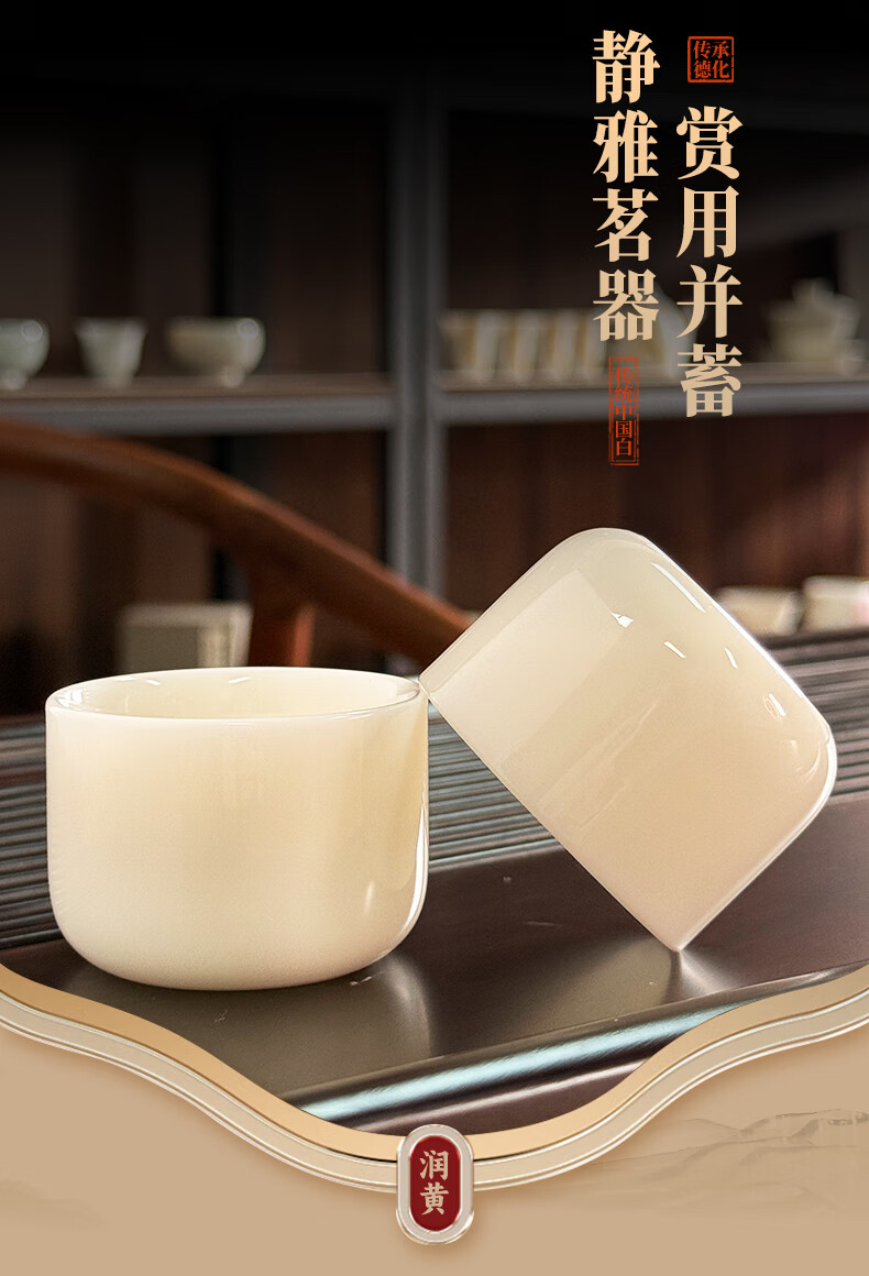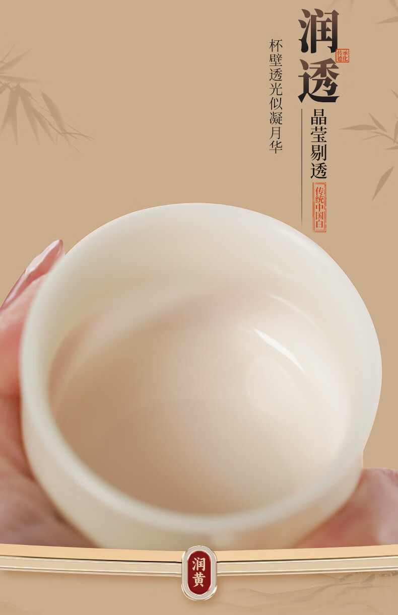 钰铨龙门 冰清玉洁清润杯 德化传统中国白高端陶瓷纯手工客人杯喝茶品茗杯 冰清玉洁清润杯-单杯