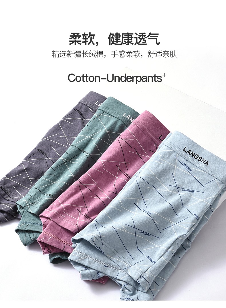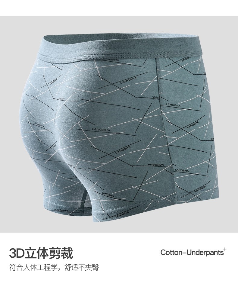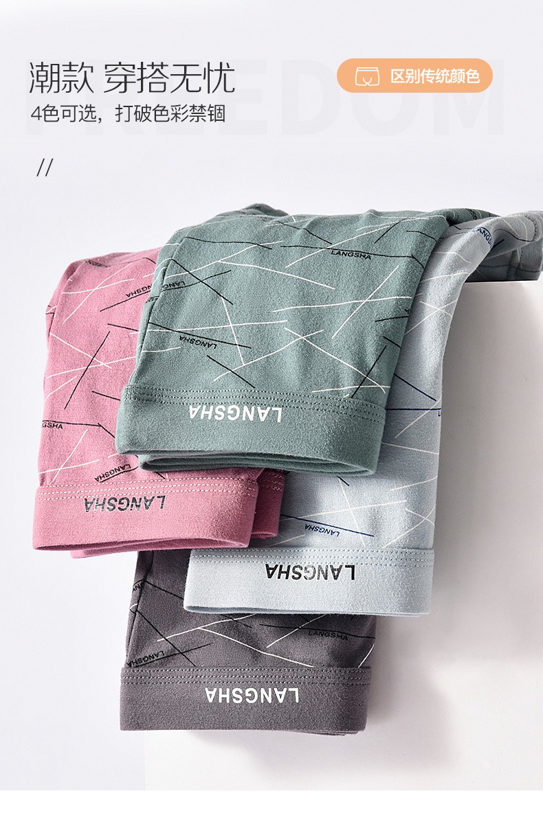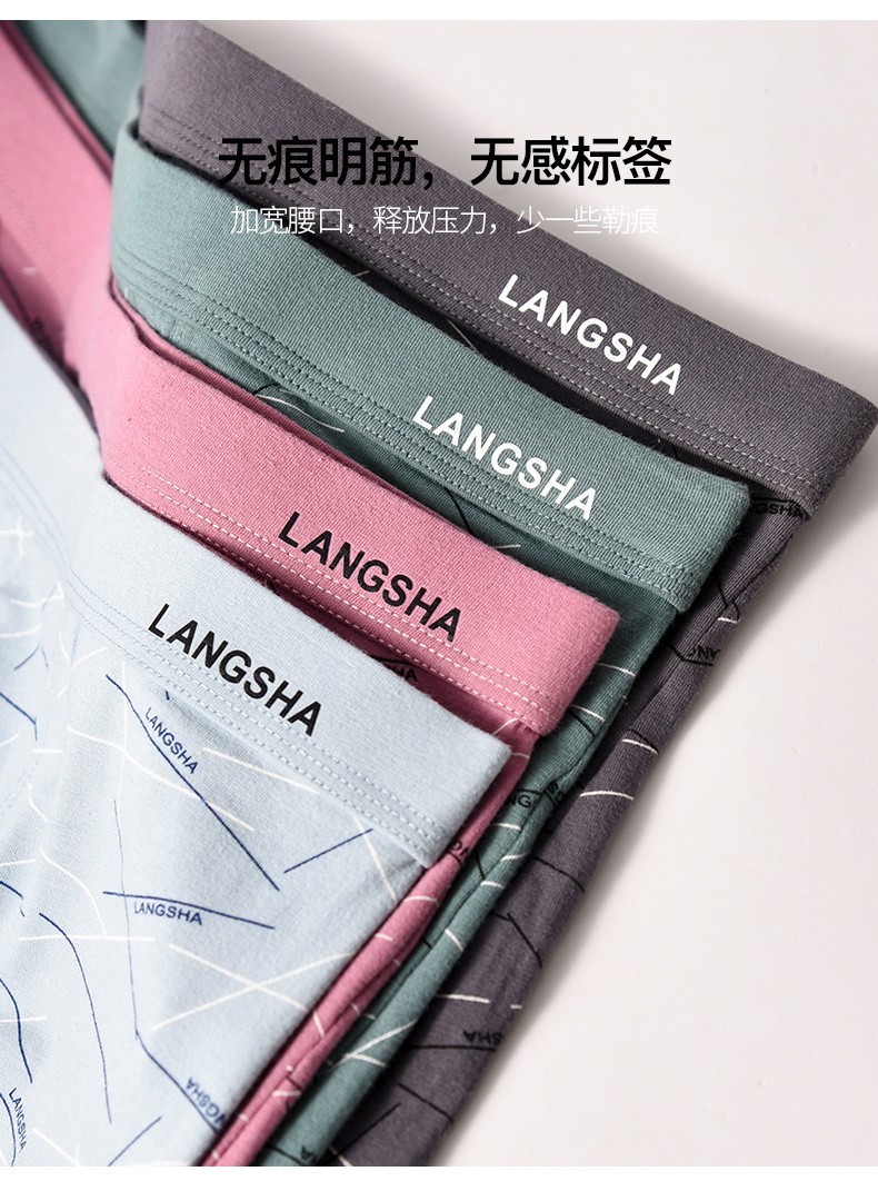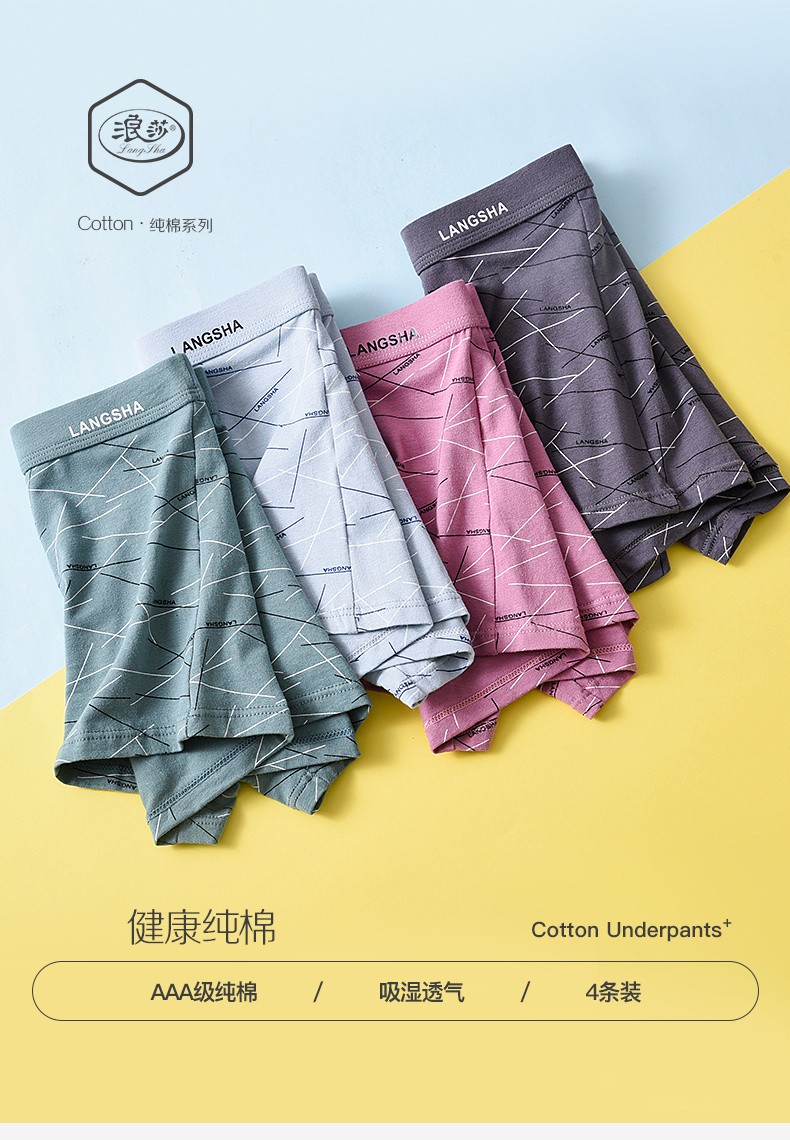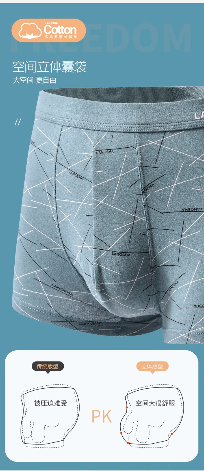 浪莎男士内裤男纯棉平角裤全棉四角裤春秋款透气男式潮平脚短裤衩 潮流印花款 L /170尺码偏小建议拍大一码