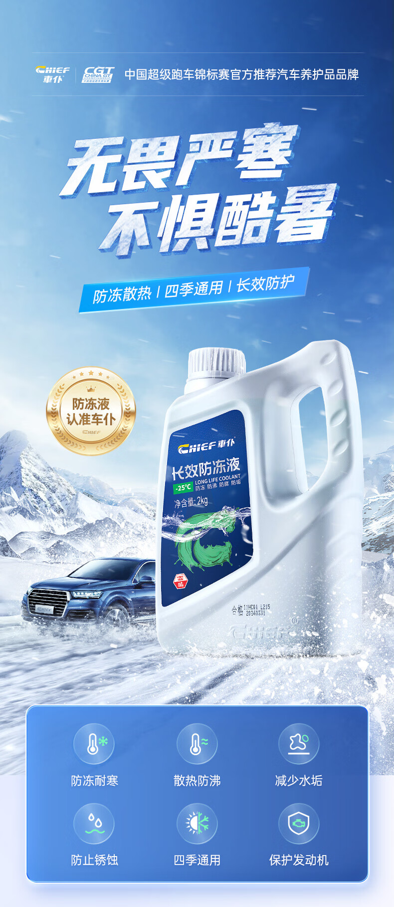 車仆(CHIEF)车仆-25度防冻液水箱宝汽车发动机水箱冷却液汽车用品四季通用 2kg 0°C 红色 水箱宝