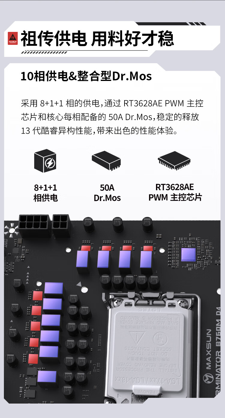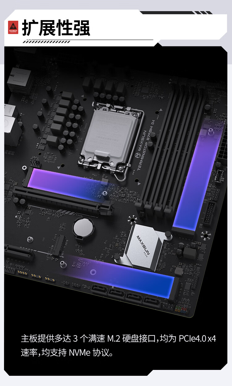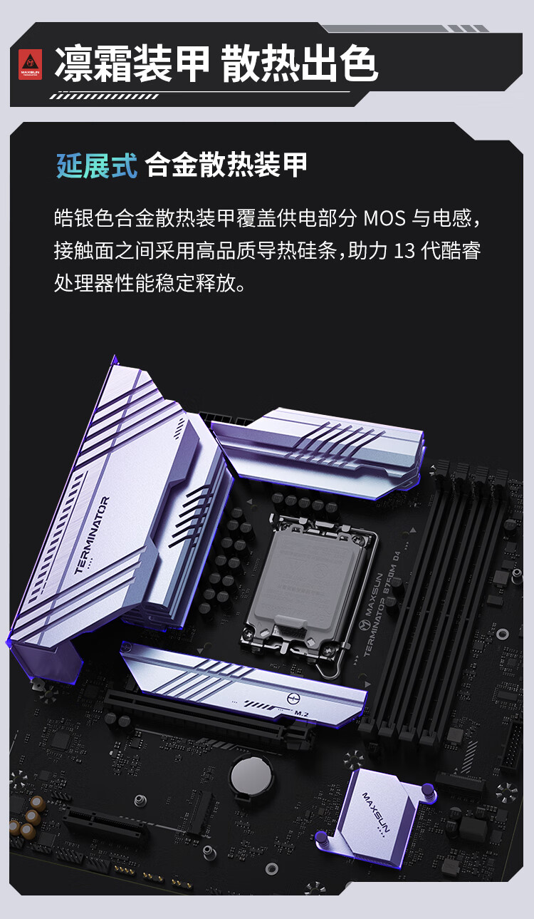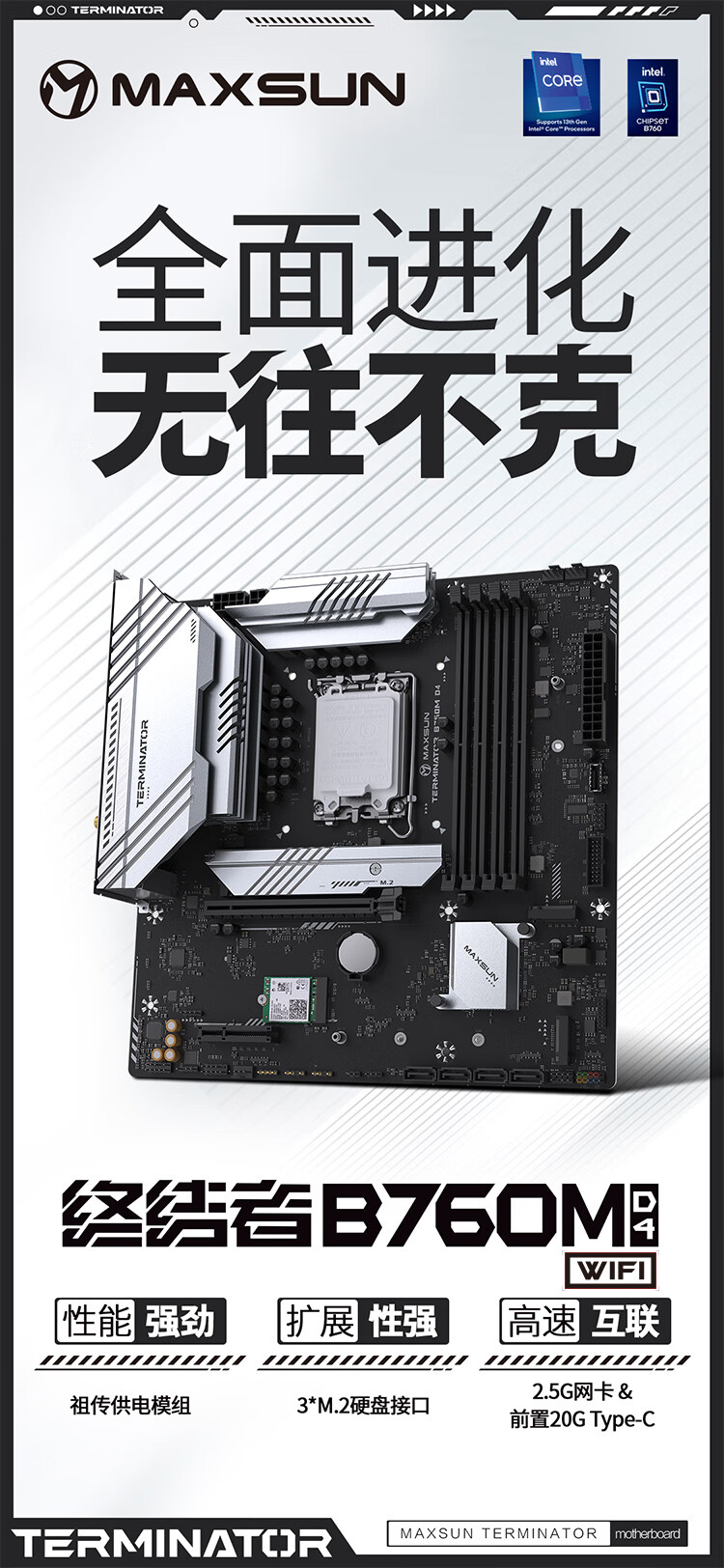 铭瑄(MAXSUN) MS-终结者 B760M D4 WIFI6E升级款主板支持DDR4 12490F/12600KF/14600KF(Intel B760/LGA 1700)