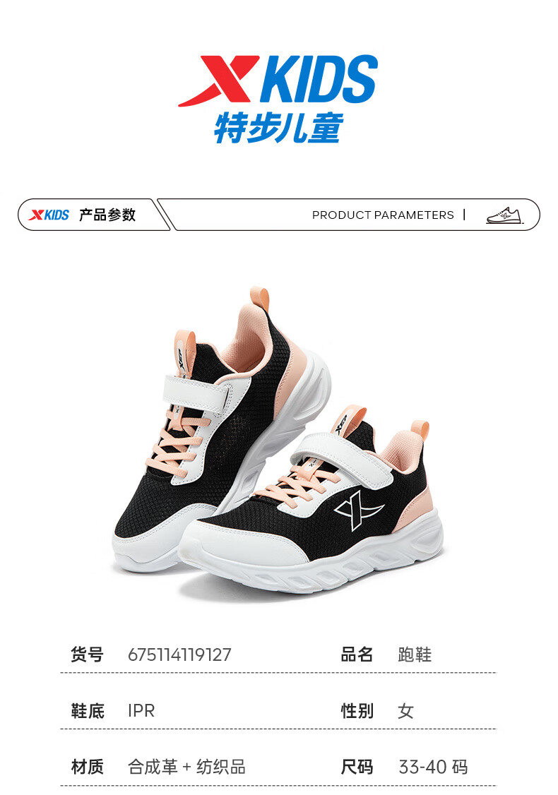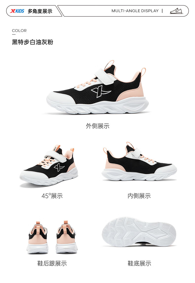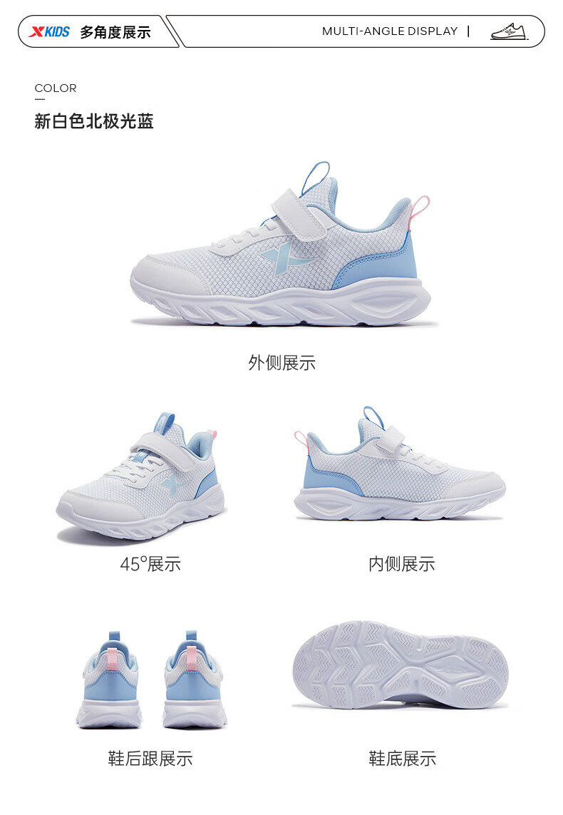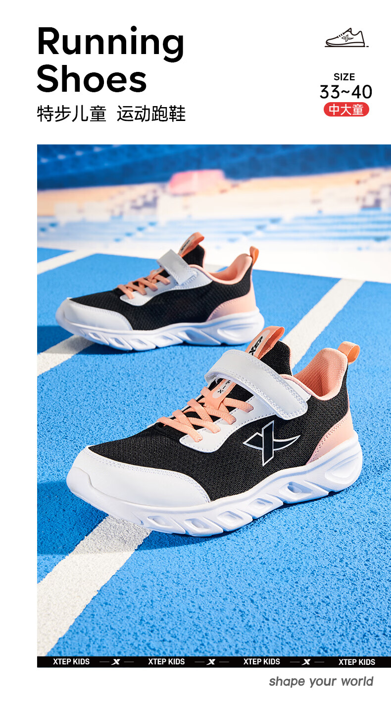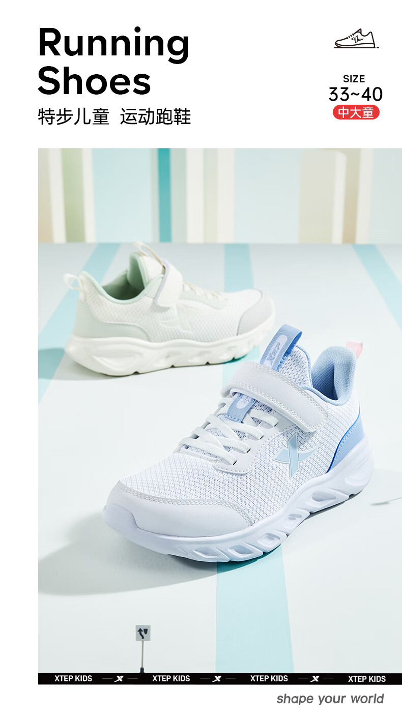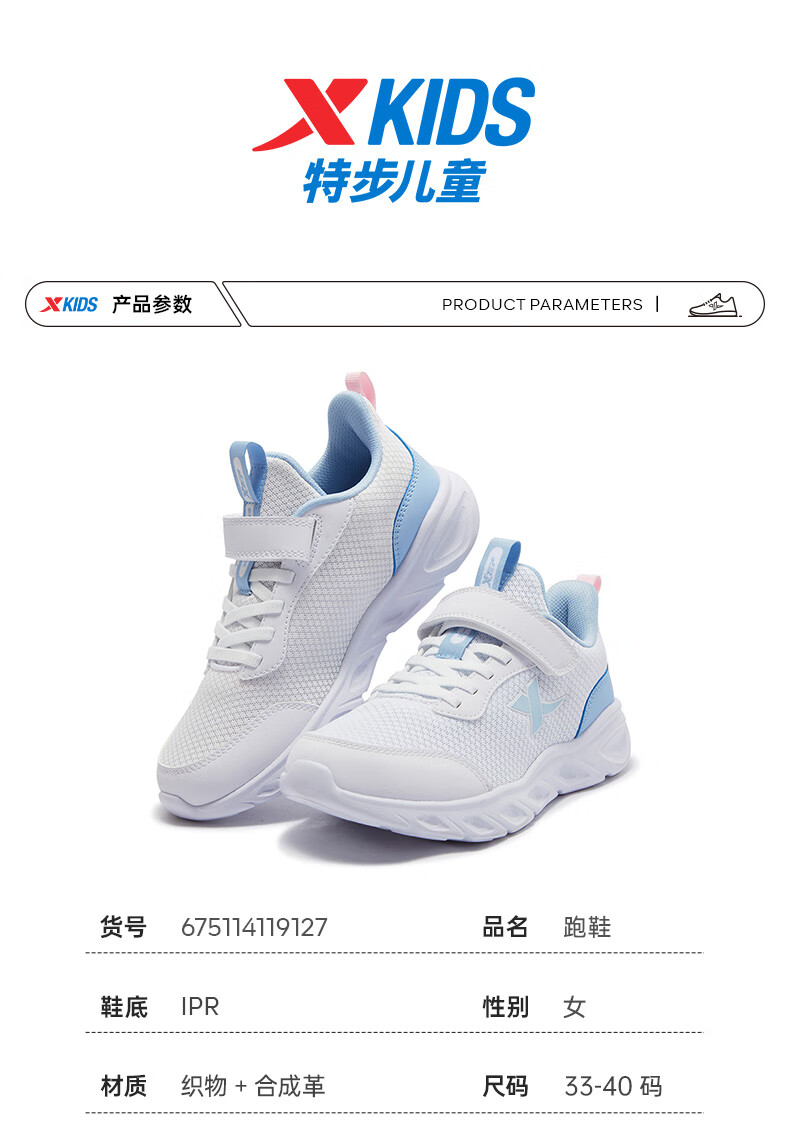 特步(XTEP)儿童童鞋女童网布鞋面基础柔软运动跑鞋 雪青紫 35码