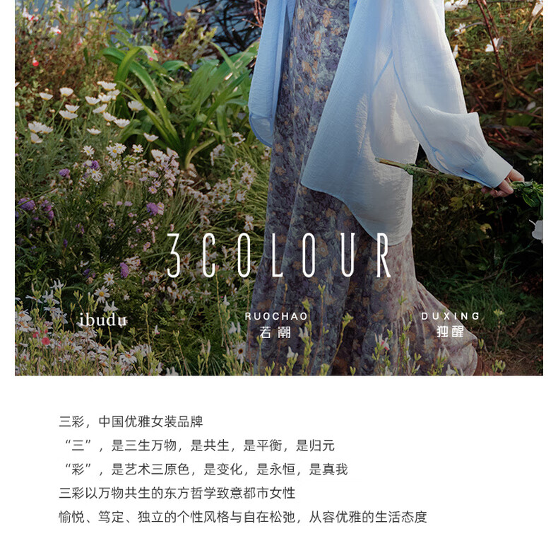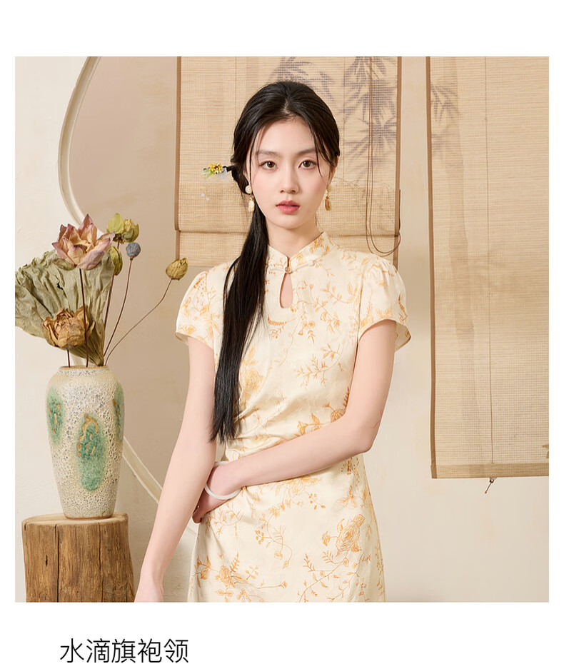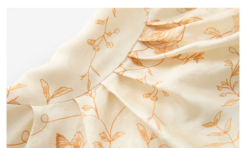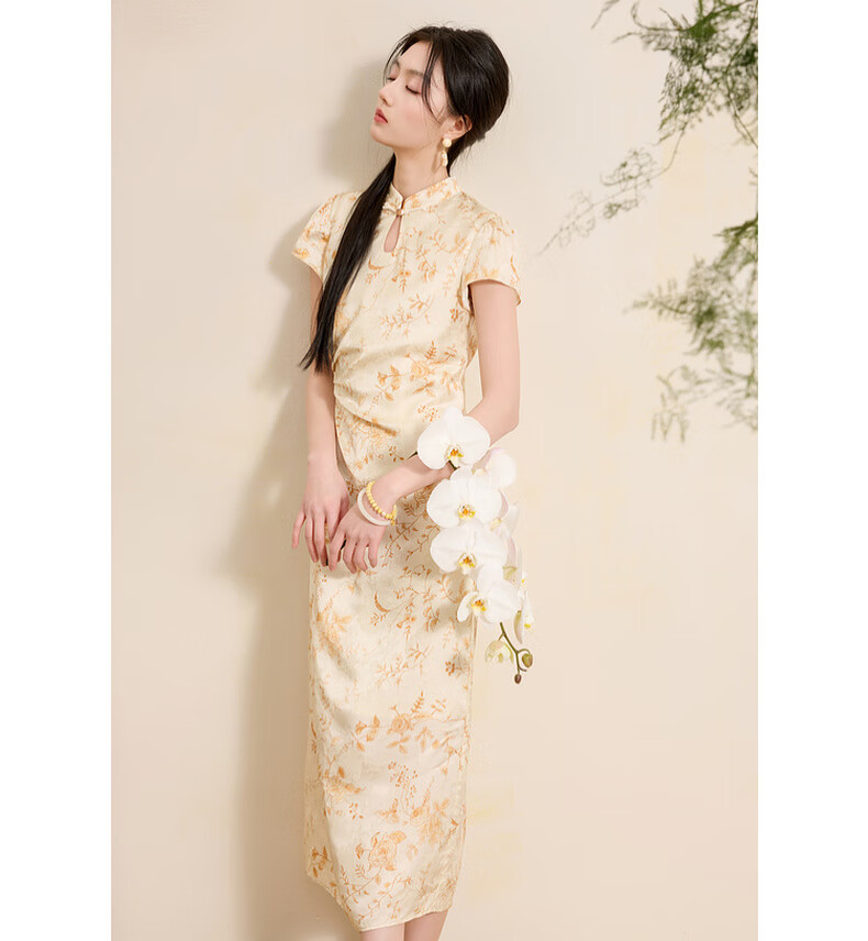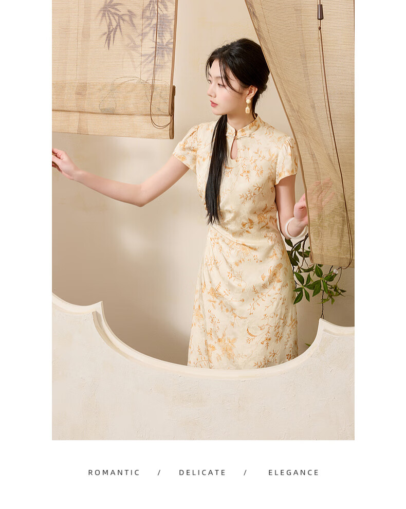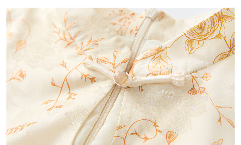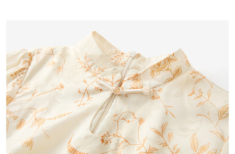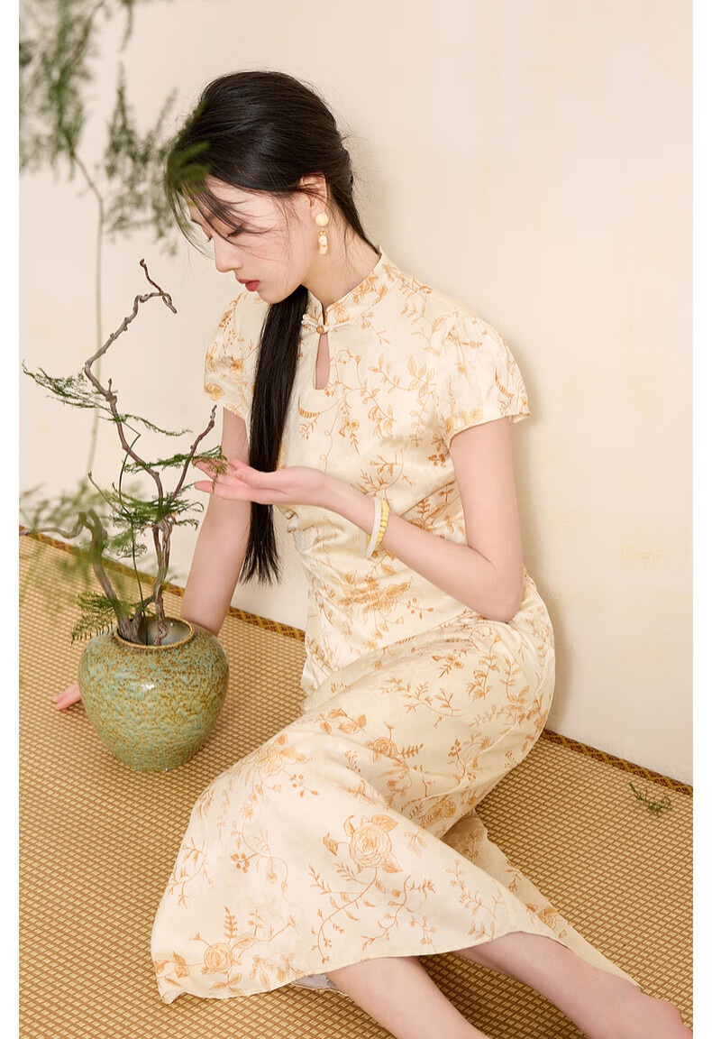 三彩2025春季新款桑蚕丝连衣裙提花旗袍领收腰A字裙长裙M