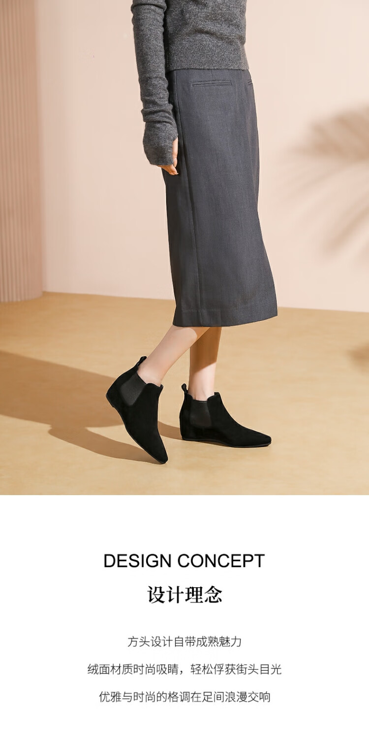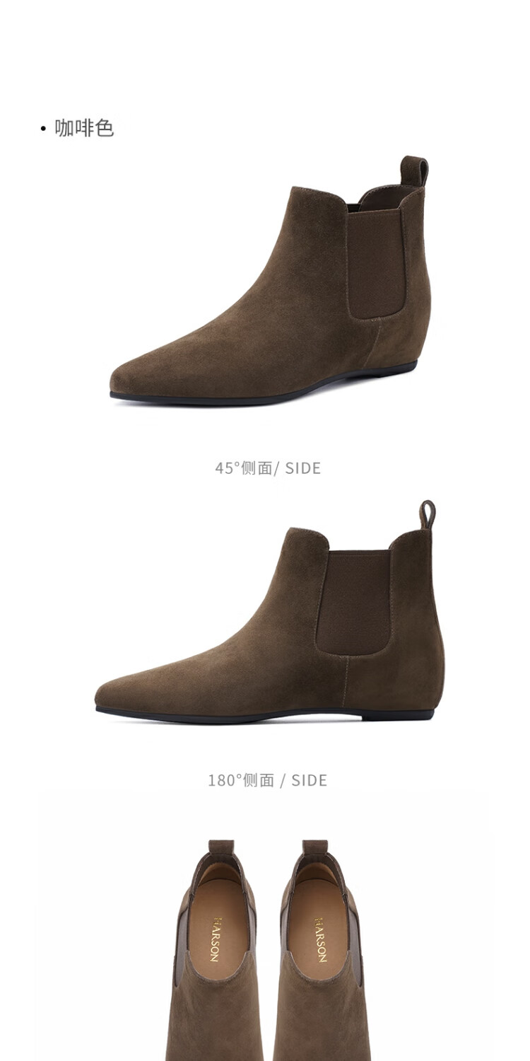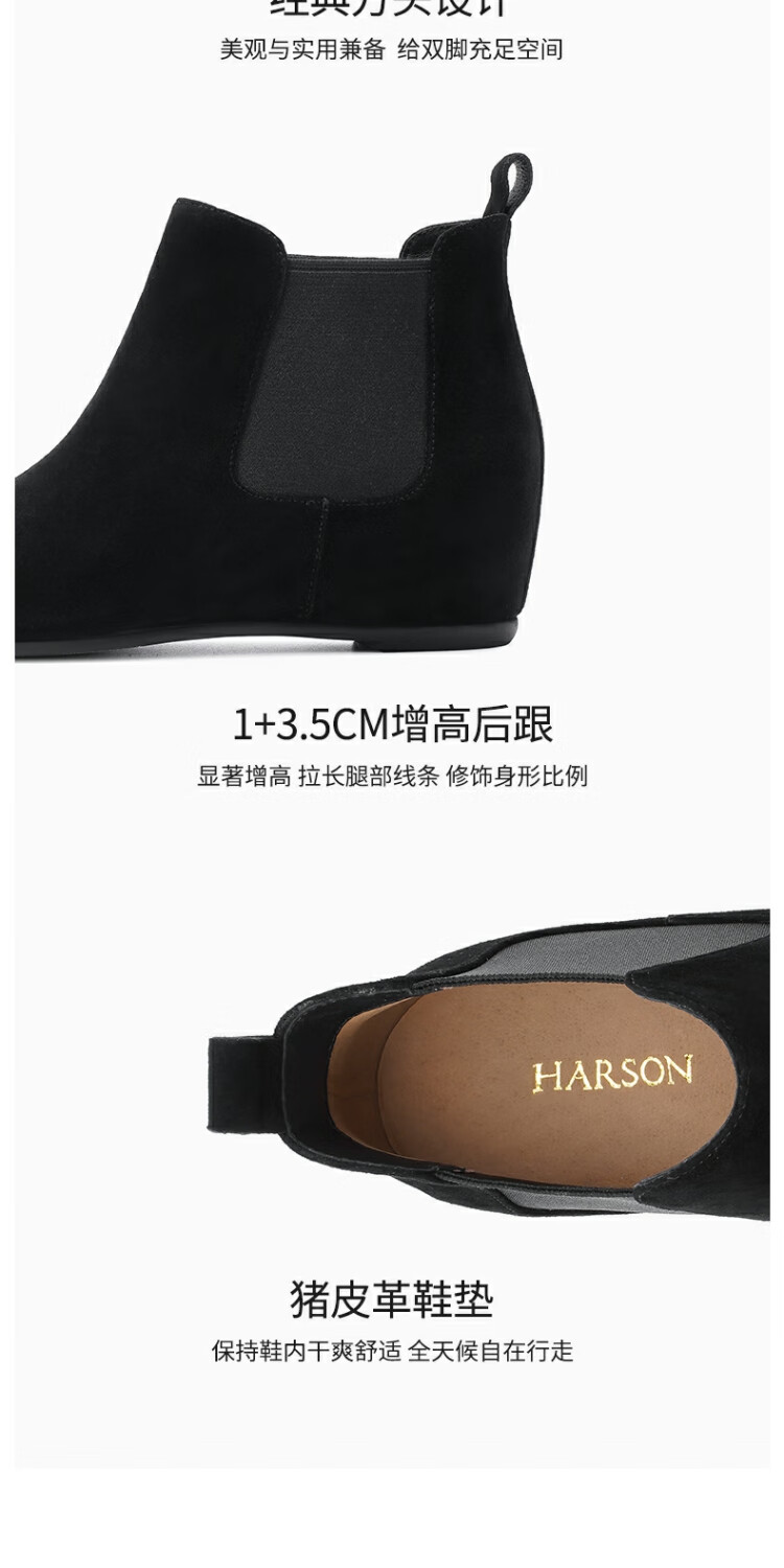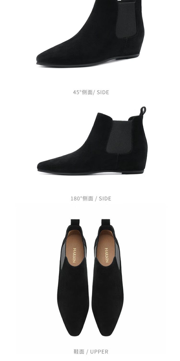 哈森(Harson)【全能系列】25冬新款绒面弹力瘦瘦靴尖头气质时装靴HA257102 黑色 羊反绒面革/织物 34