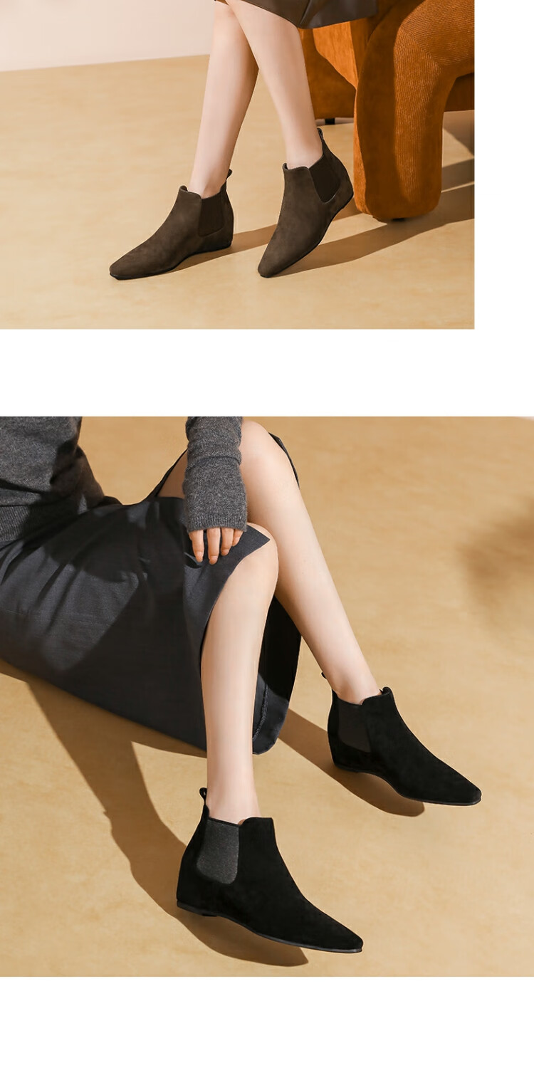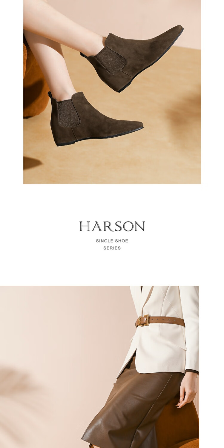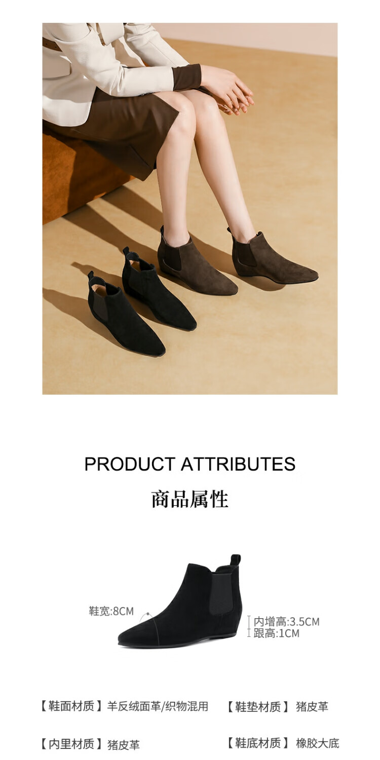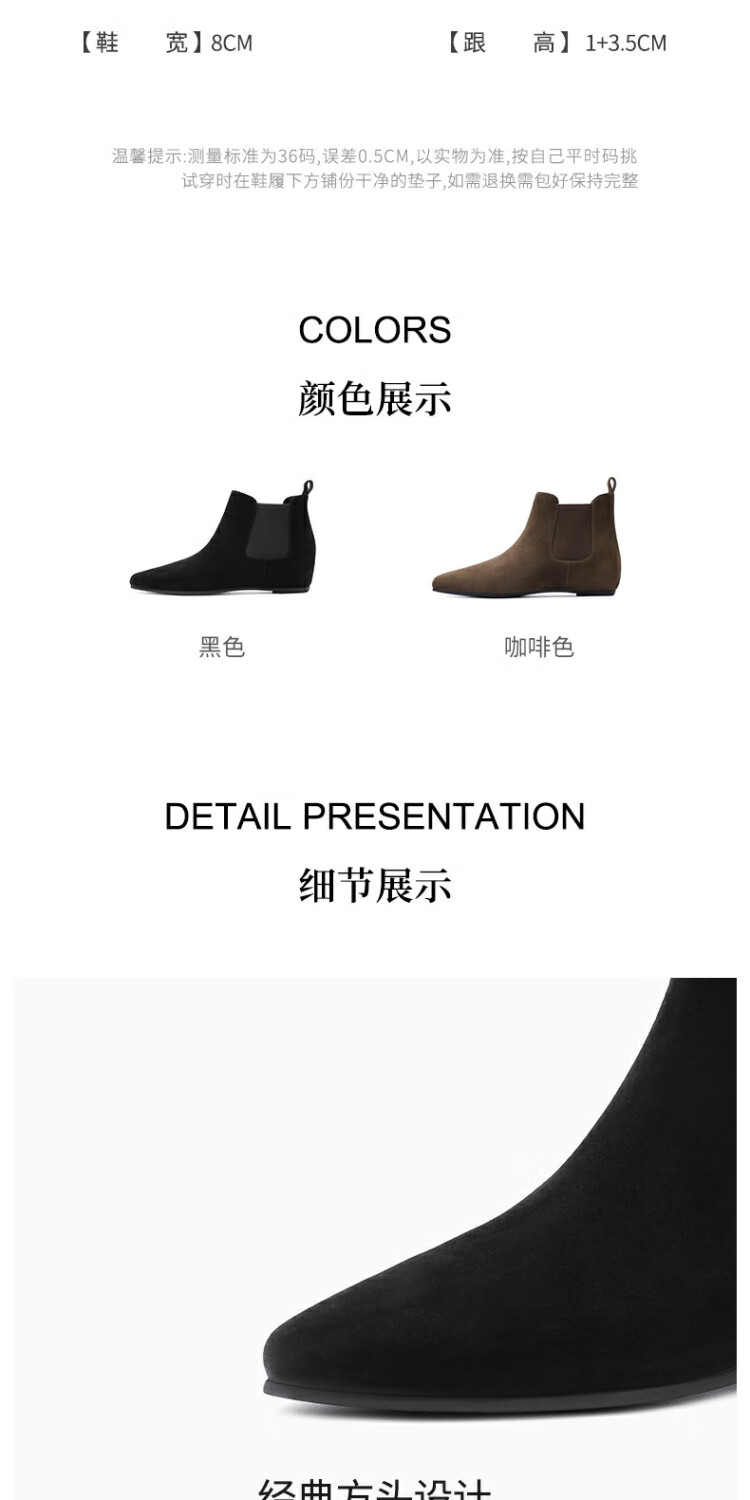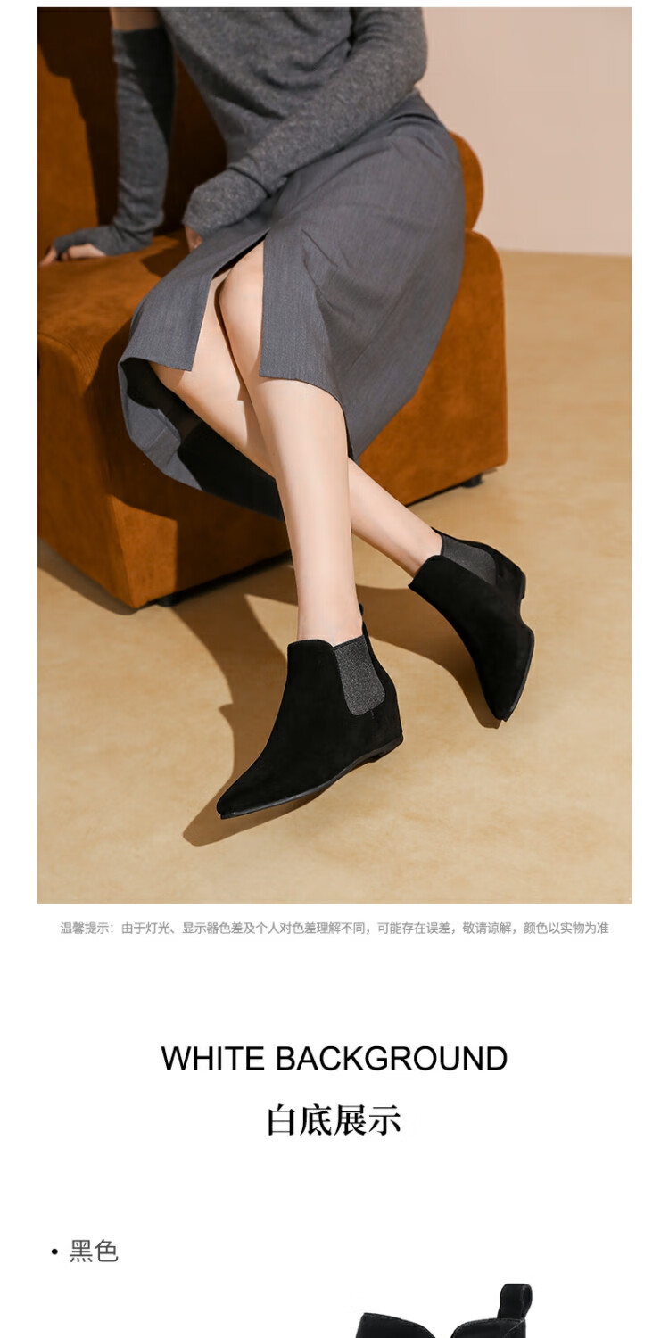 哈森(Harson)【全能系列】25冬新款绒面弹力瘦瘦靴尖头气质时装靴HA257102 黑色 羊反绒面革/织物 34