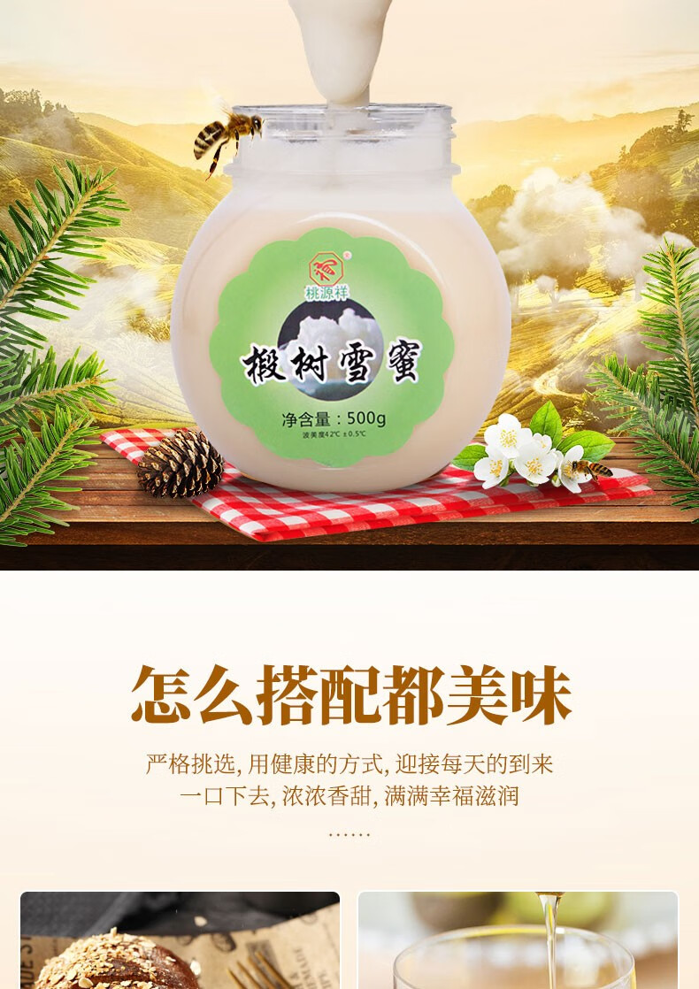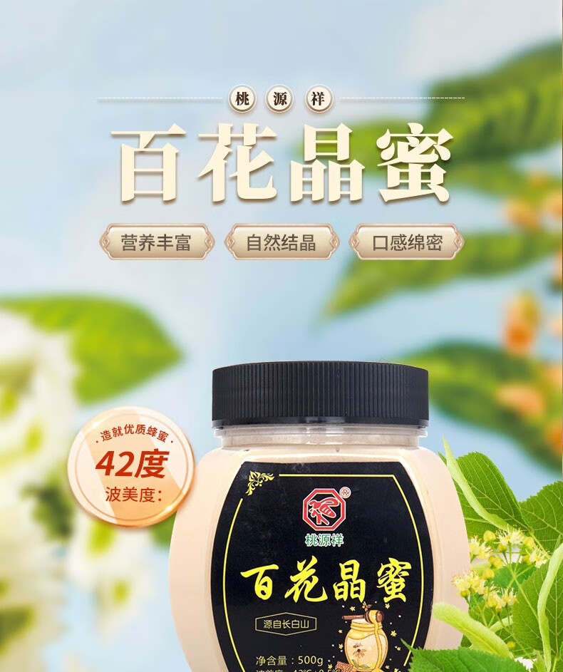 桃源祥蜂蜜长白山椴树雪蜜天然成熟蜂蜜百花蜜冲调饮品速食蜂蜜礼盒送礼 百花晶蜜+椴树雪蜜 共2瓶