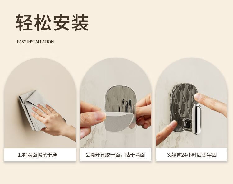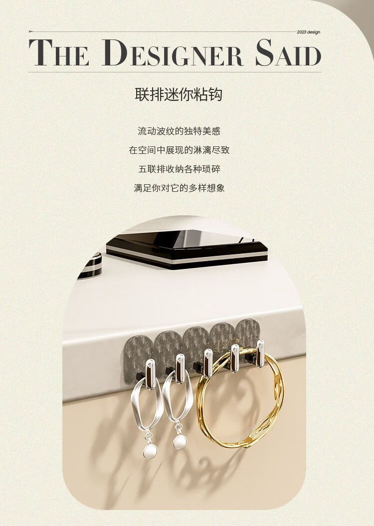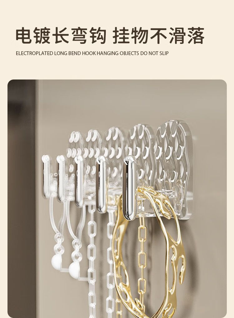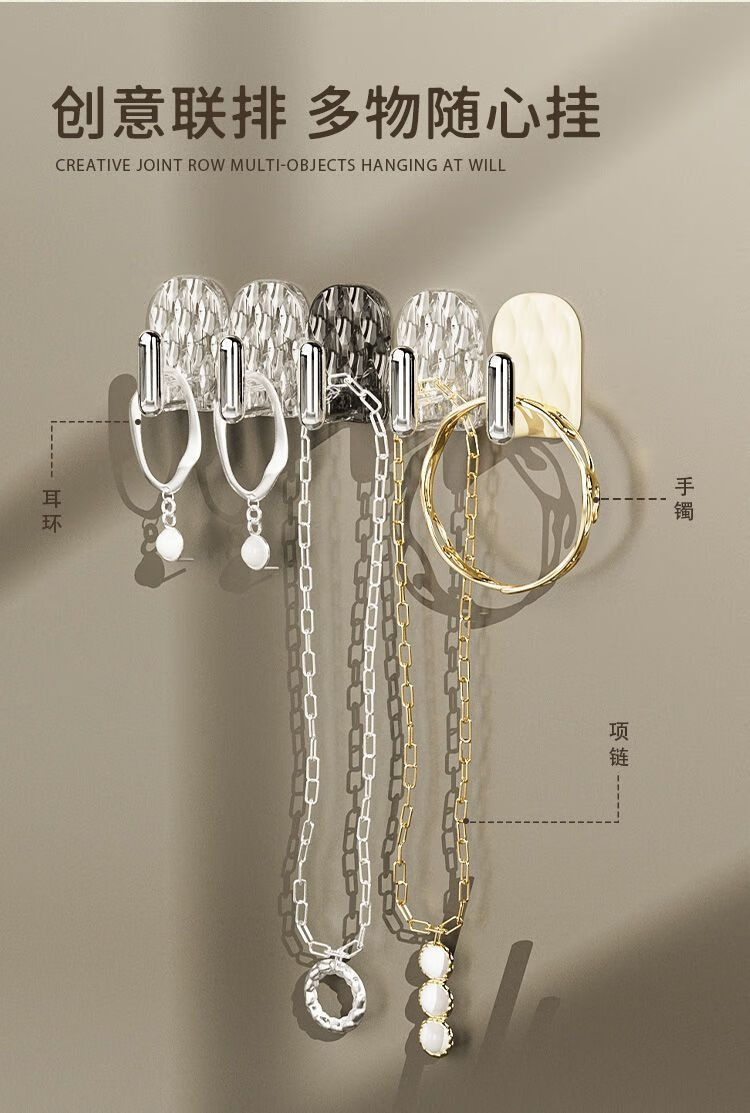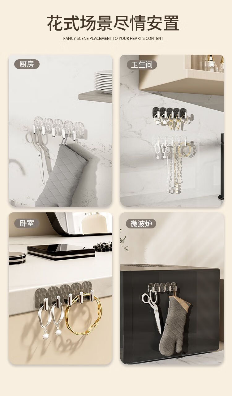 优品卫迷你无痕连排挂多功能粘胶卫生间镜柜门后首饰粘贴壁挂小钩免打孔 连排强承重 透明银二排共十钩
