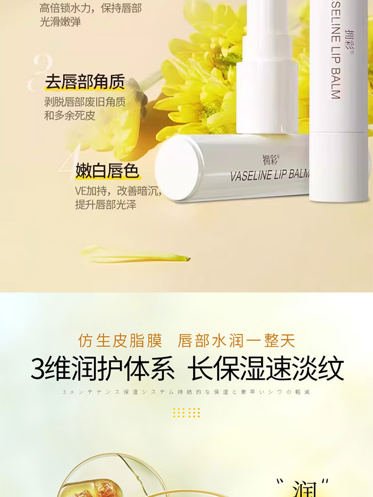 拥彩凡士林修护润唇膏2支6g 四季防干裂起皮保湿补水唇膜滋润唇纹 保湿润唇膏2支装6g