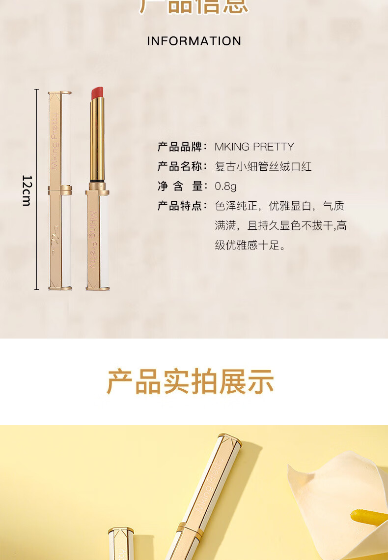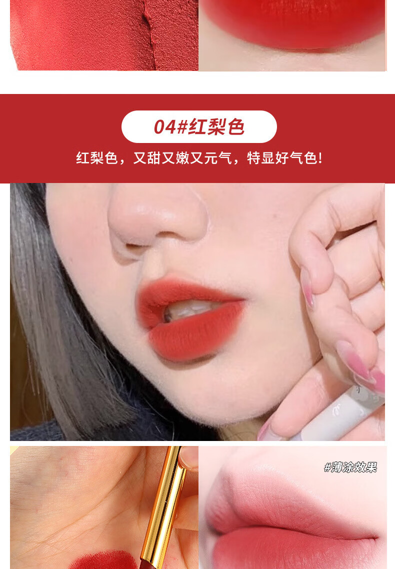 【严选好货】小羊皮口红滋润保湿哑光丝绒唇膏显白细口红 04红梨色